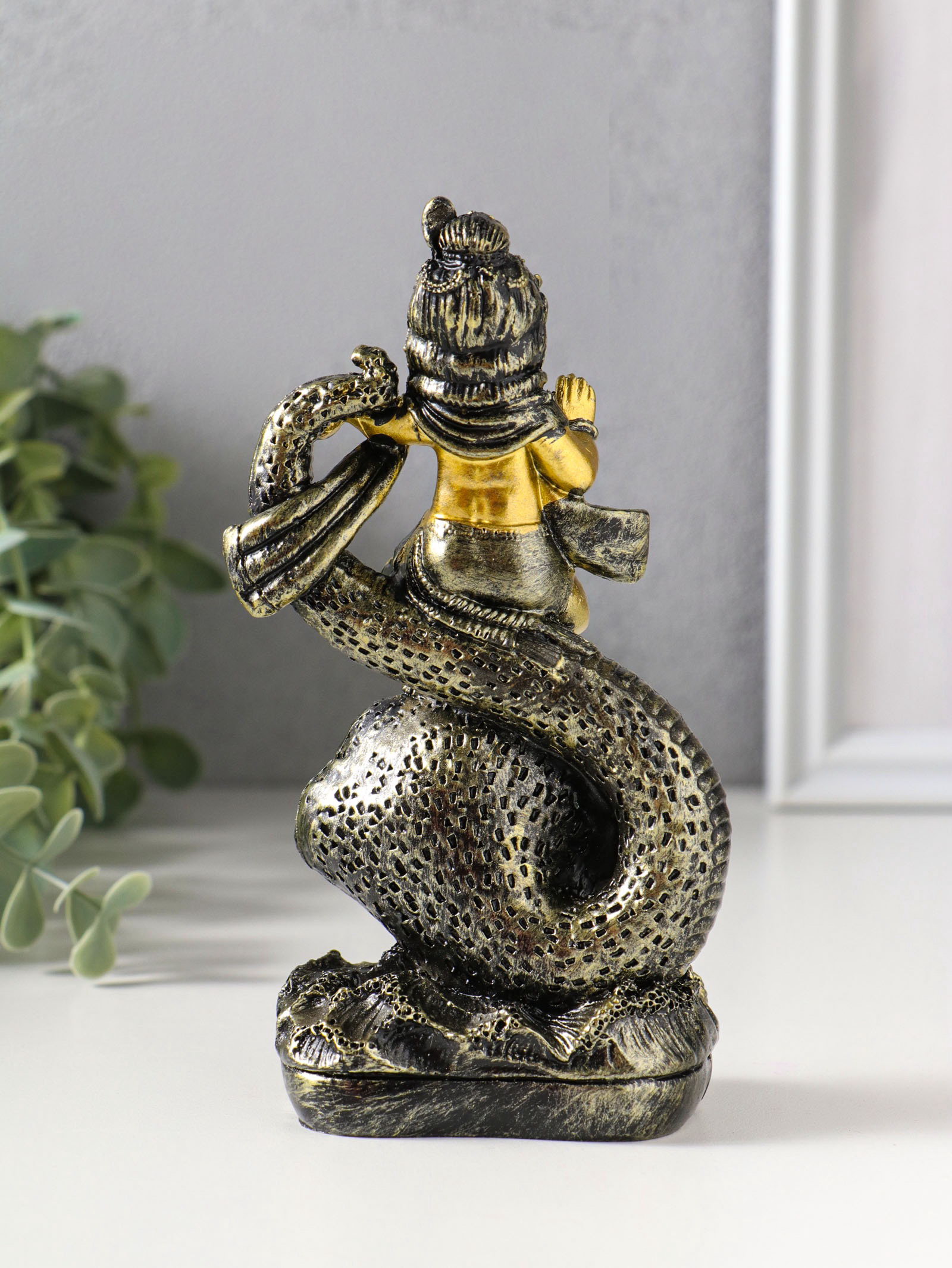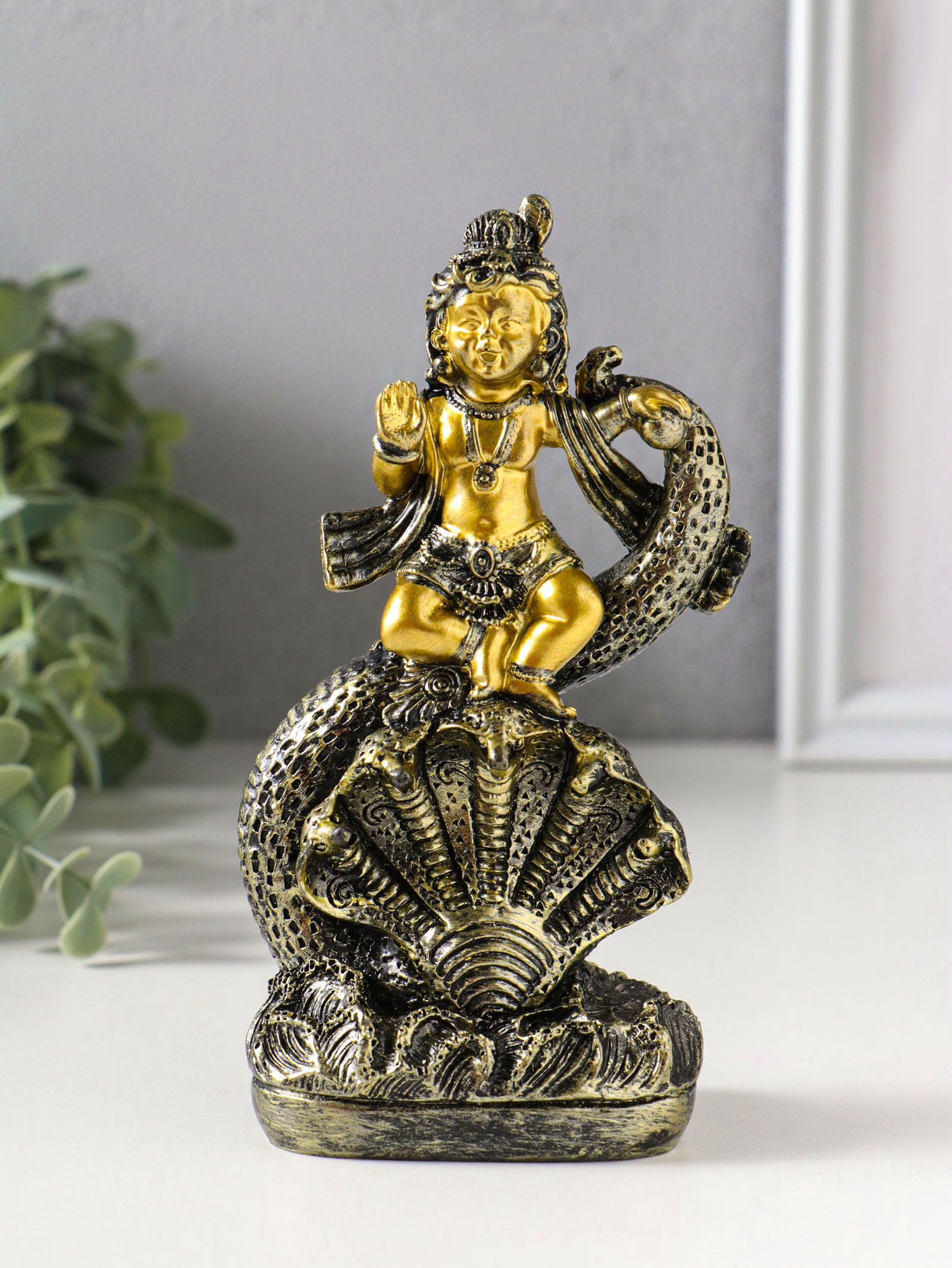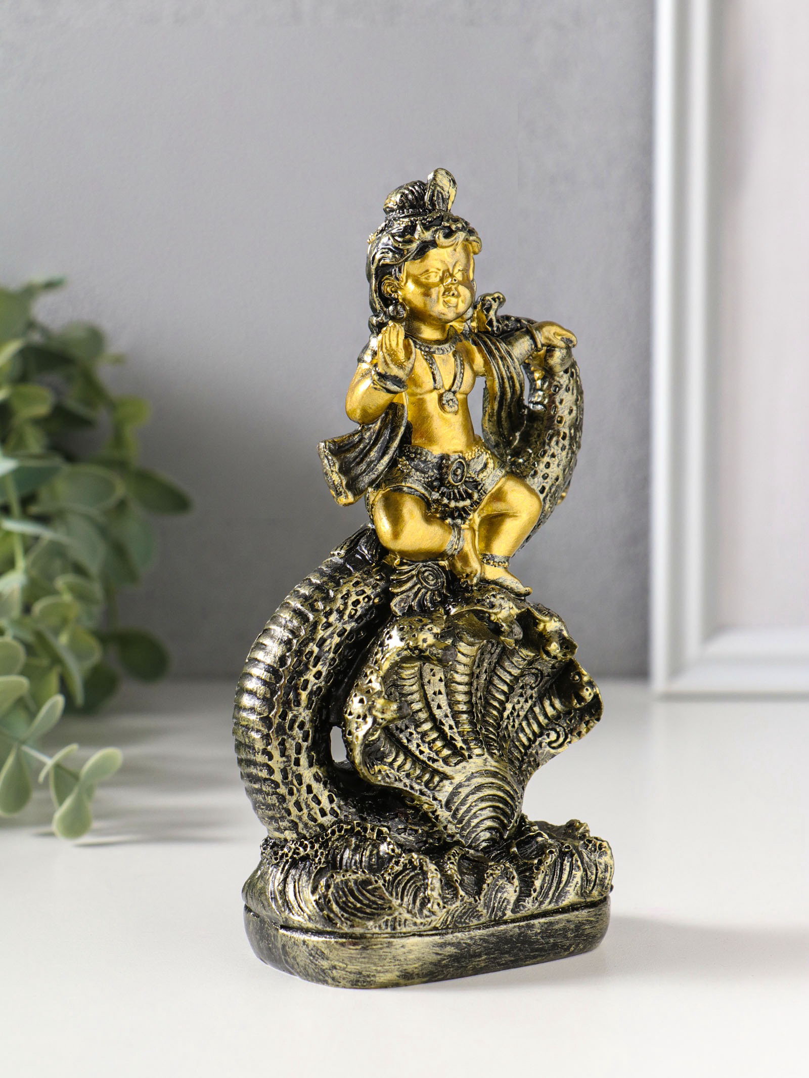 Фигурка полистоун "Богиня Кумари с ракушкой", золотая бронза, 4.7x8.2x15.5 см, 8.2x4.7x15.5 см., Китай