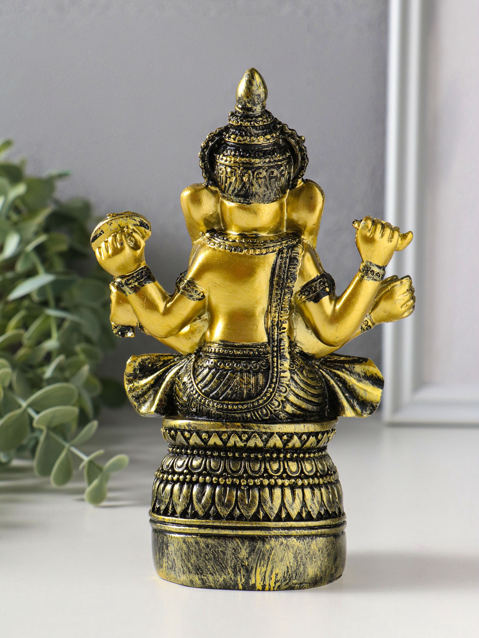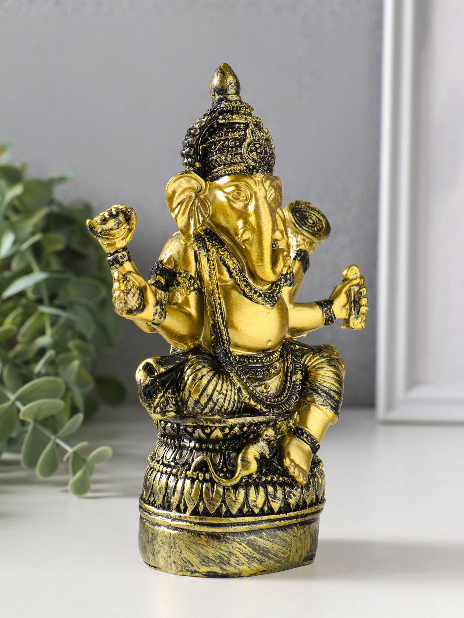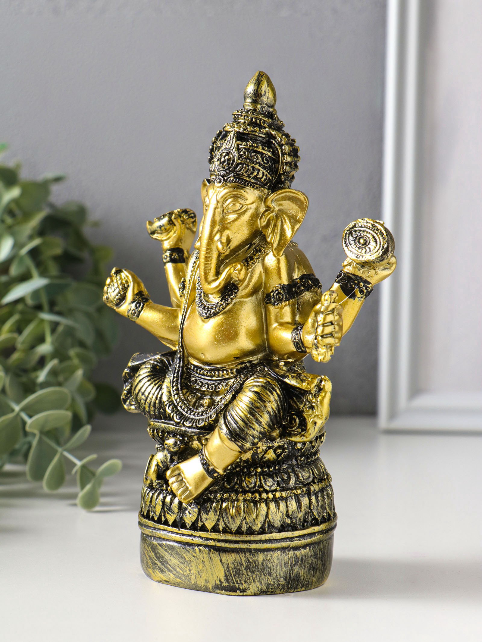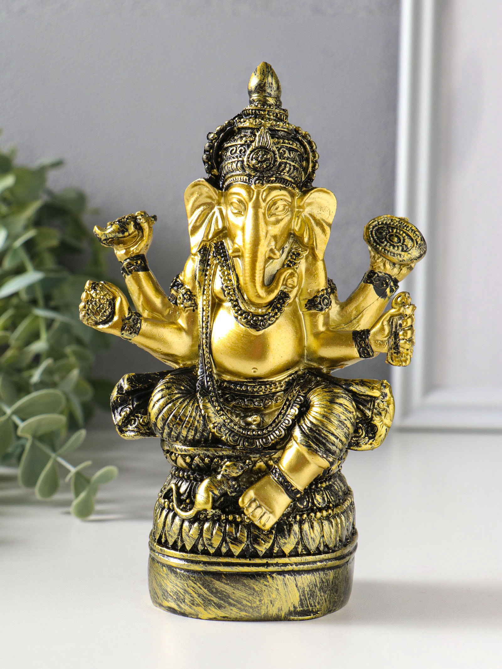 Фигурка полистоун "Ганеша на пуфе", золотая бронза, 6x11.3x16.5 см, 11.3x6x16.5 см., Китай