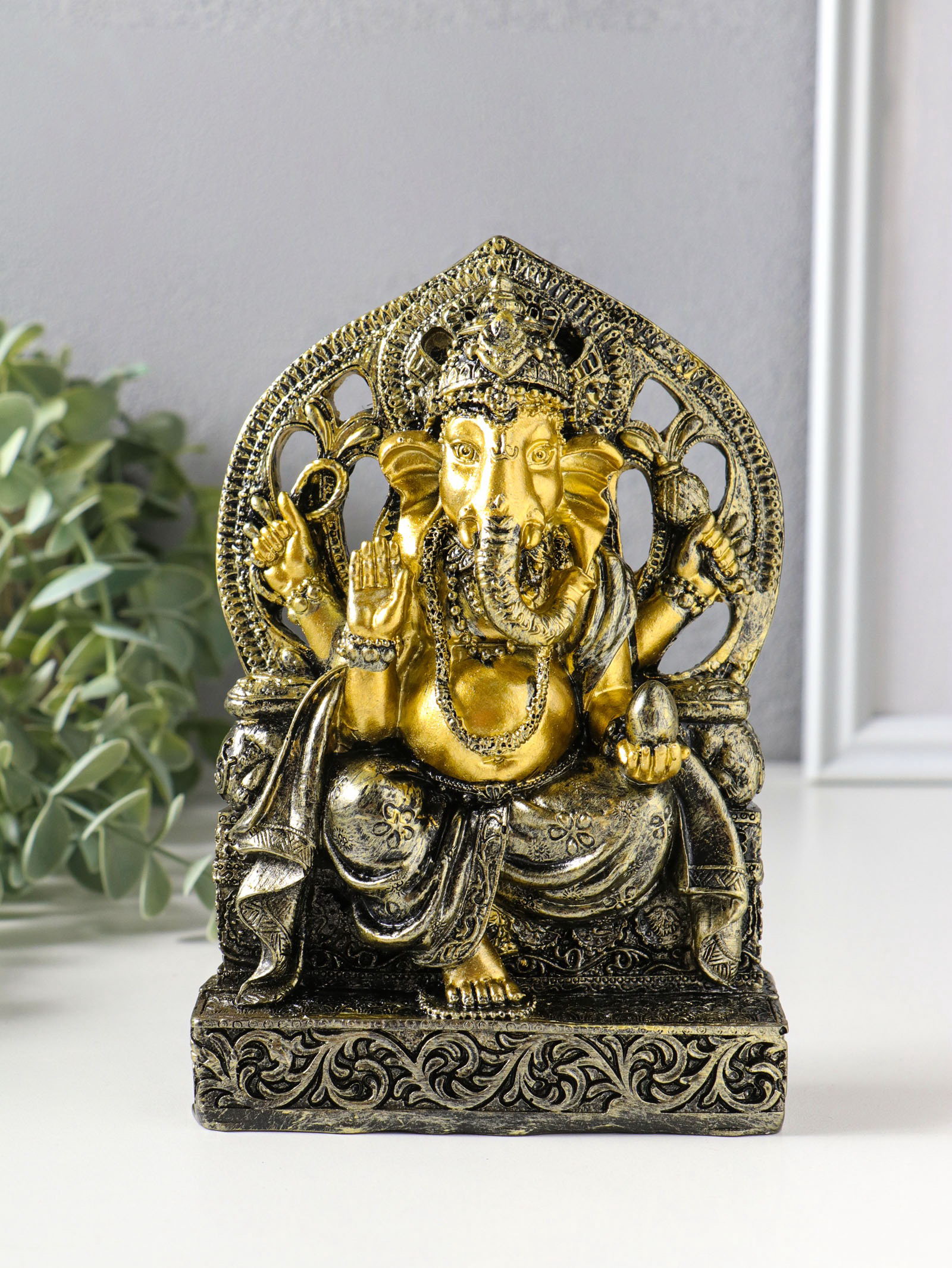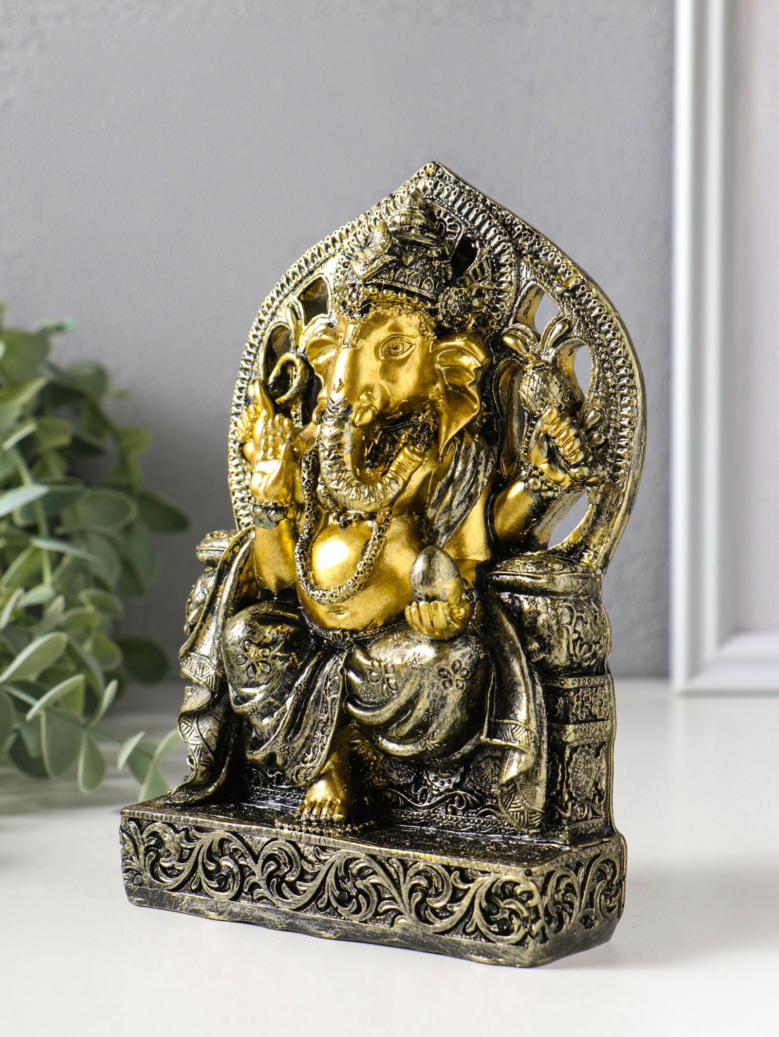 Фигурка полистоун "Ганеша на резном троне", золотая бронза, 4x11.7x17.3 см, 11.7x4x17.3 см., Китай