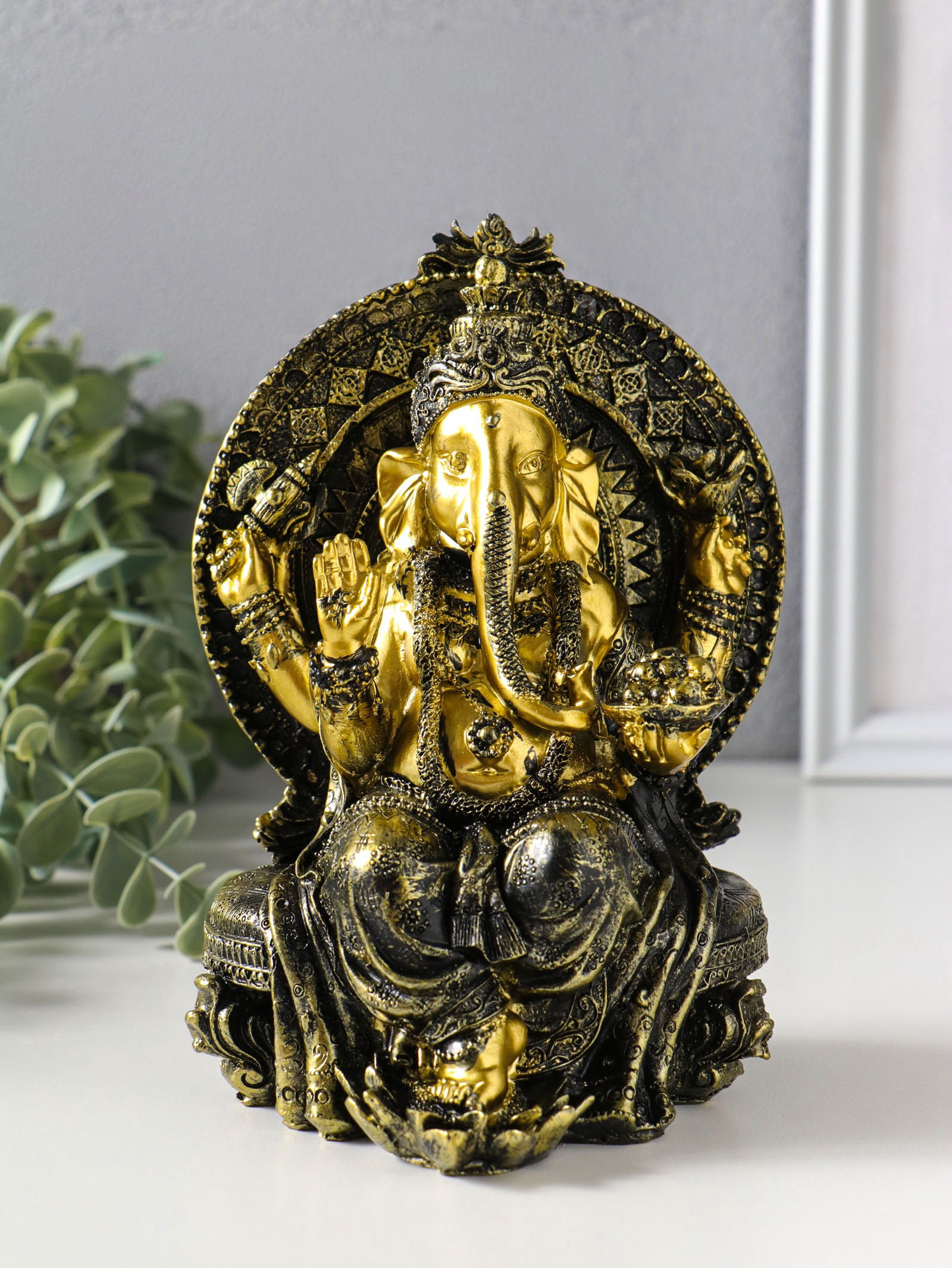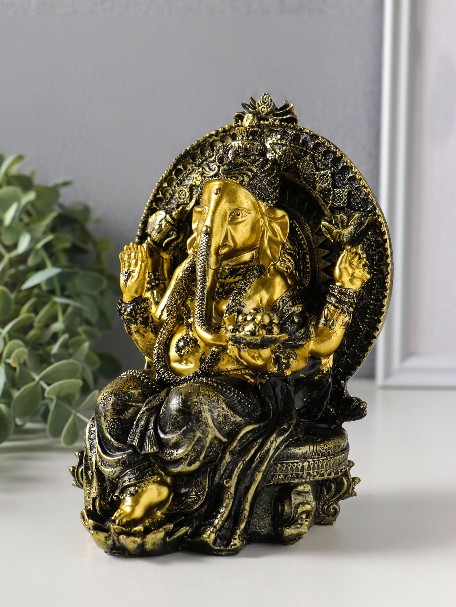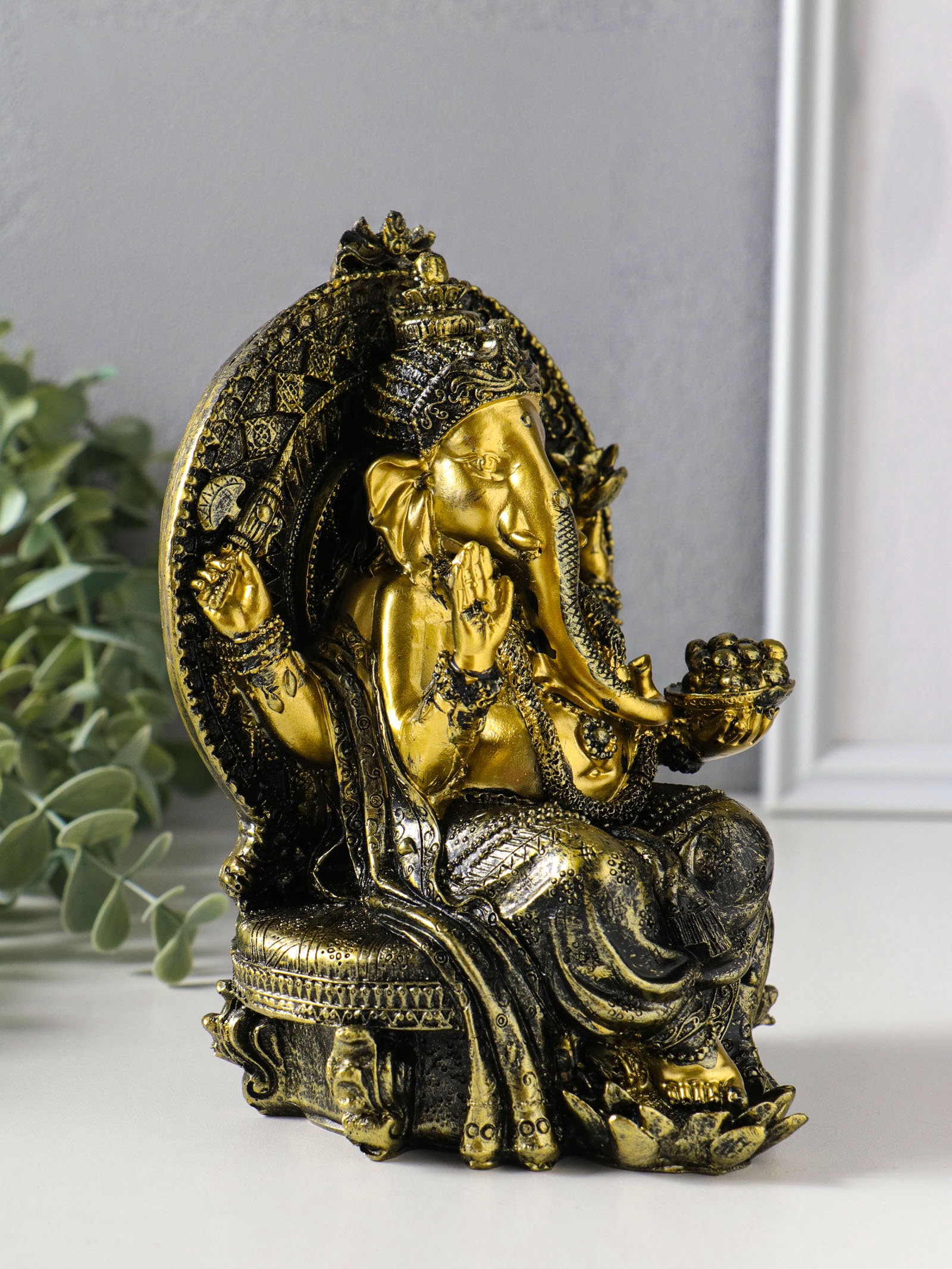 Фигурка полистоун "Ганеша в шароварах, на троне", золотая бронза, 11.3x12.2x17.2 см, 12.2x11.3x17.2 см., Китай