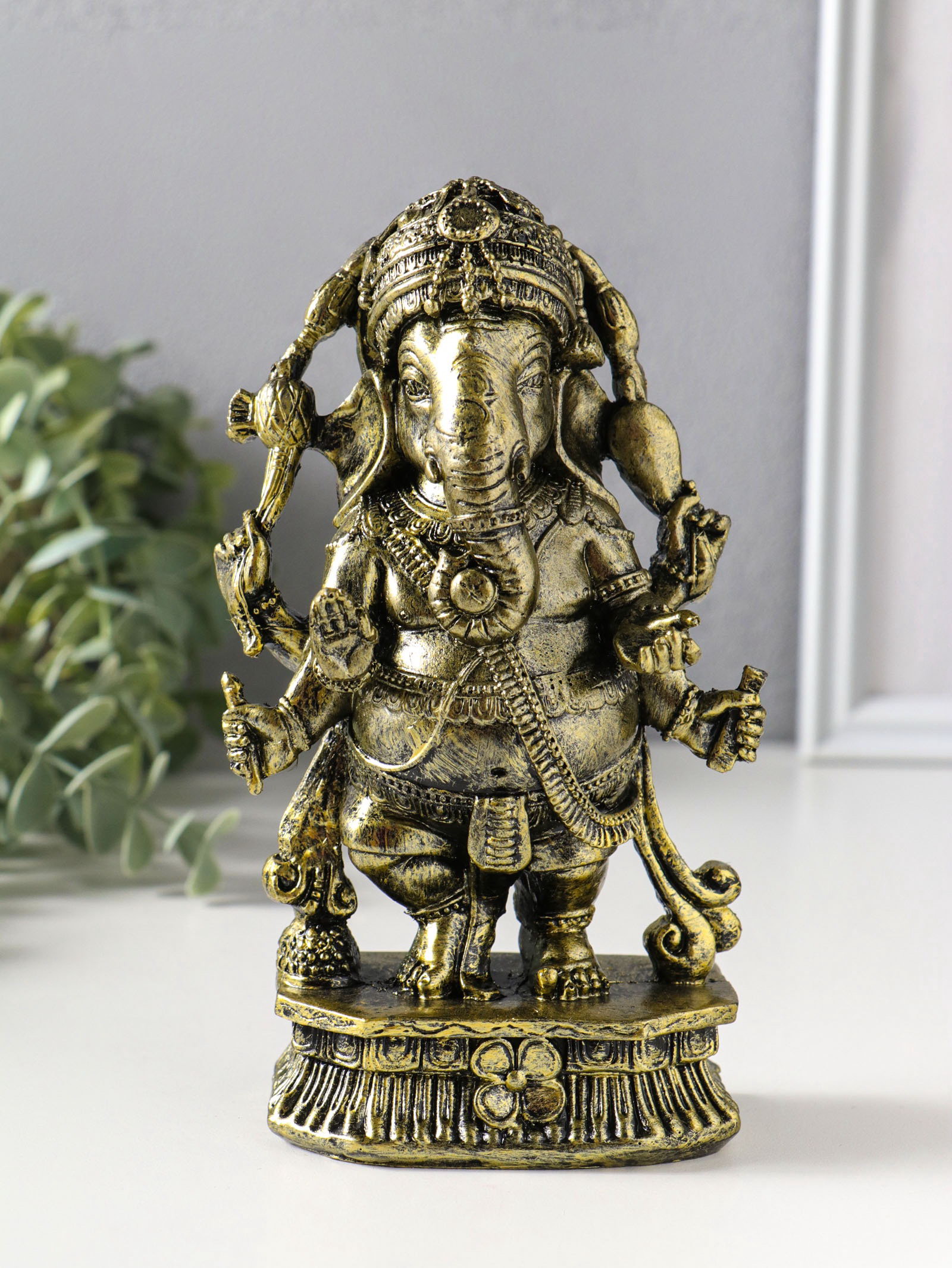 Фигурка полистоун "Ганеша в украшениях", бронза, 5.5x10.5x17.5 см, 10.5x5.5x17.5 см., Китай