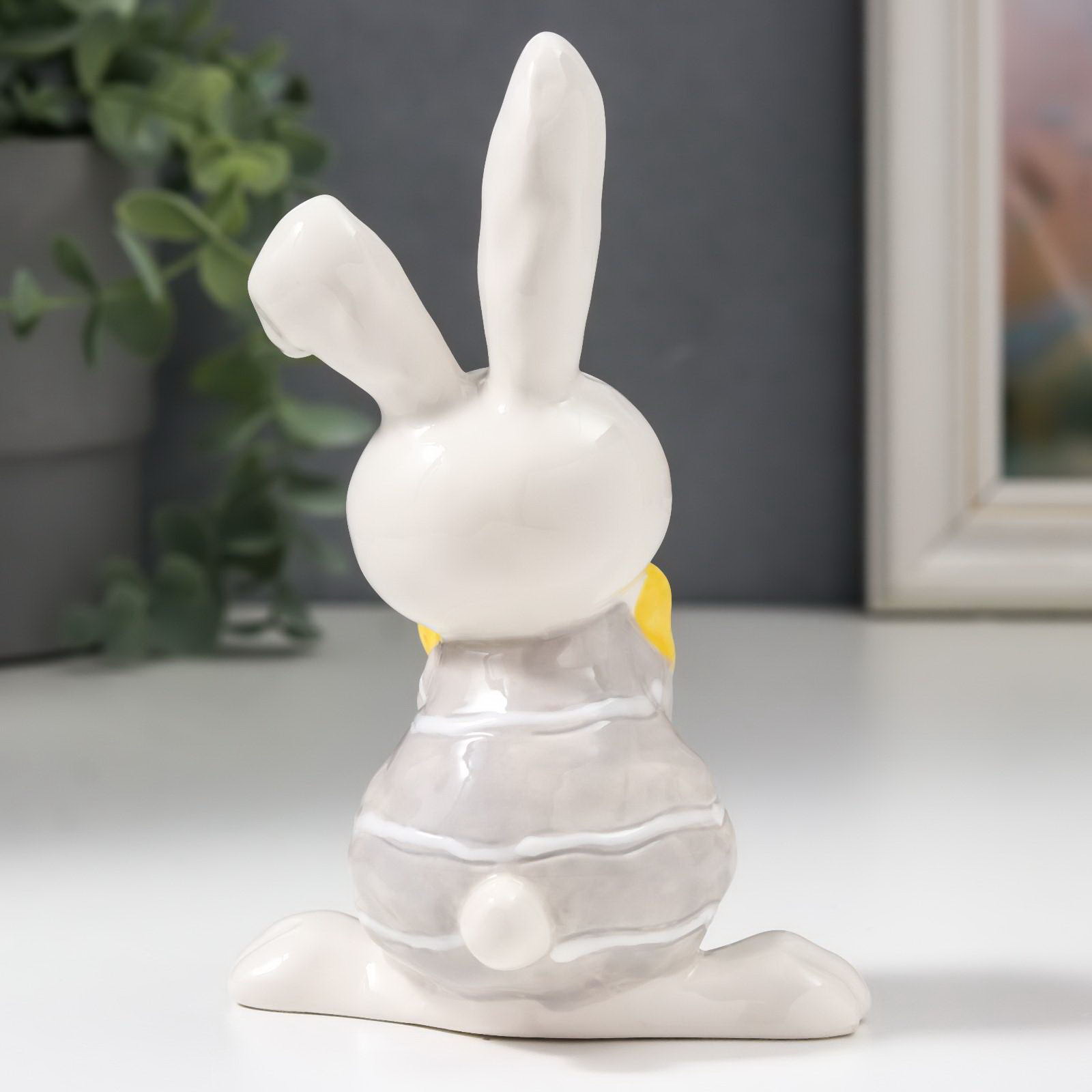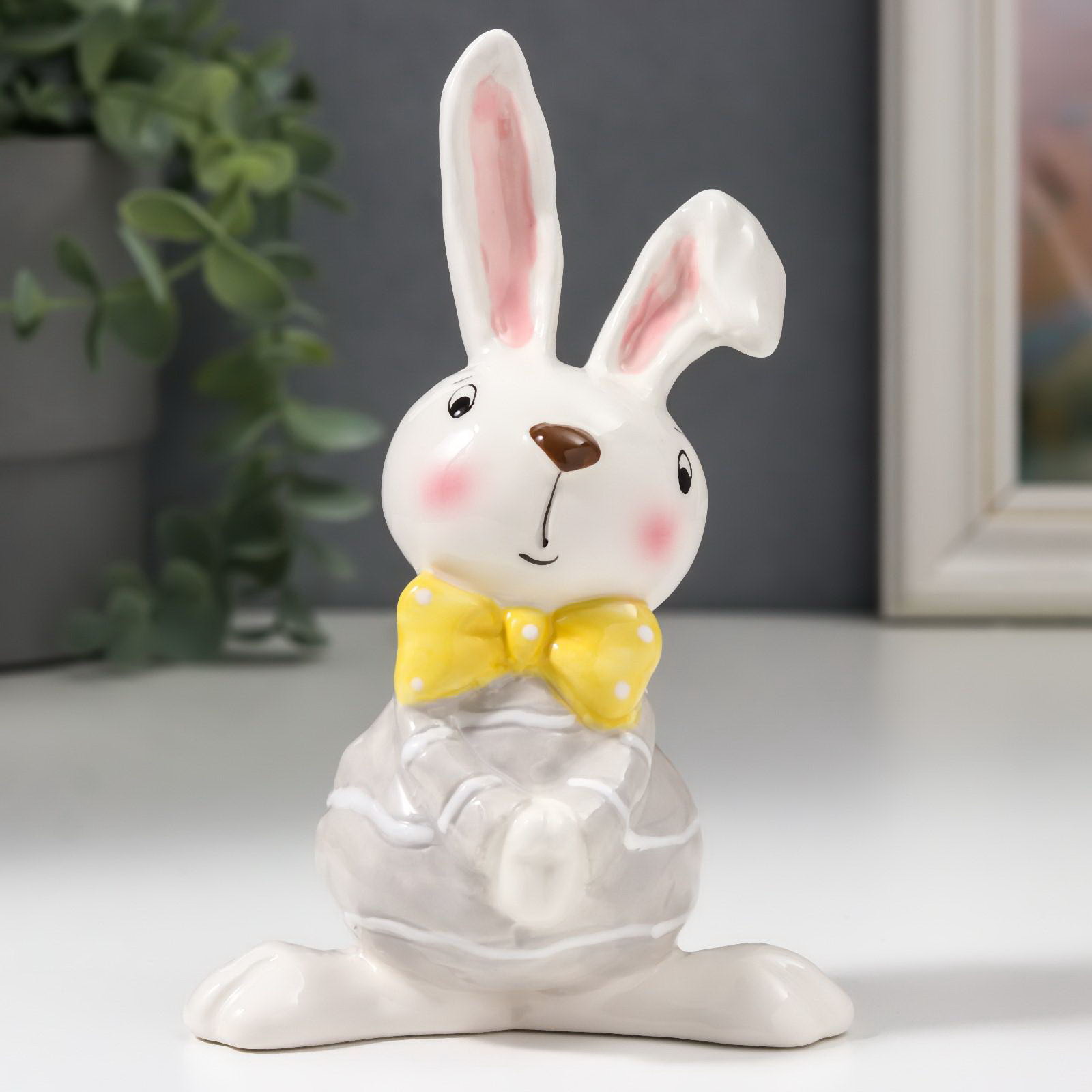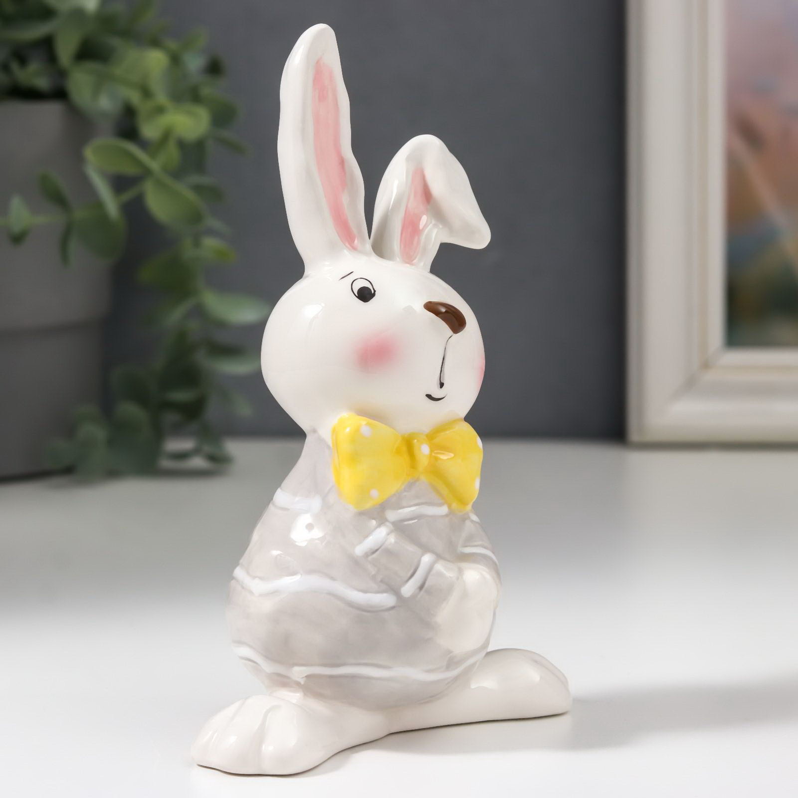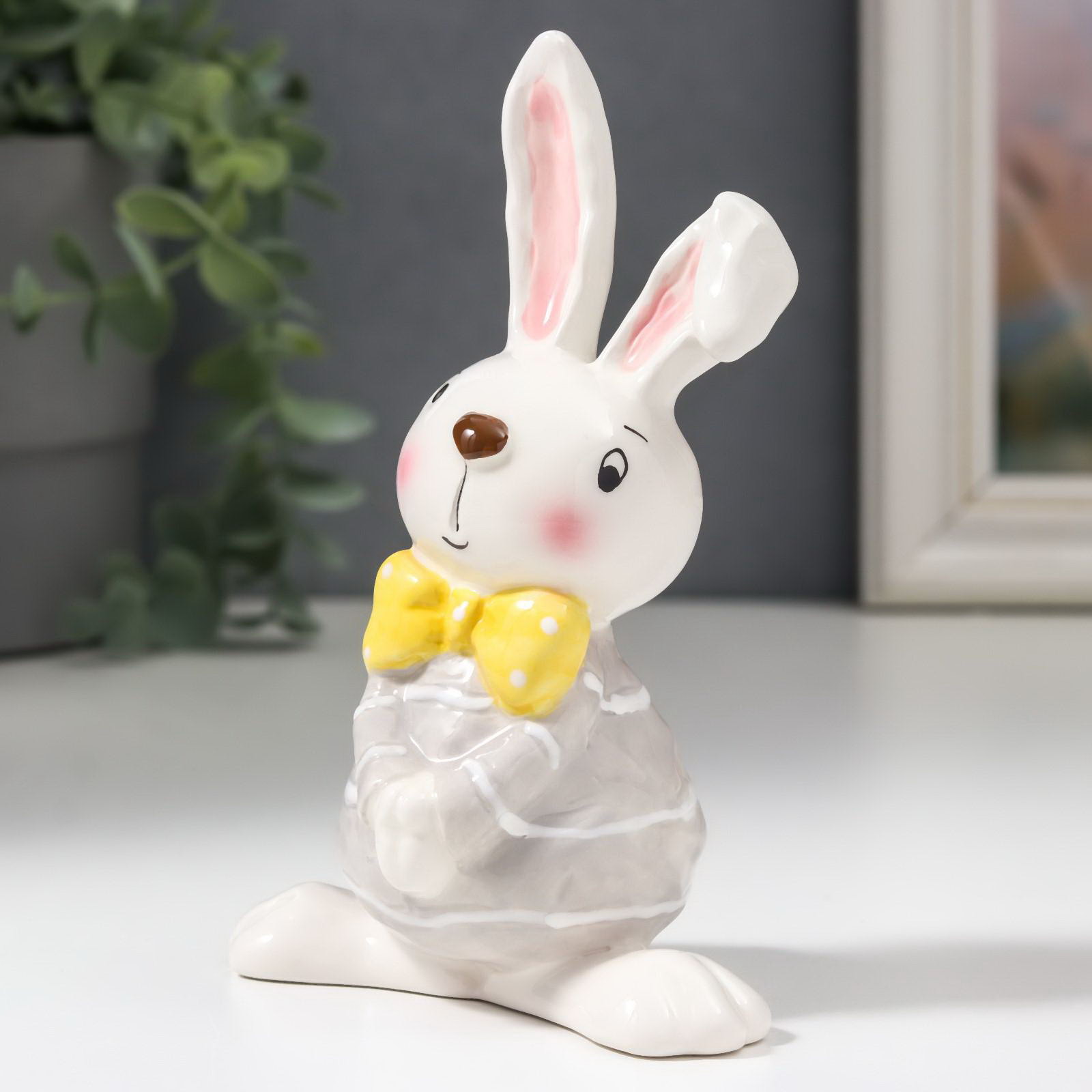 Сувенир керамика "Стеснительный зайчик в серой кофточке, с жёлтым бантом" 14.3х6.6х9.8 см, 6.6x9.8x14.3 см., Китай