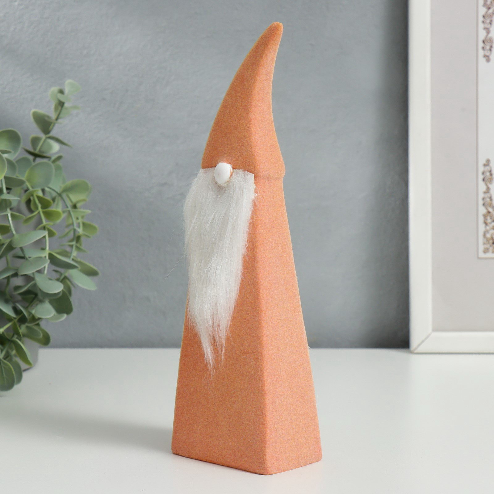 Фигурка керамика "Бородатый гномик в высоком колпаке", оранжевый флок, 22x4.7x6.8 см, 4.7x6.8x22 см., Китай
