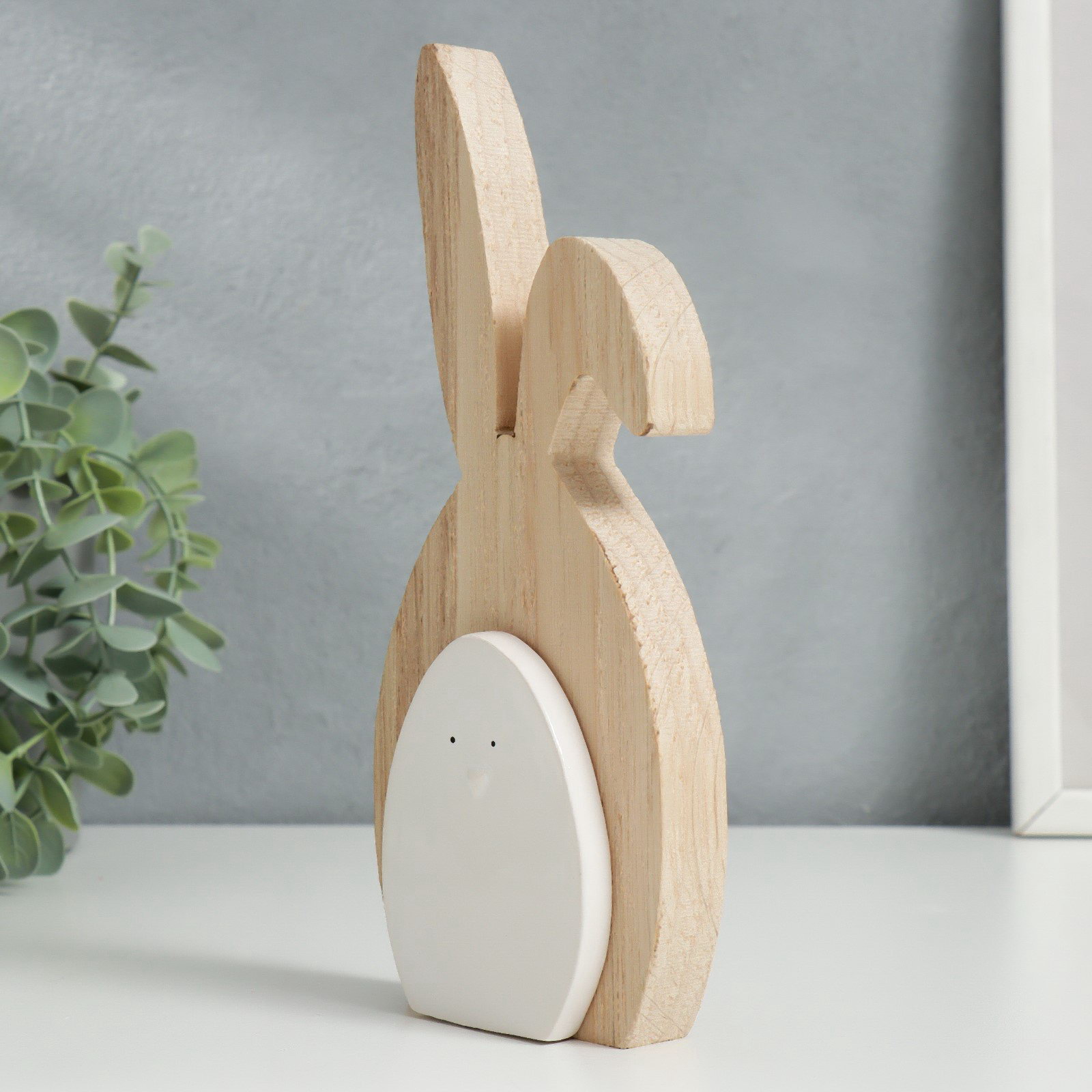 Фигурка дерево, керамика "Зайчик белый", 21x3x9.3 см, 3x9.3x21 см., Китай