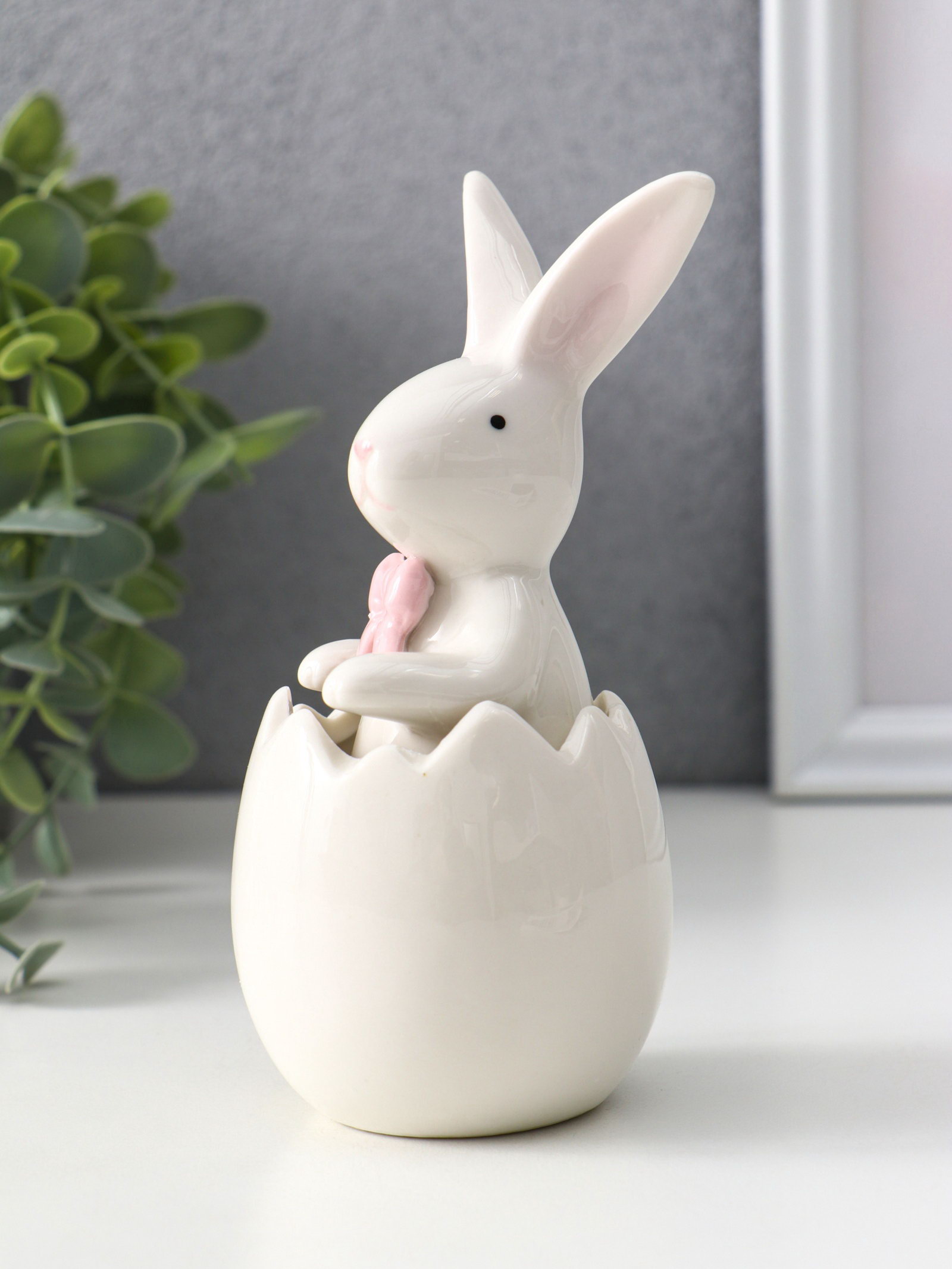 Фигурка керамика "Белый кролик с бантиком в скорлупе", 5x7.5x13.5 см, 7.5x5x13.5 см., Китай