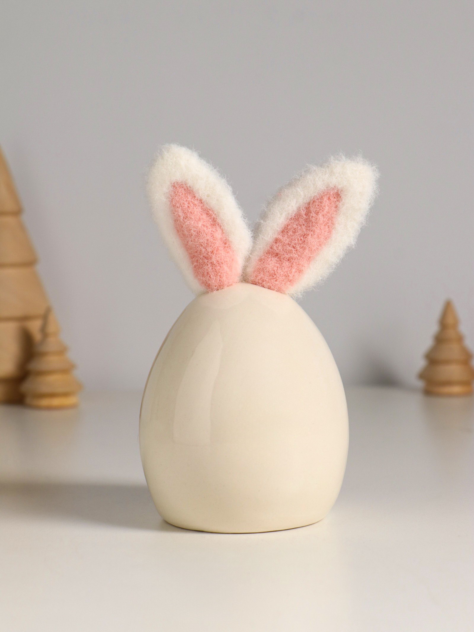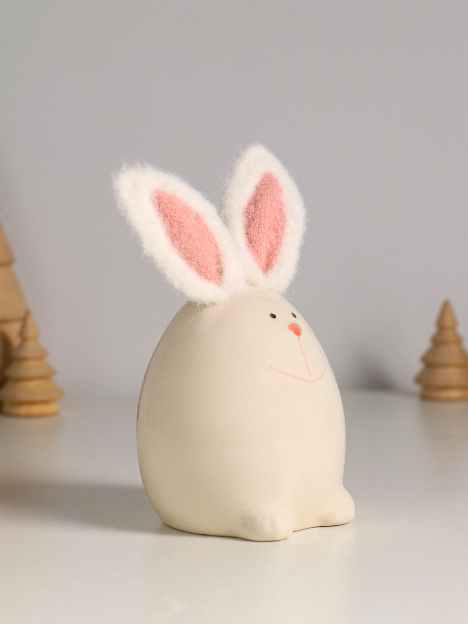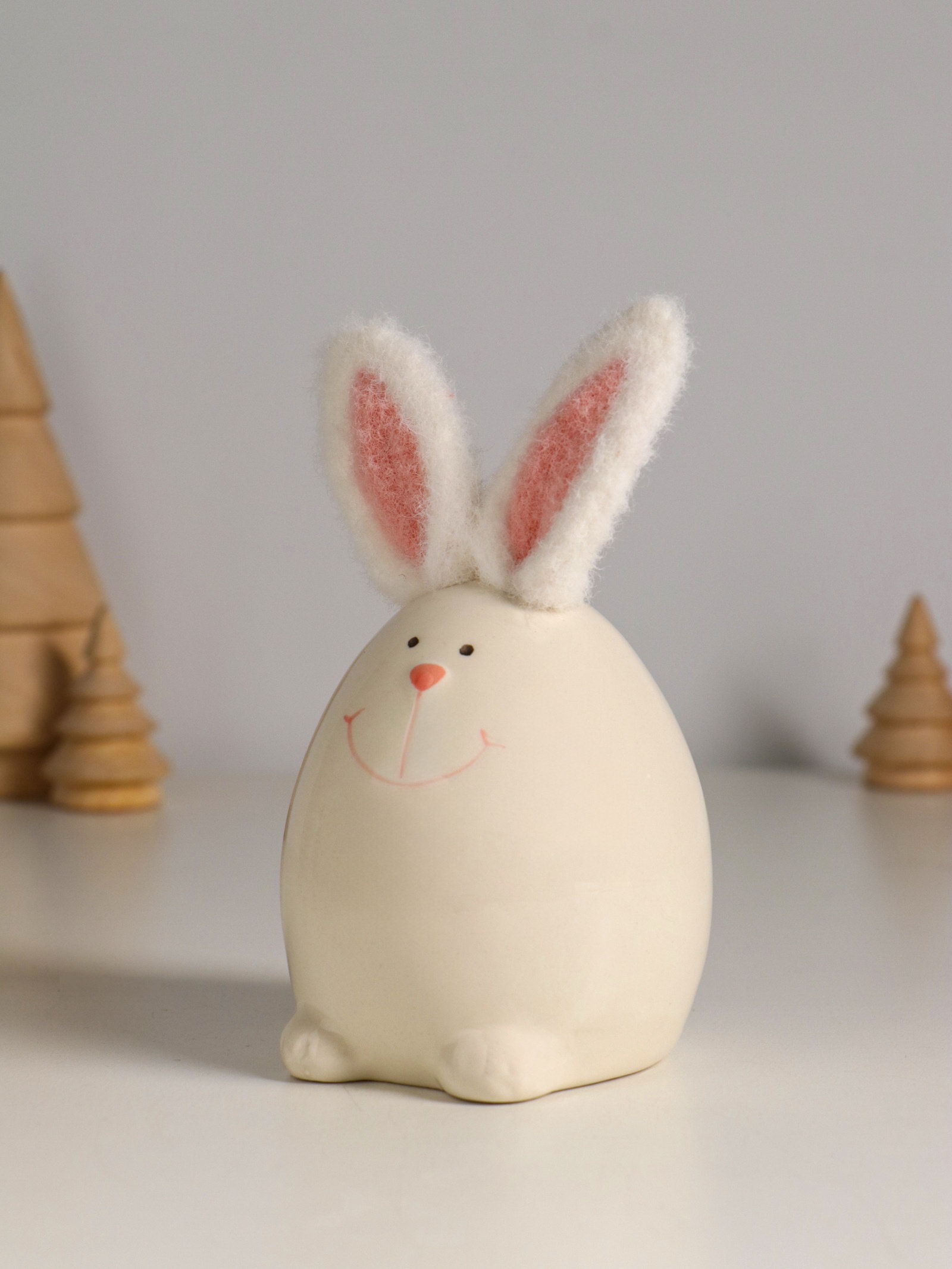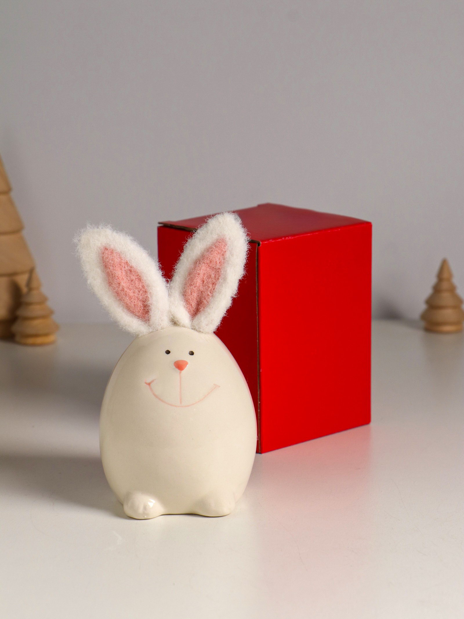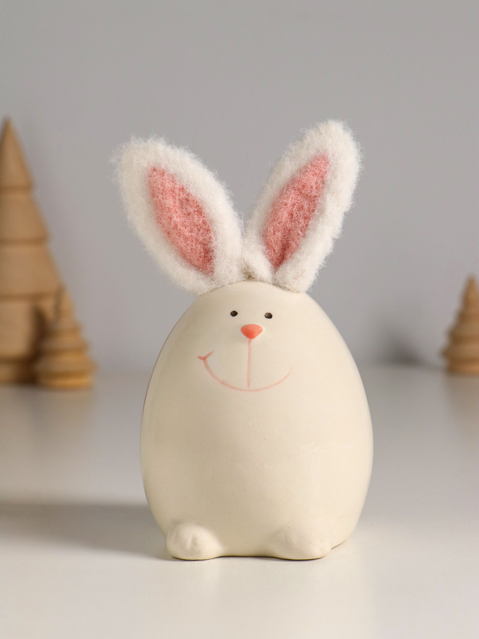 Фигурка керамика, текстиль "Зайчик в форме яйца", белый, 7.2x7.2x12.5 см, 7.2x7.2x12.5 см., Китай