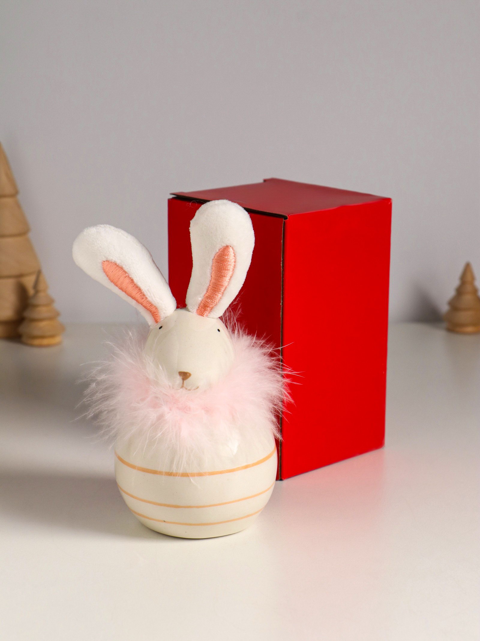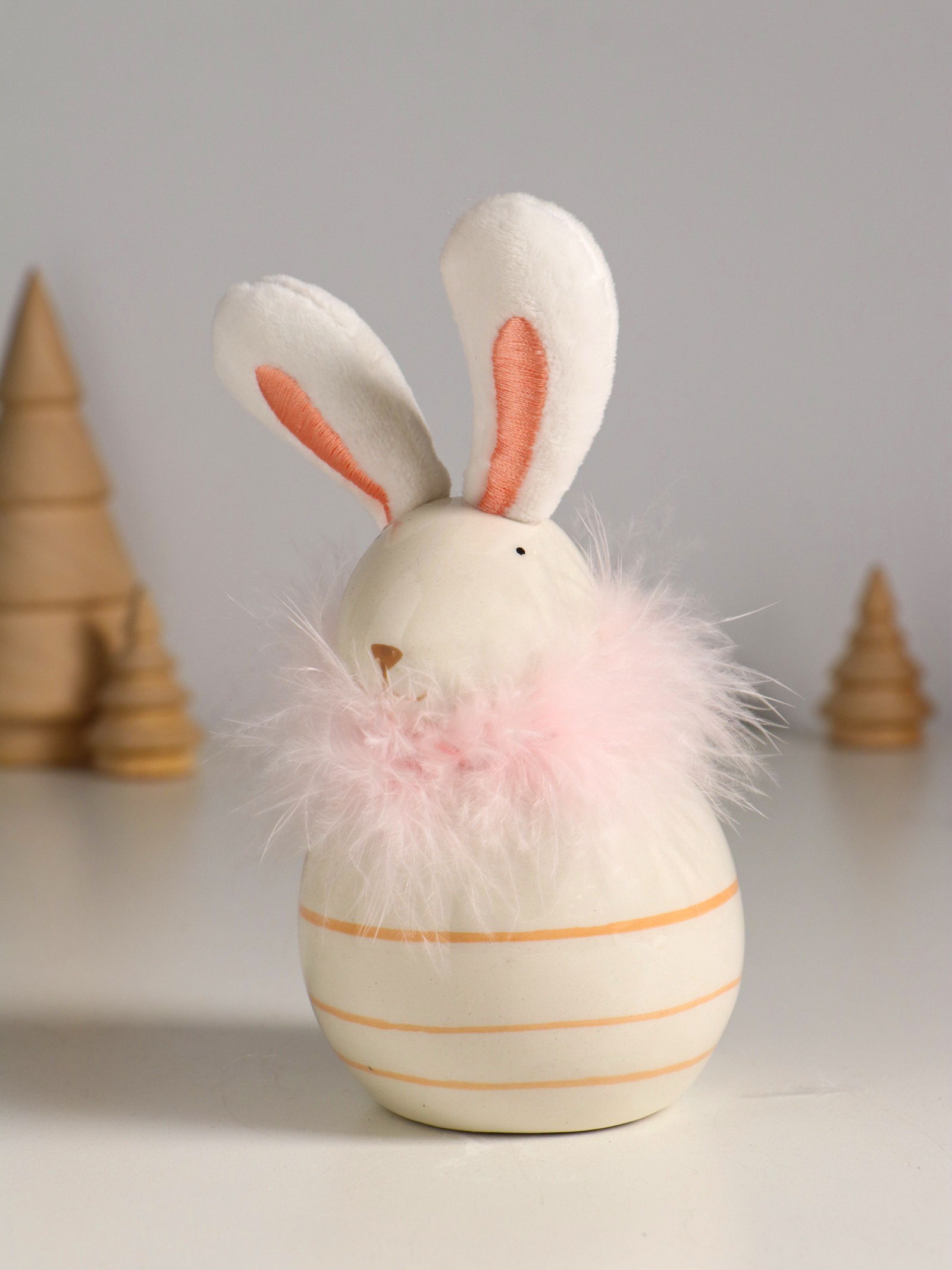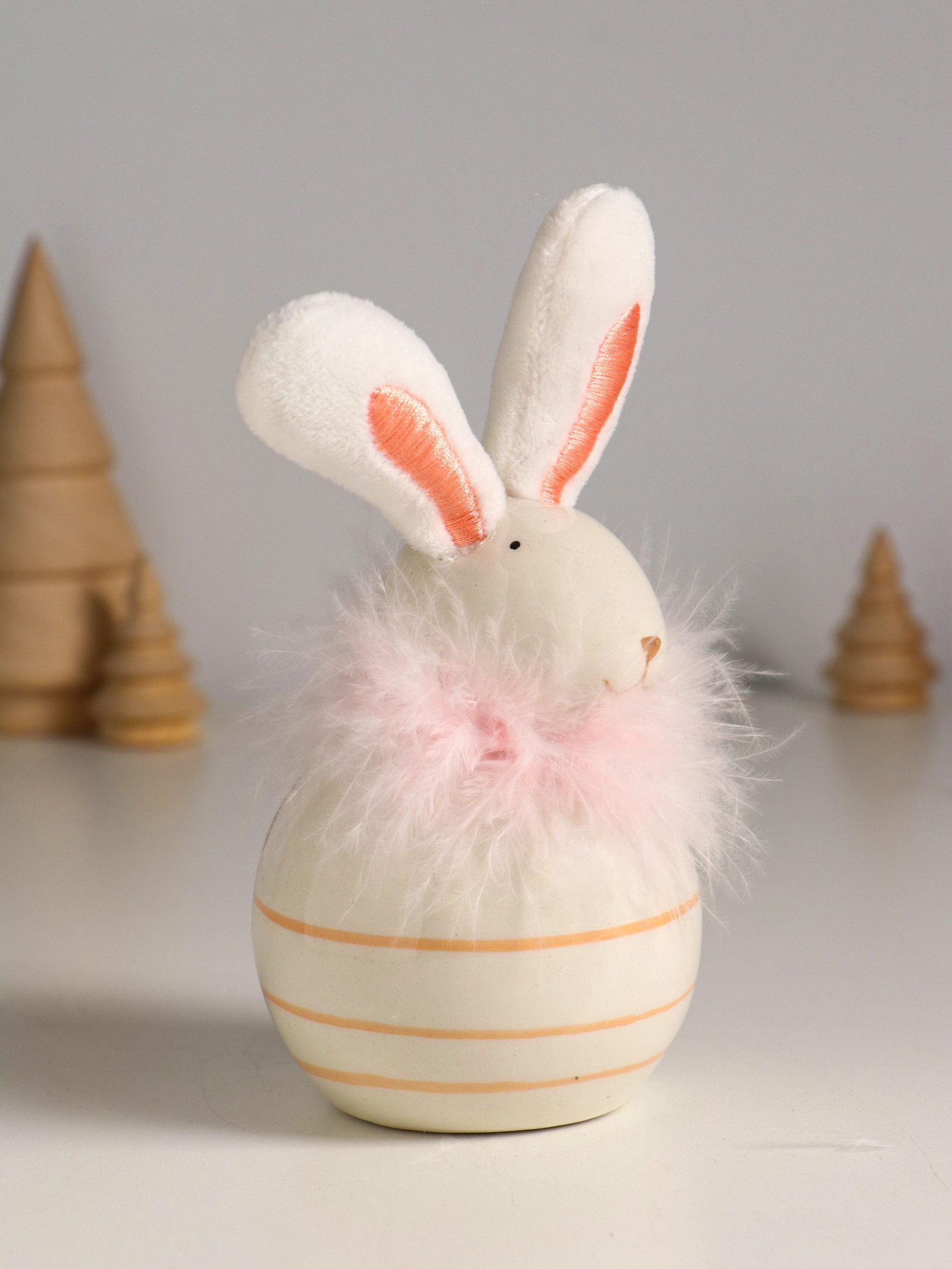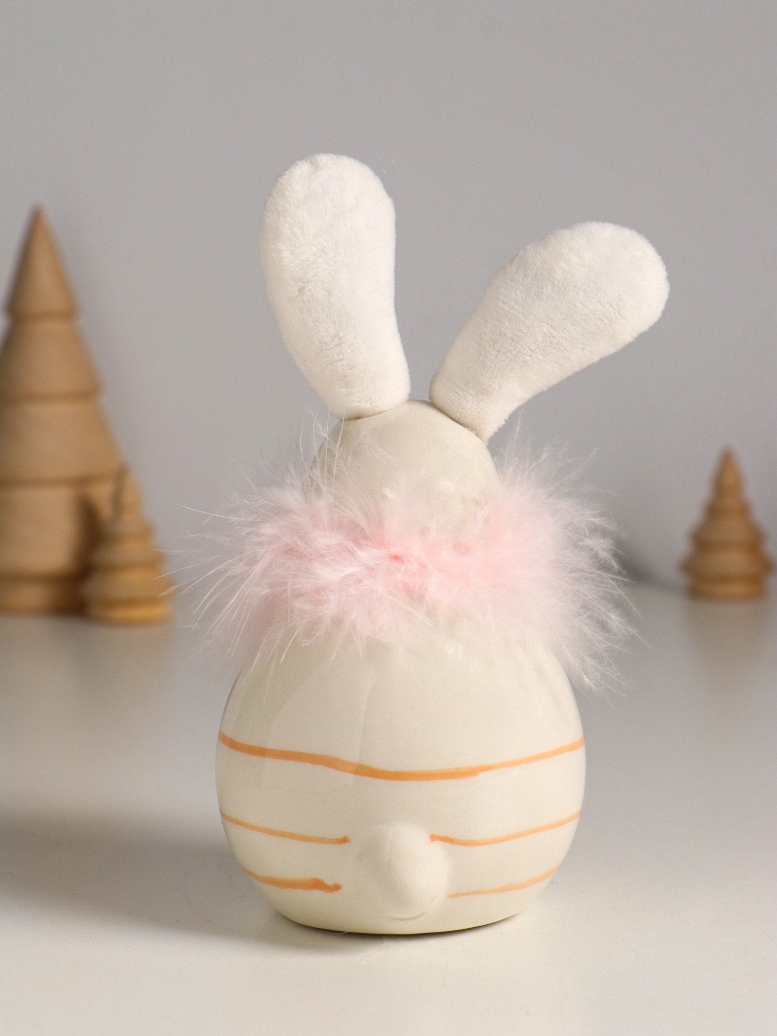 Фигурка керамика, текстиль "Зайчик с пухом, круглый", 7.4x7.4x15.5 см, 7.4x7.4x15.5 см., Китай
