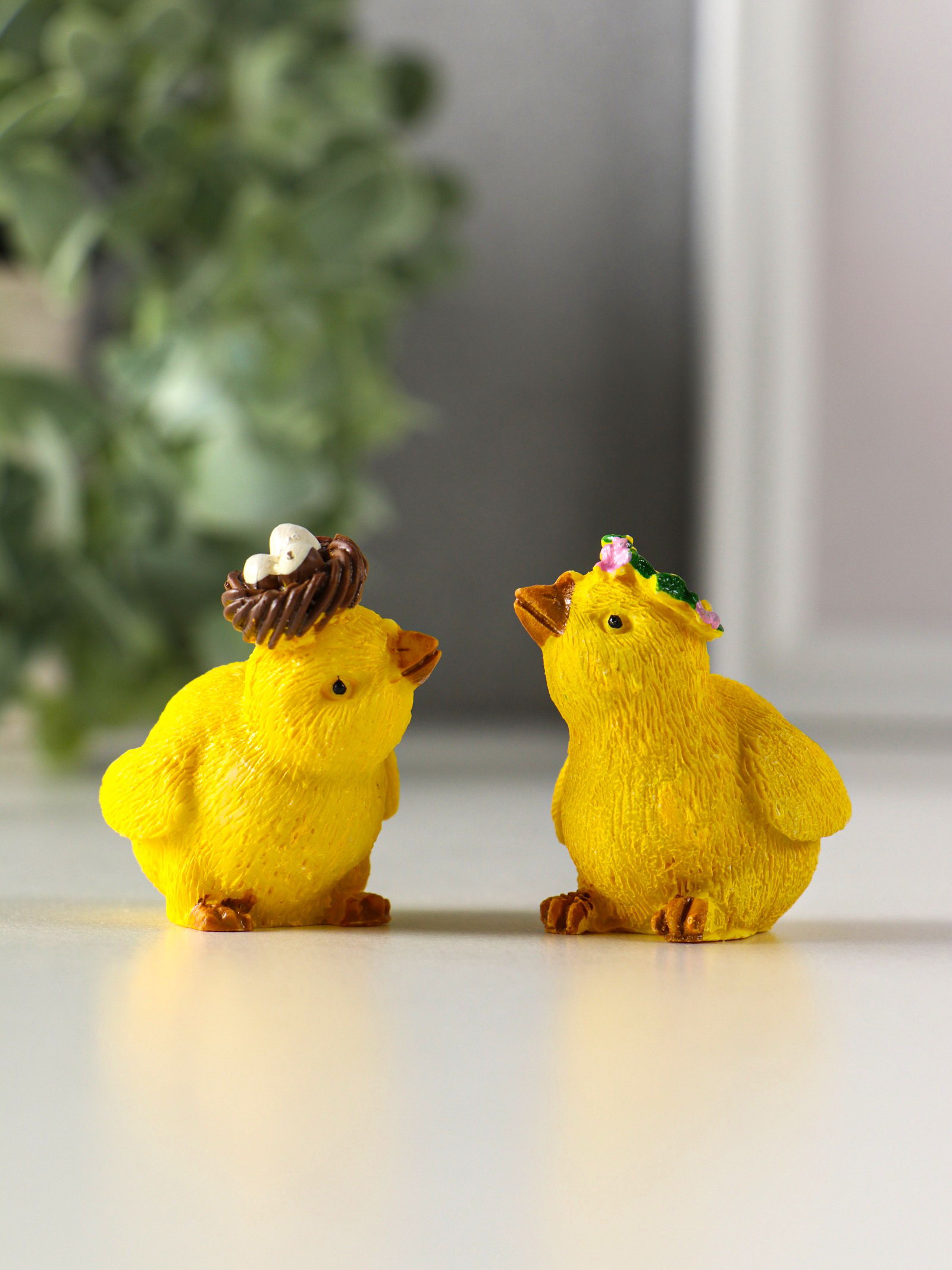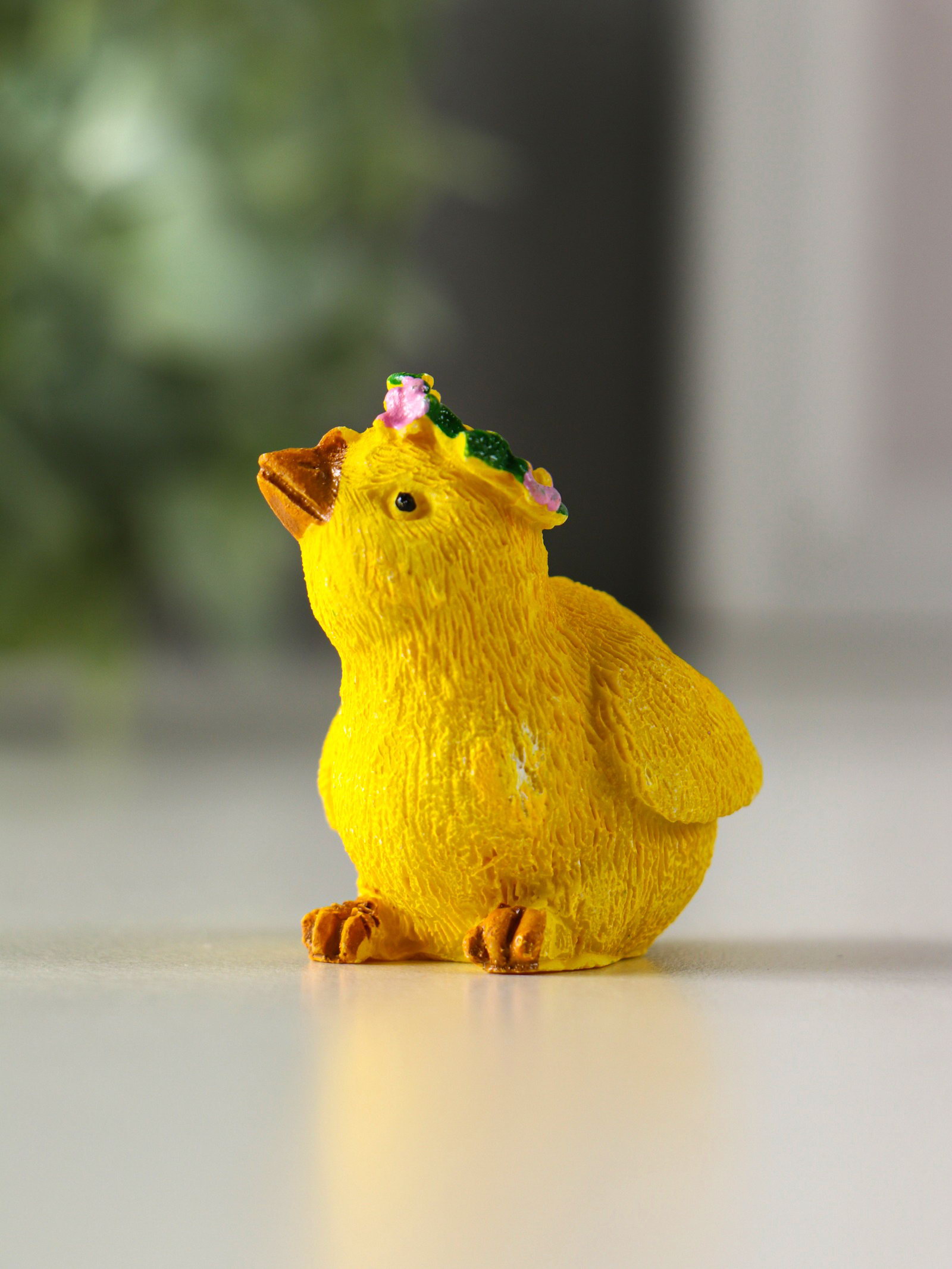 Фигурка полистоун "Цыплёнок в веночке или с гнездом", 4x3x4 см, МИКС, 3x4.5x4 см., Китай