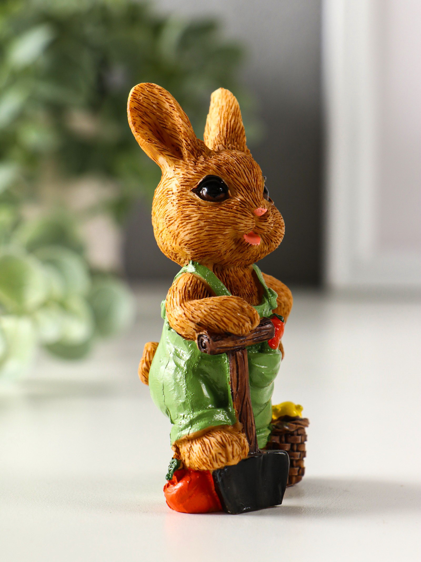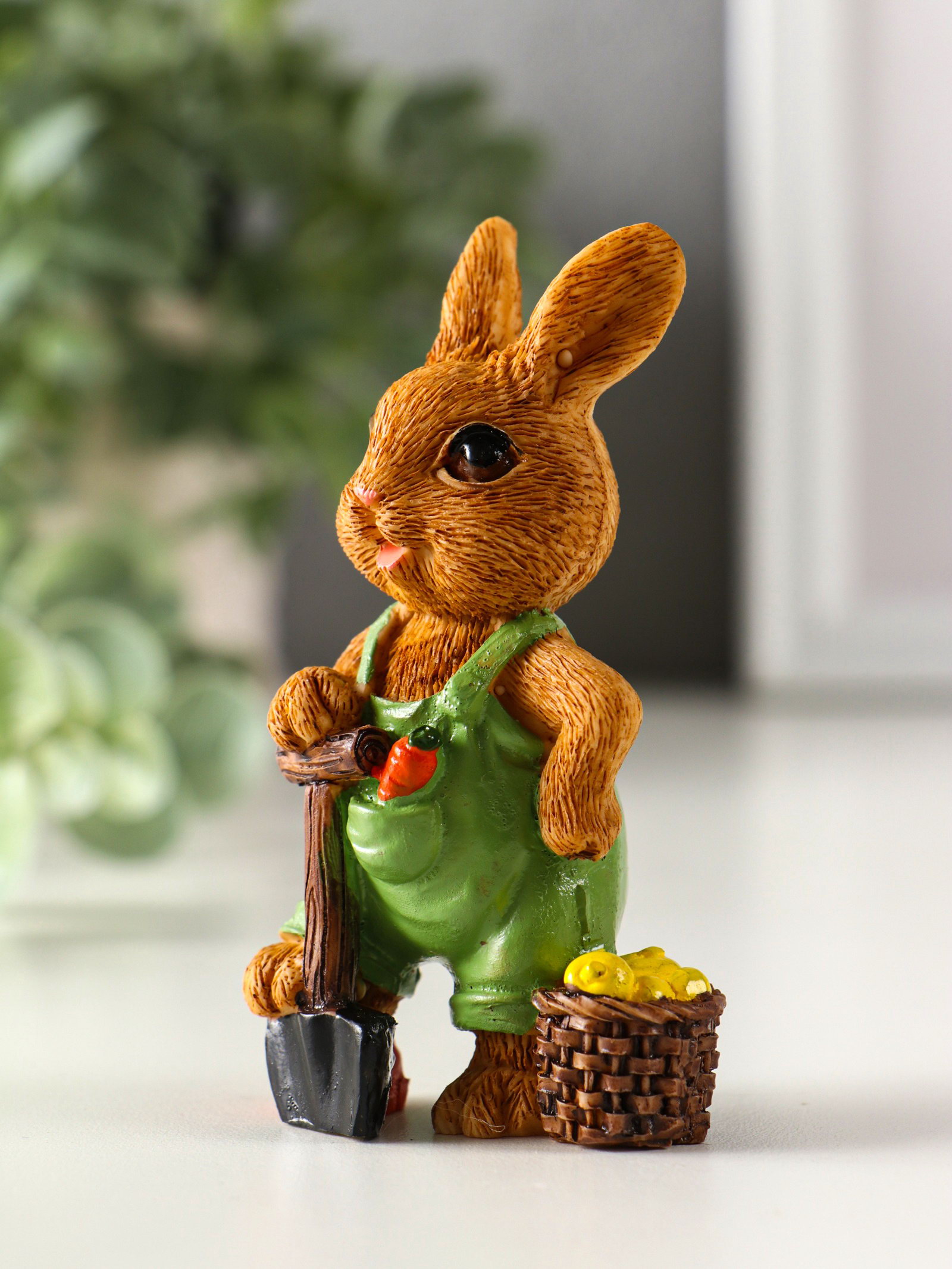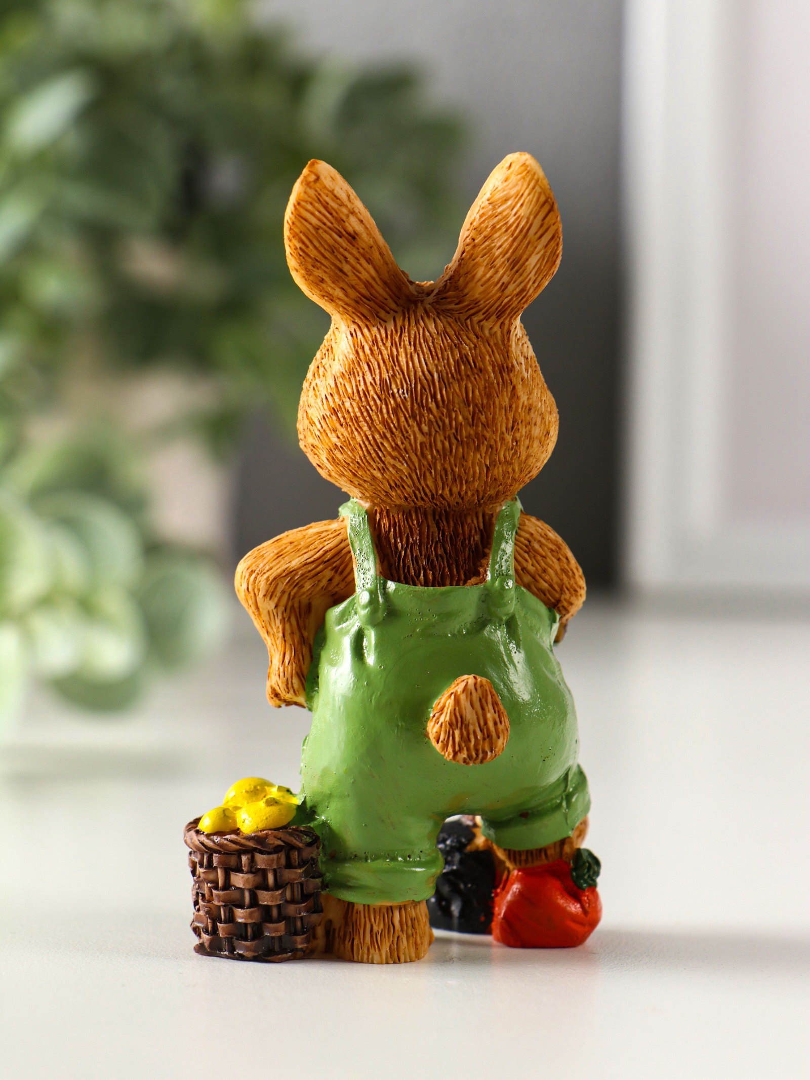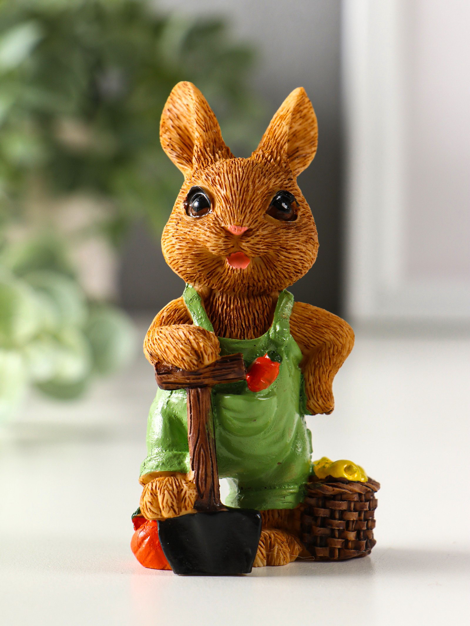 Фигурка полистоун "Зайчик-огородник с корзиной с урожаем", 4.8x3.2x9 см, МИКС, 3.2x4.8x9 см., Китай