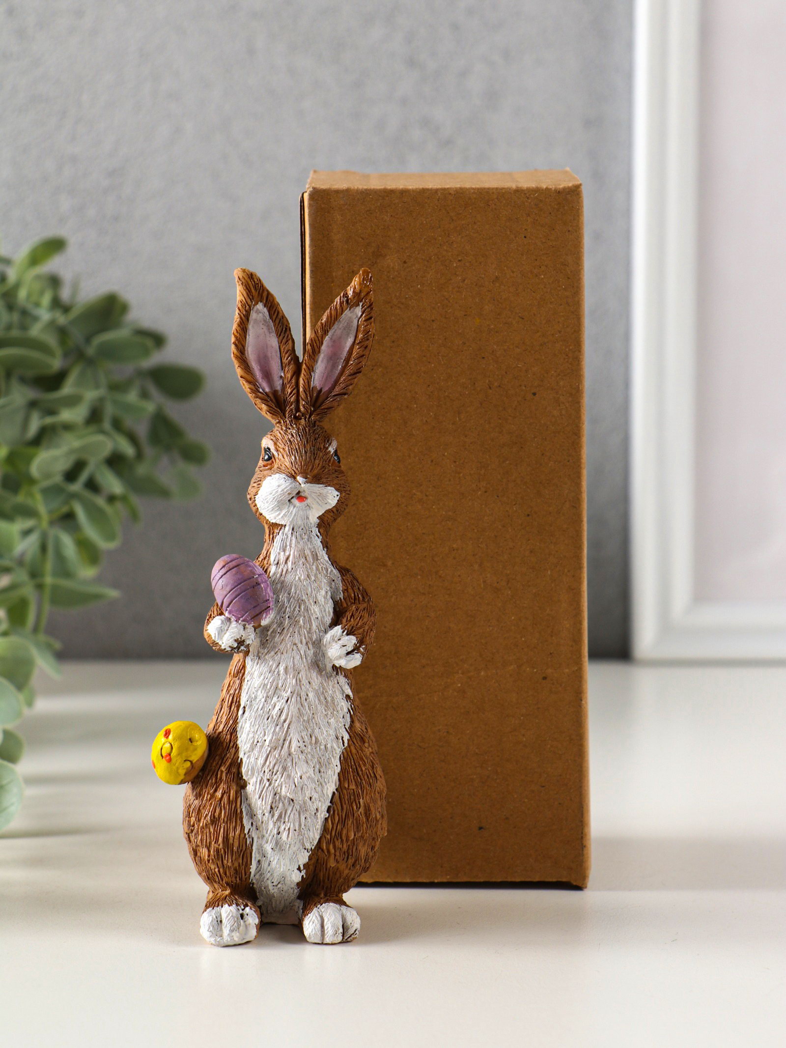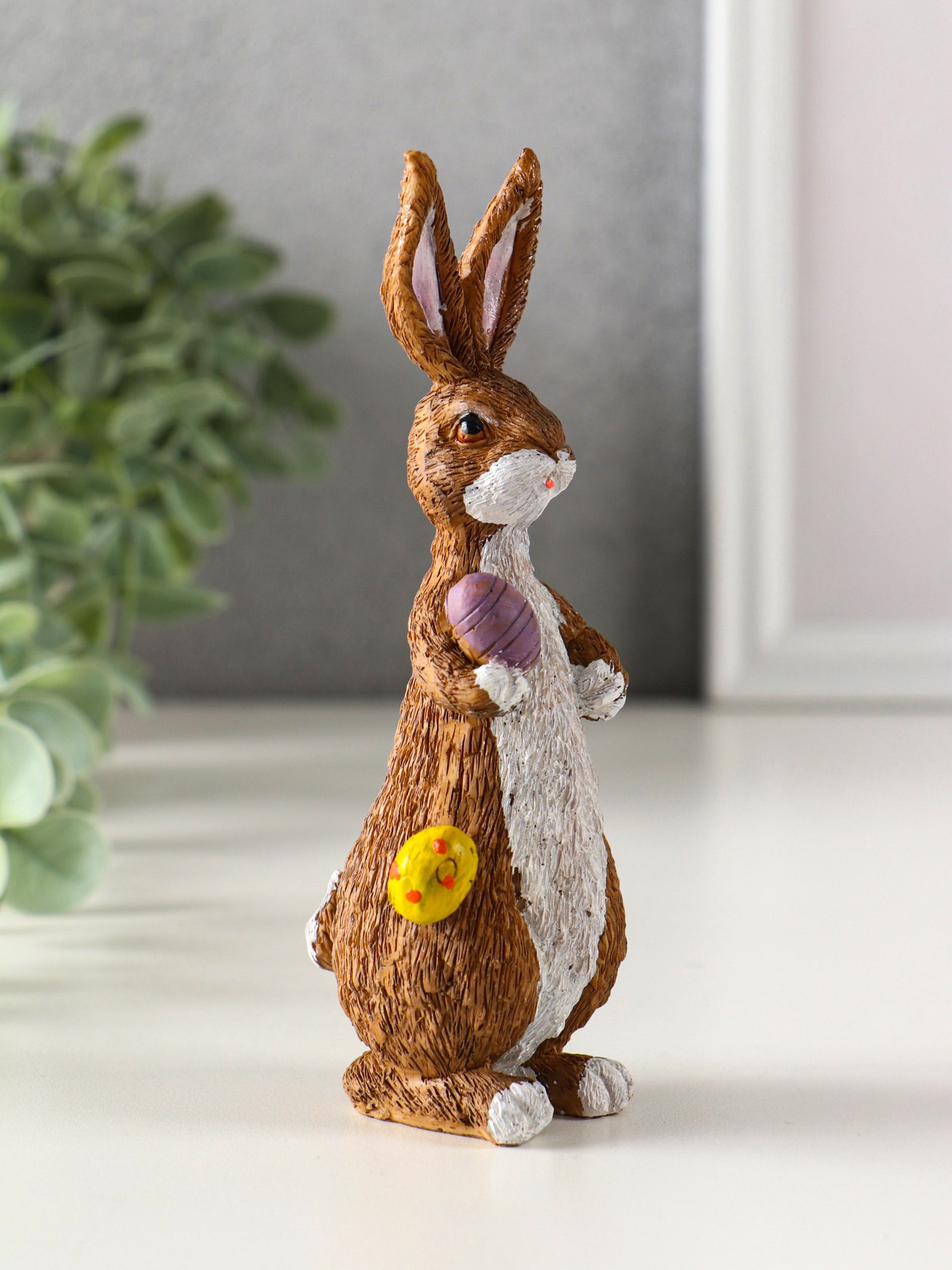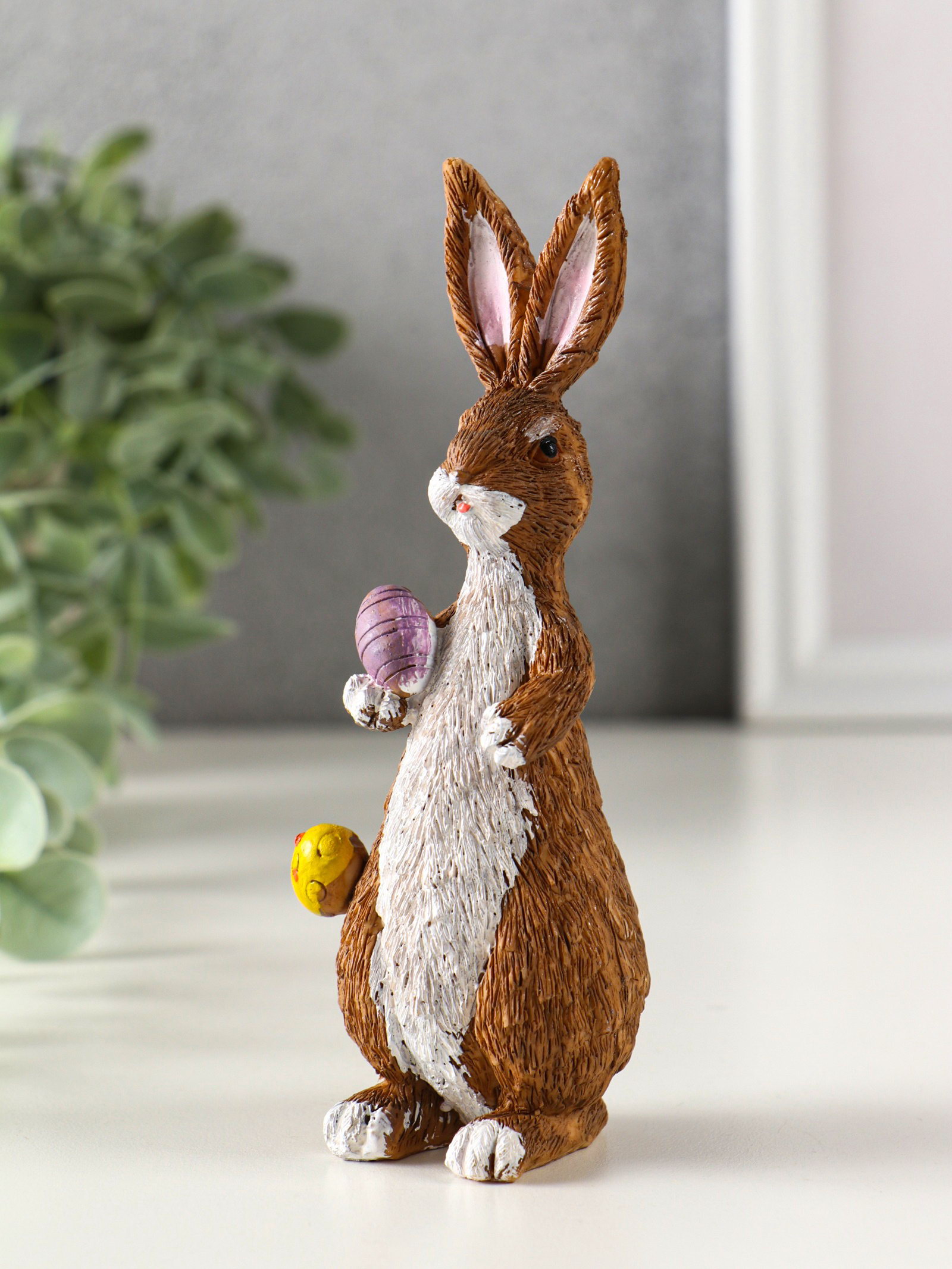 Фигурка полистоун "Кролик с пасхальными яичками", 4.8x5x14.5 см, 5x4.8x14.5 см., Китай