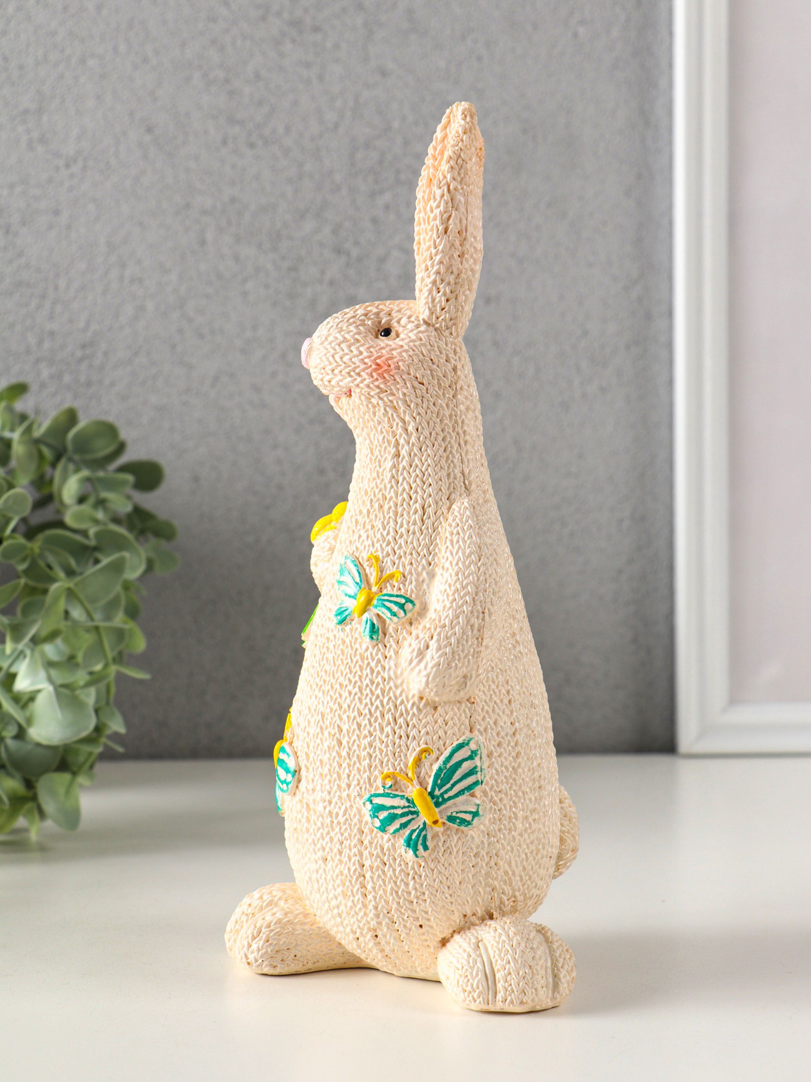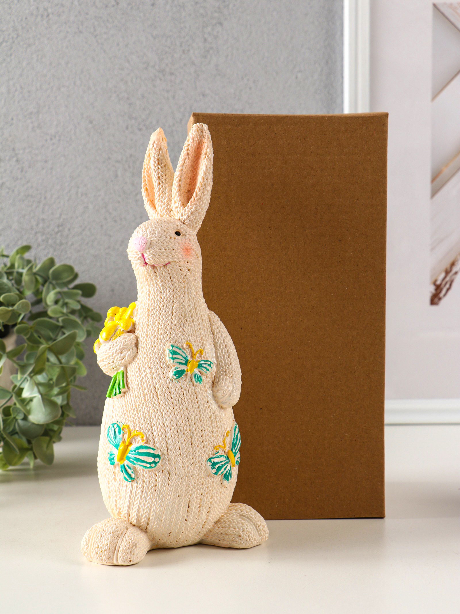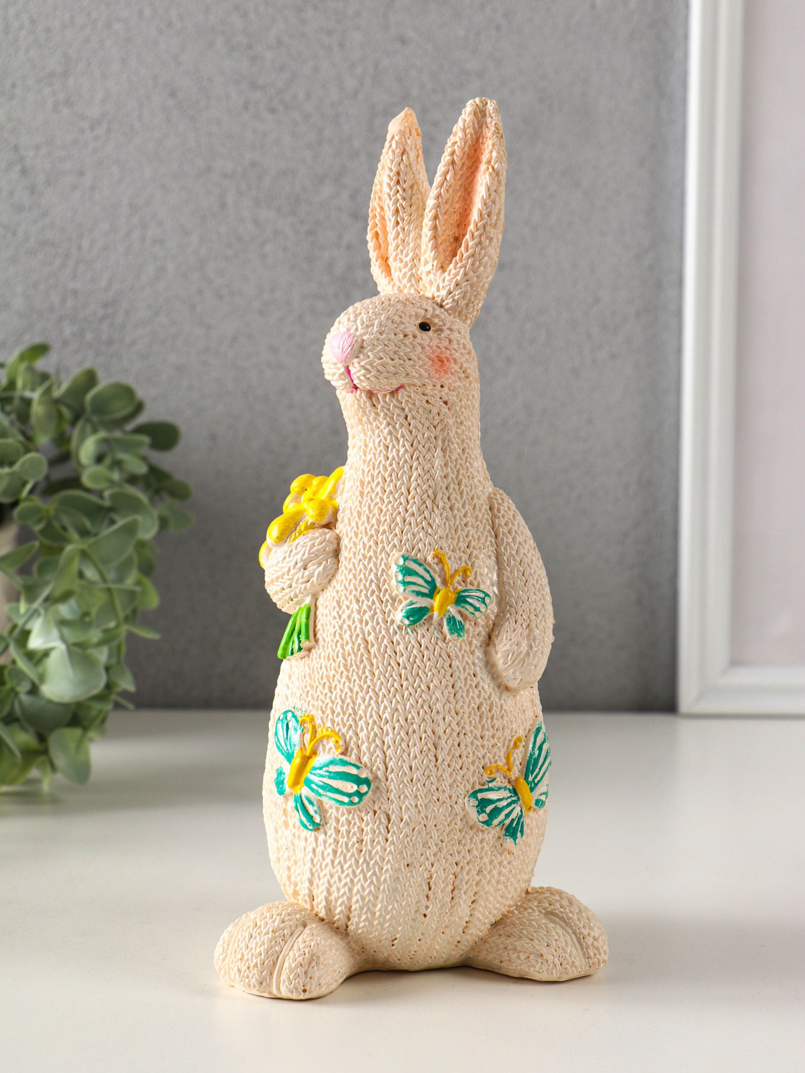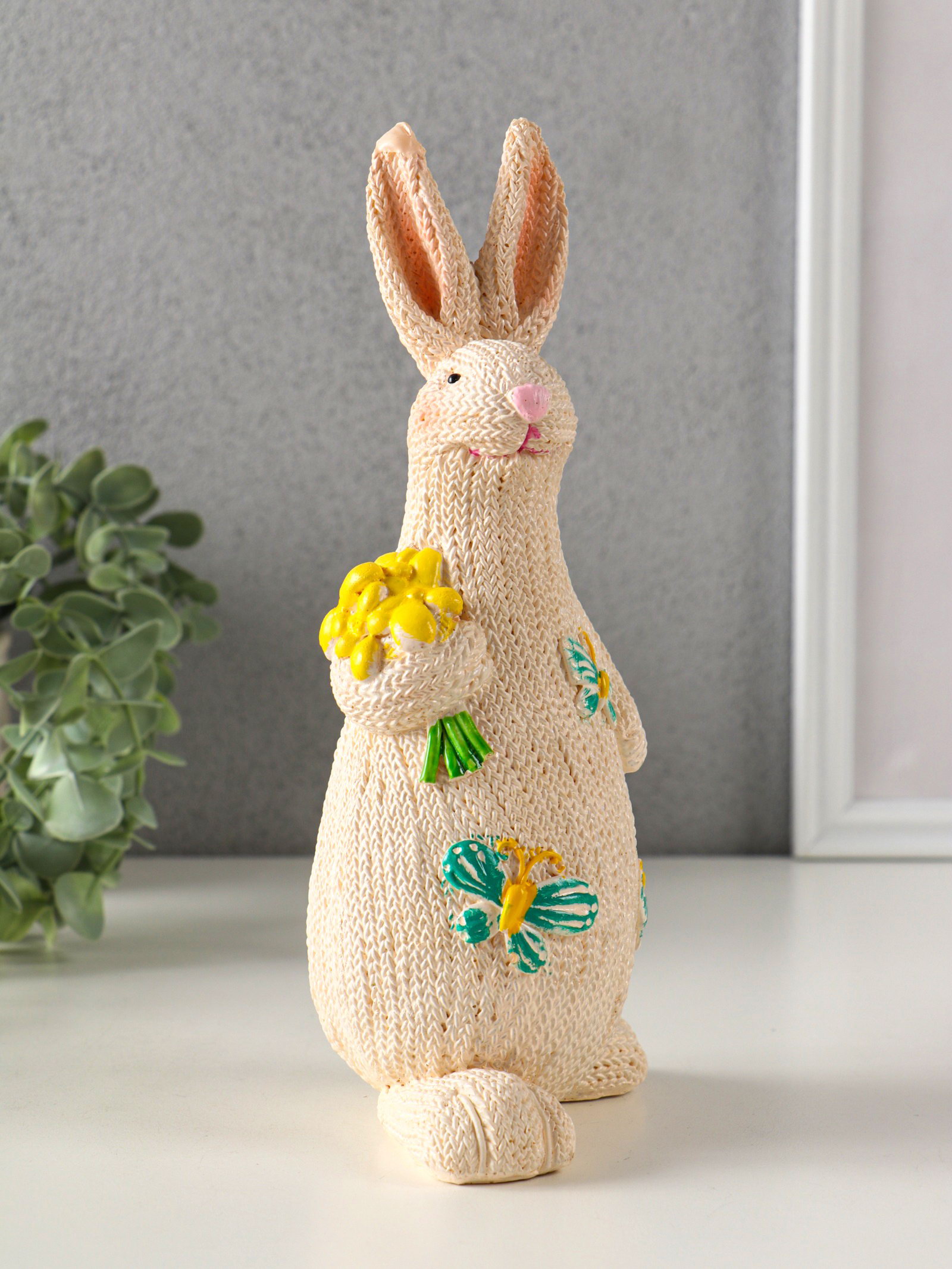 Фигурка полистоун "Зайка вязанный с букетом цветов", 8x10.5x23 см, 10.5x8x23 см., Китай