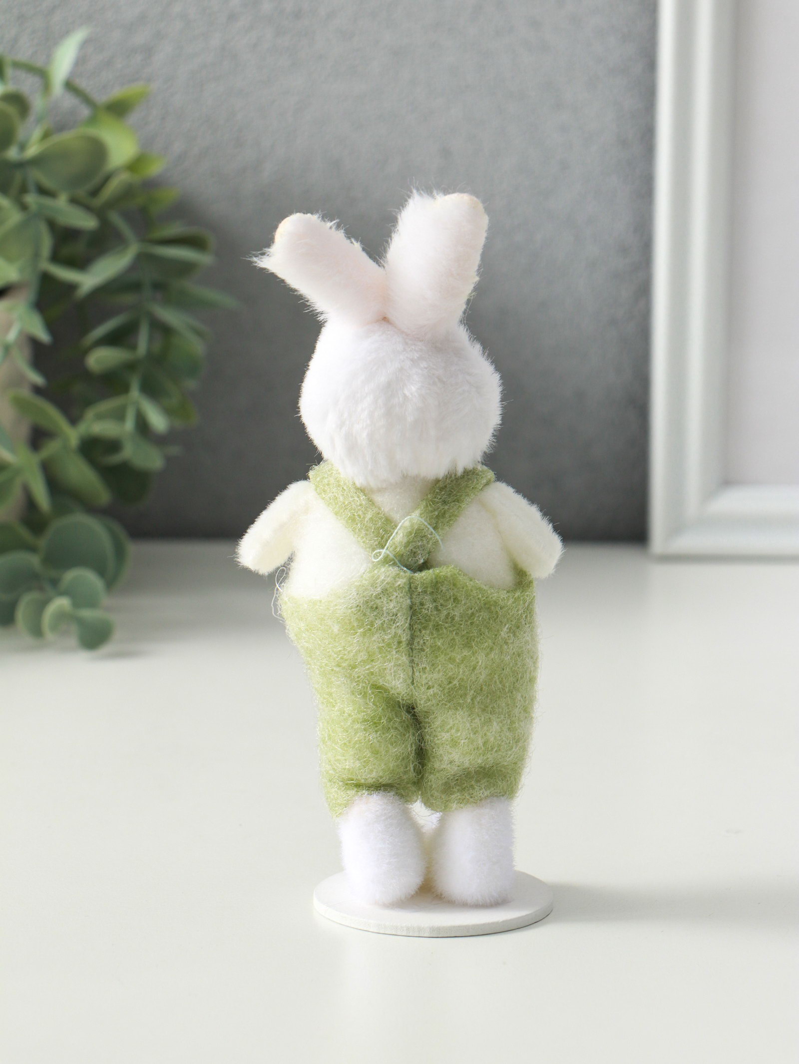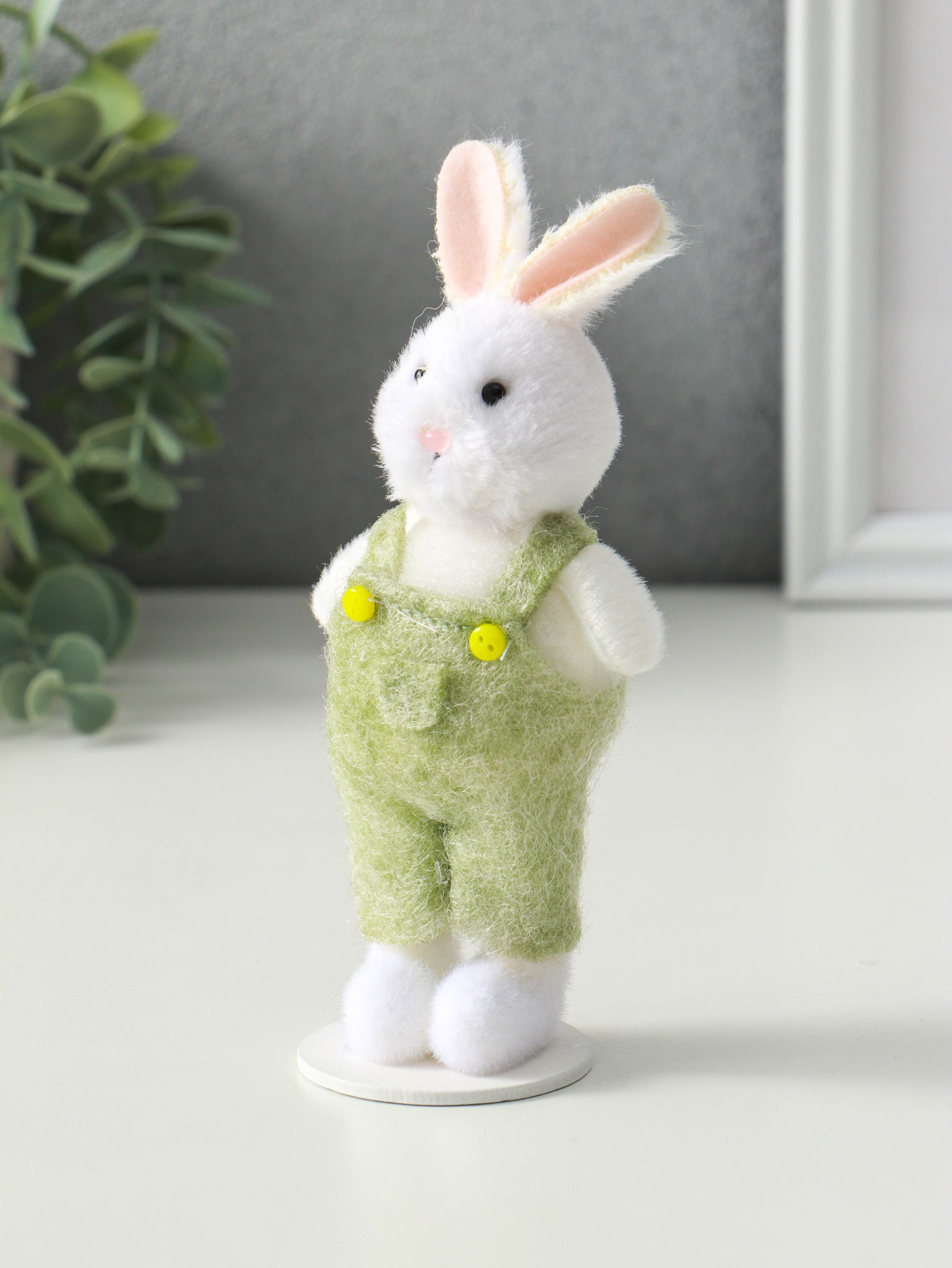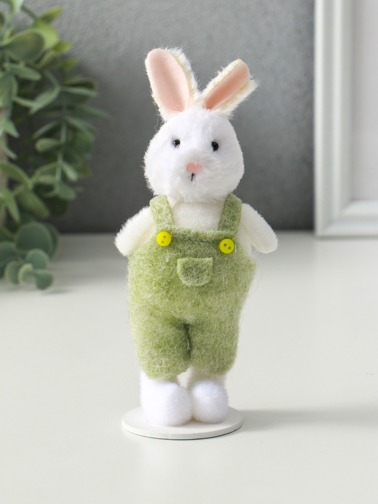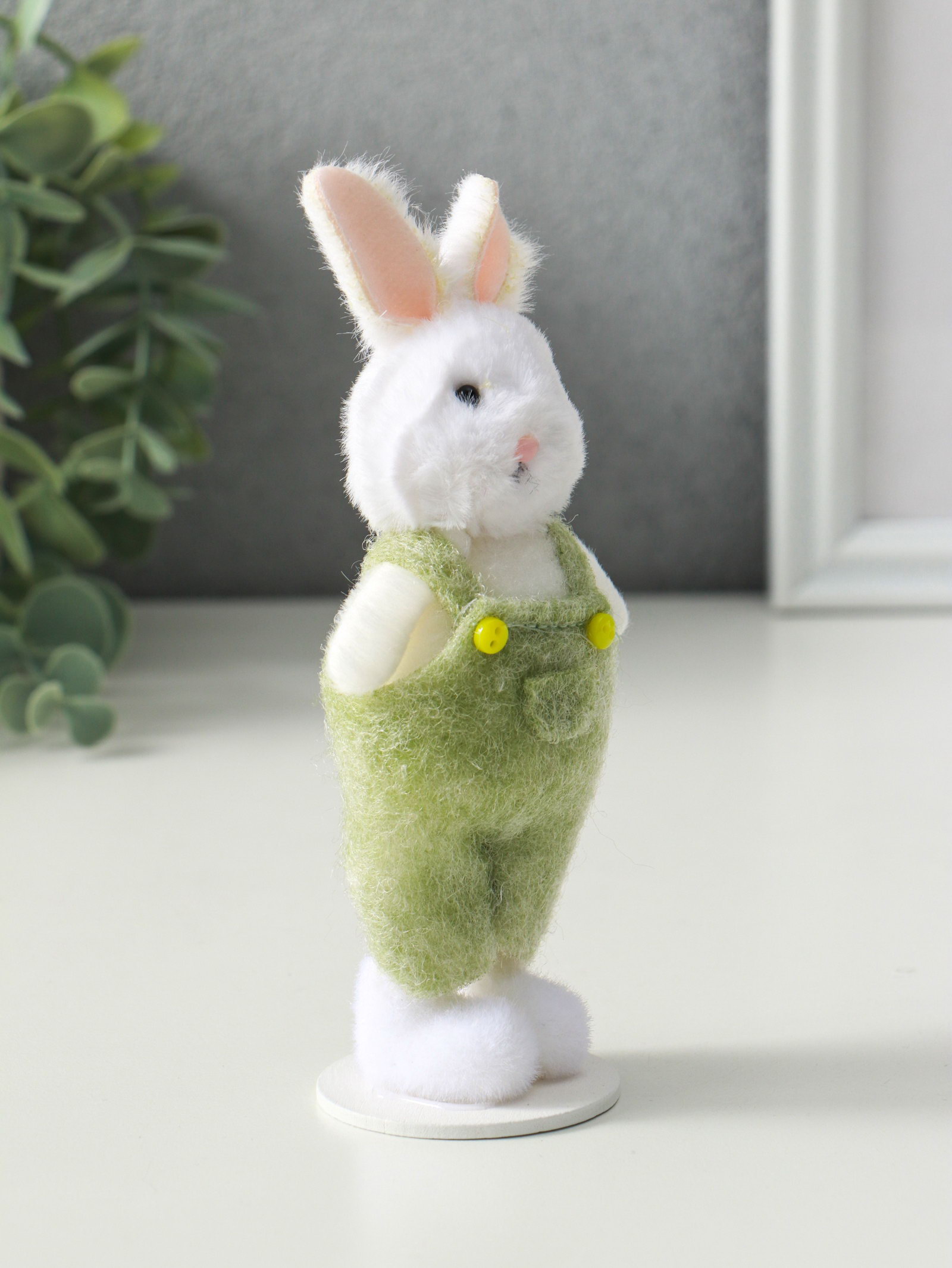 Фигурка "Белый зайчик в зелёном комбинезоне", 4x6x15 см, 6x4x15 см., Китай