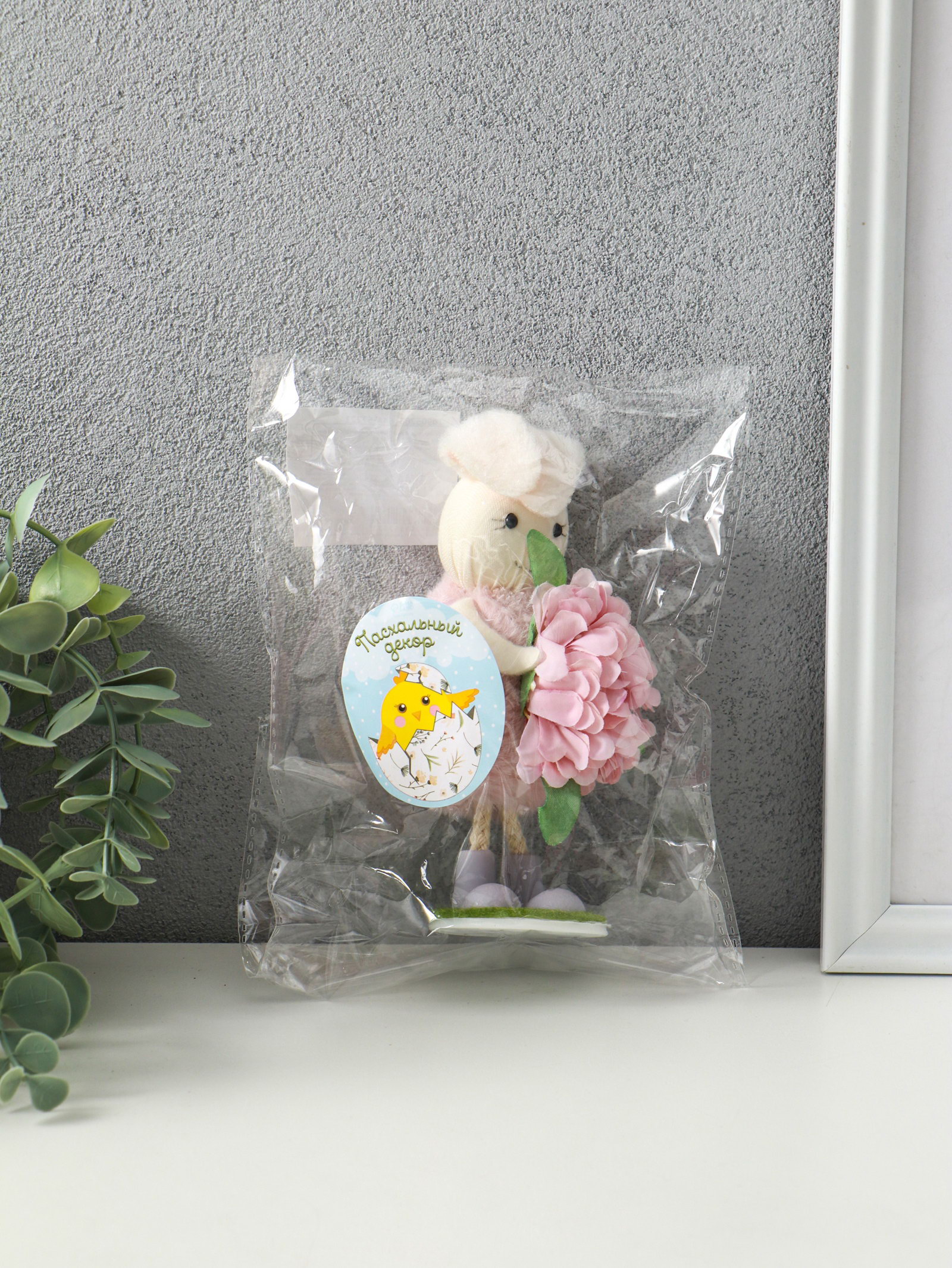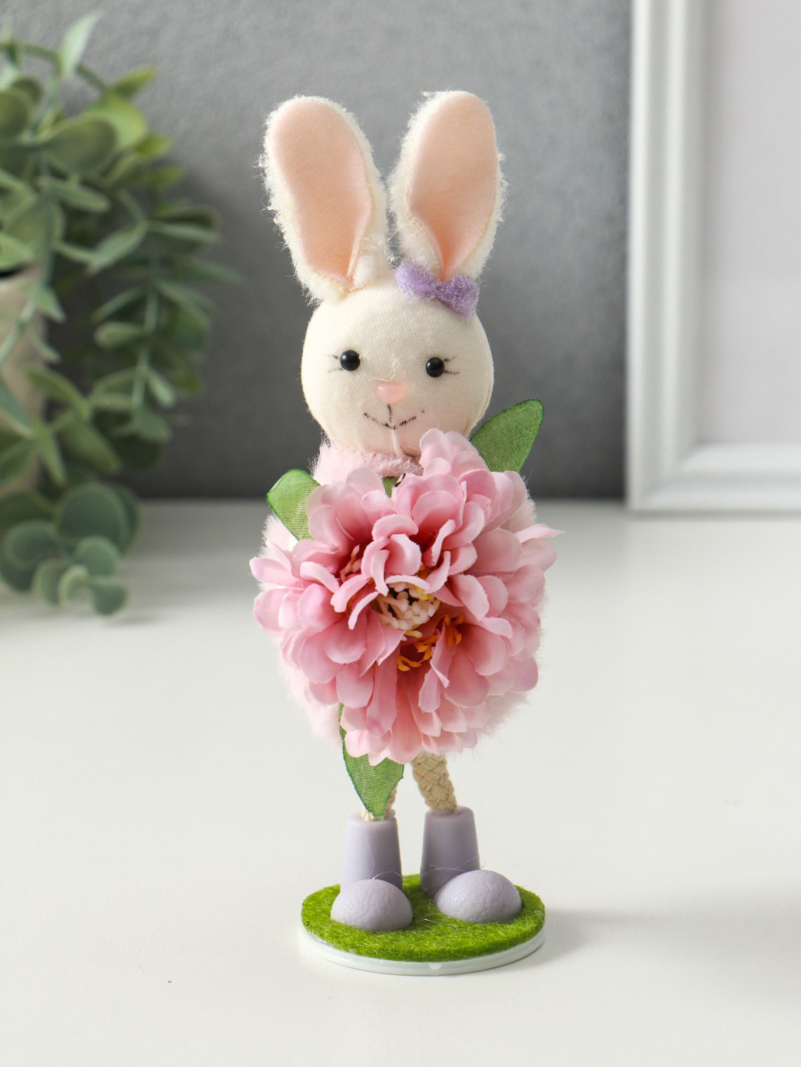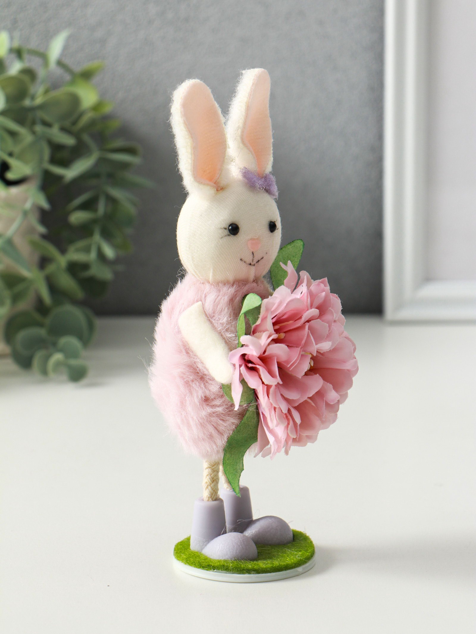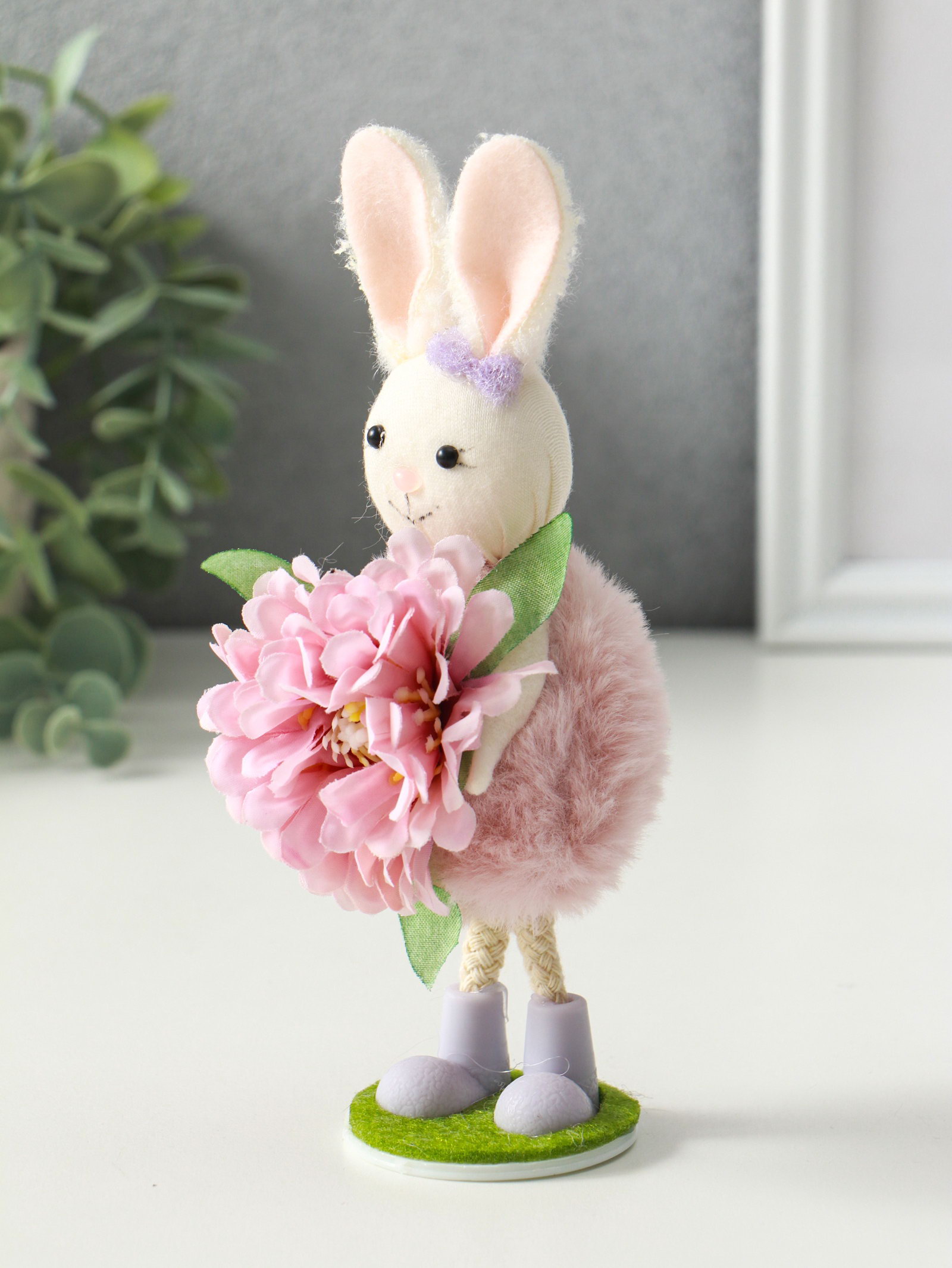 Фигурка пасхальная "Зайка в платьице с бутоном пиона в лапках", 5.5x5x19 см, 5x5.5x19 см., Китай
