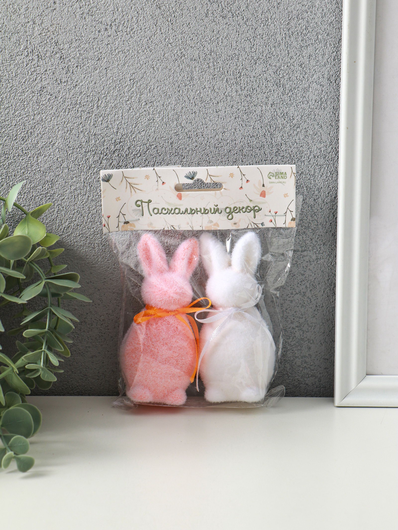 Набор фигурок пасхальных "Два кролика с бантиками", 2 шт., 4x4.5x10.5 см, 4.5x4x10.5 см., Китай