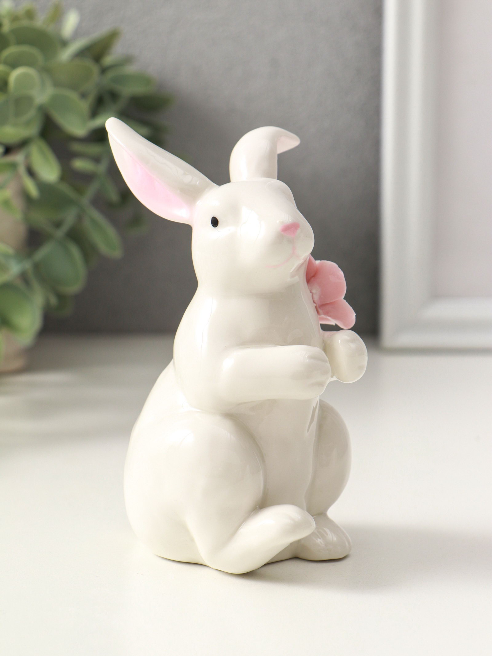 Фигурка керамика "Зайка с цветком", белый, 4.5x8x11.8 см, 8x4.5x11.8 см., Китай