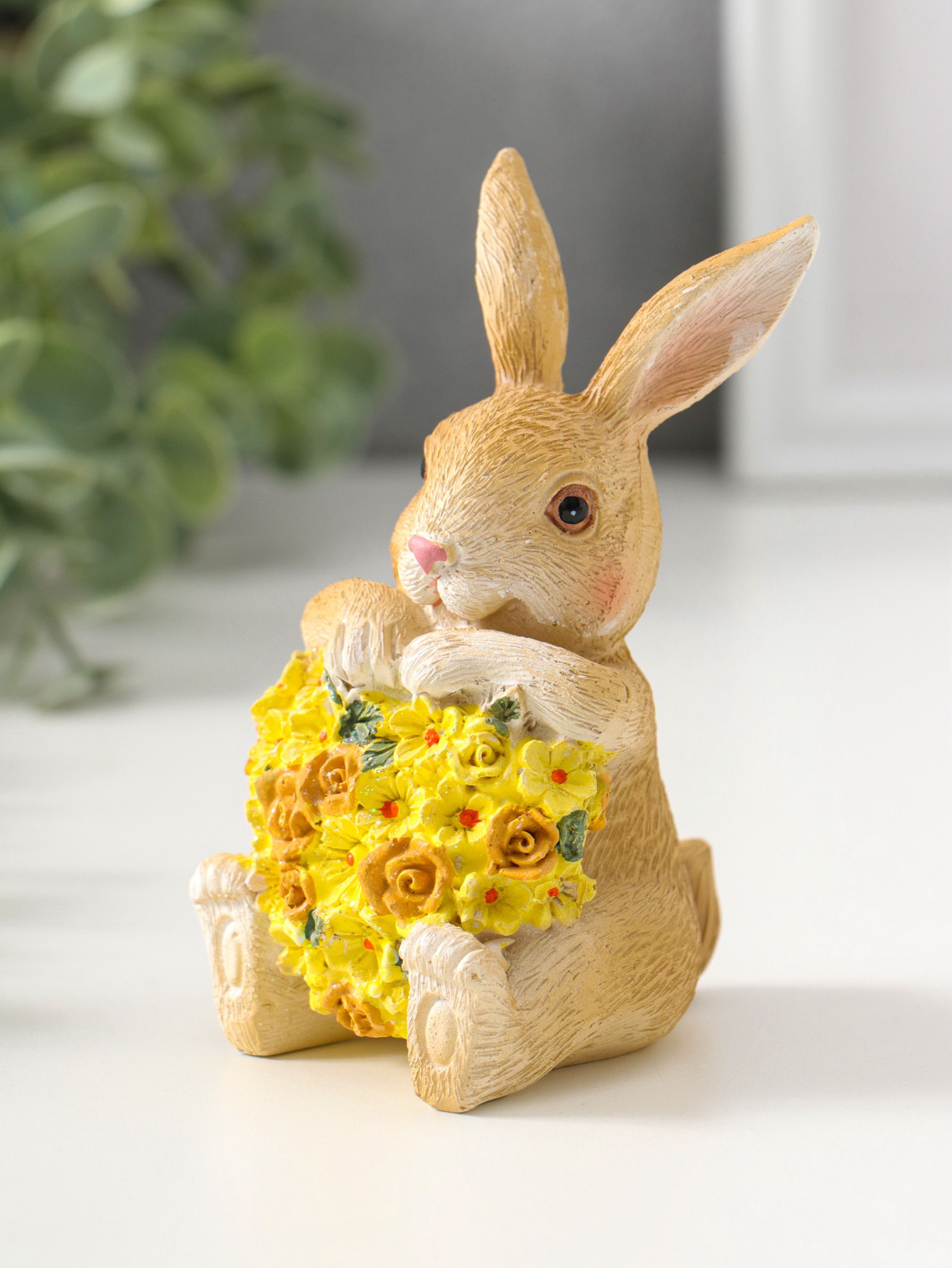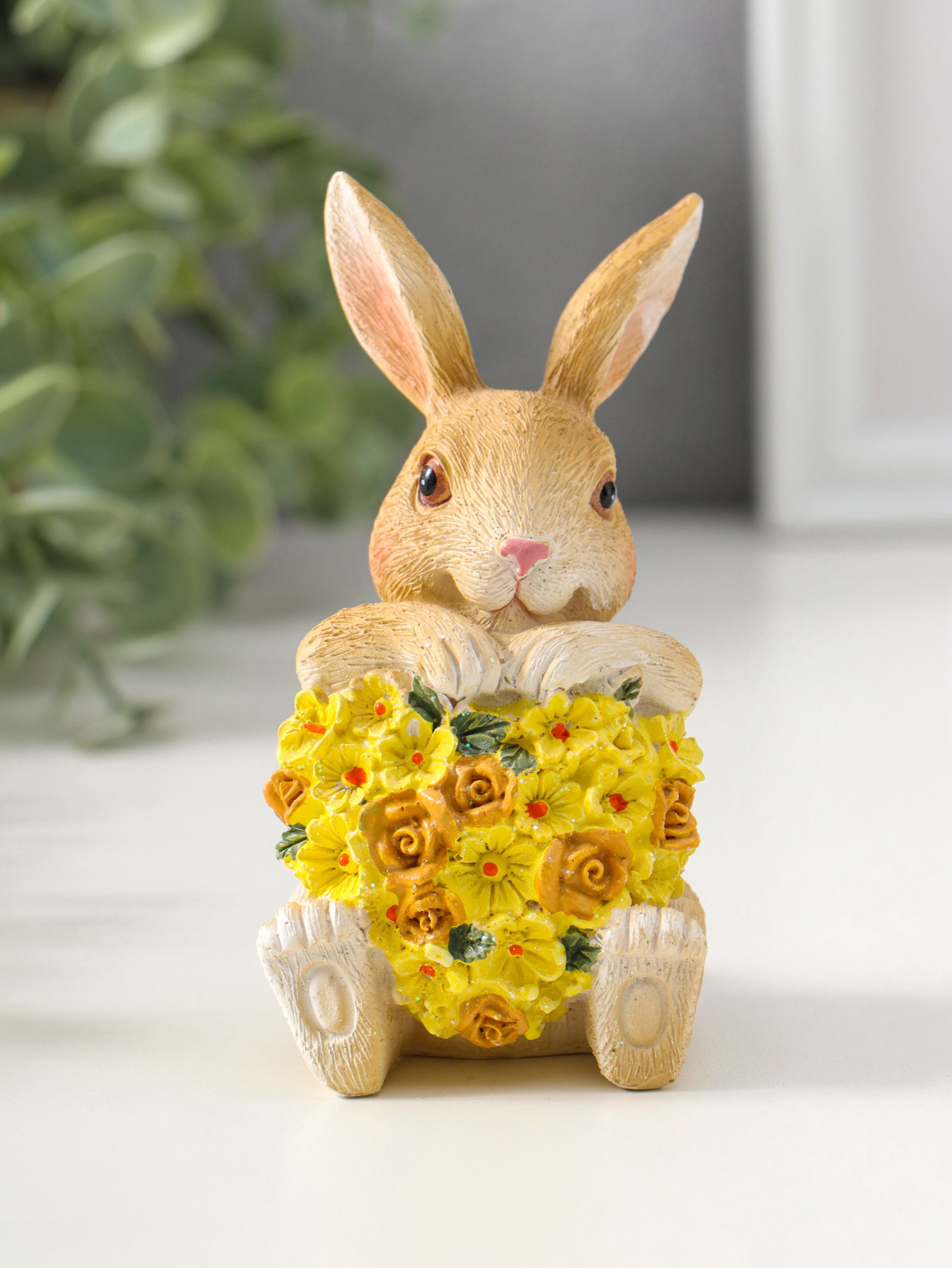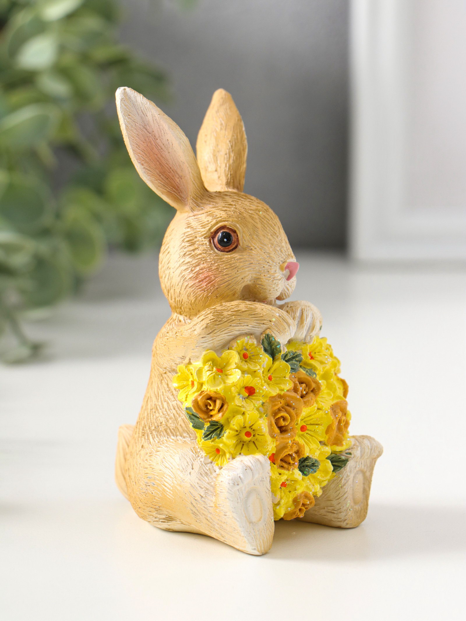 Фигурка полистоун "Зайчик с жёлтым цветочным сердцем", 11.5 см, 6x6.5x11.5 см., Китай