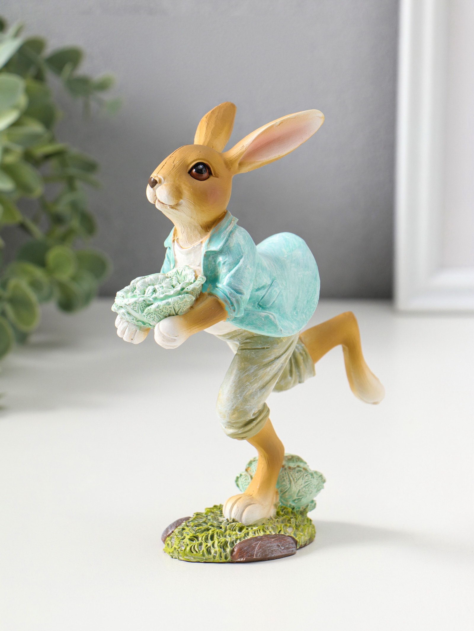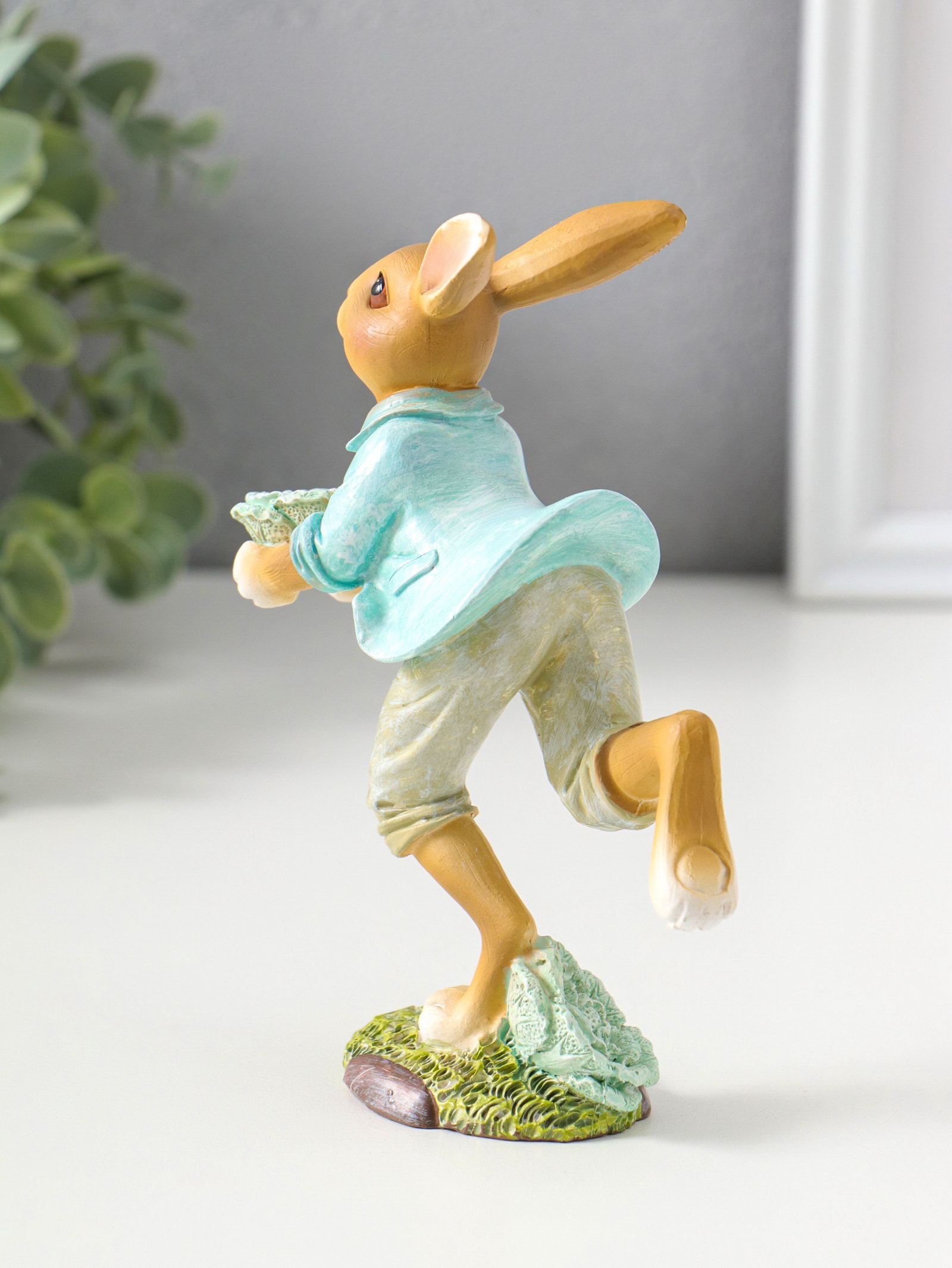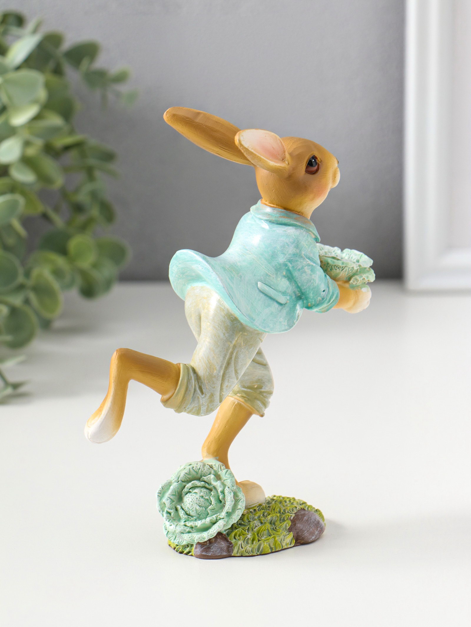 Фигурка полистоун "Зайчик в голубом пиджаке с декоративной капустой", 15 см, 6x11.5x15 см., Китай
