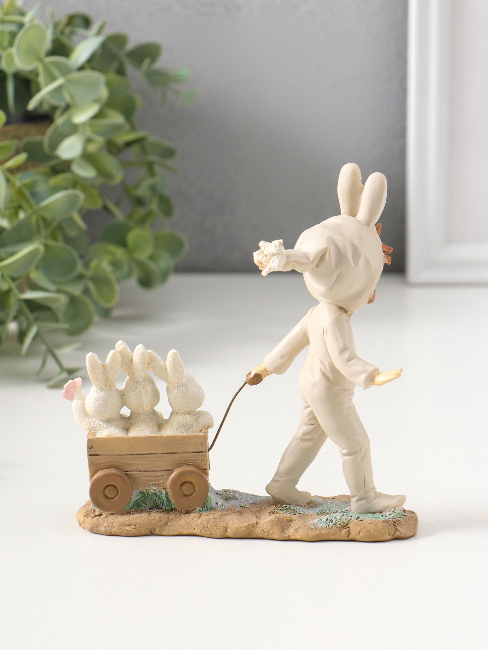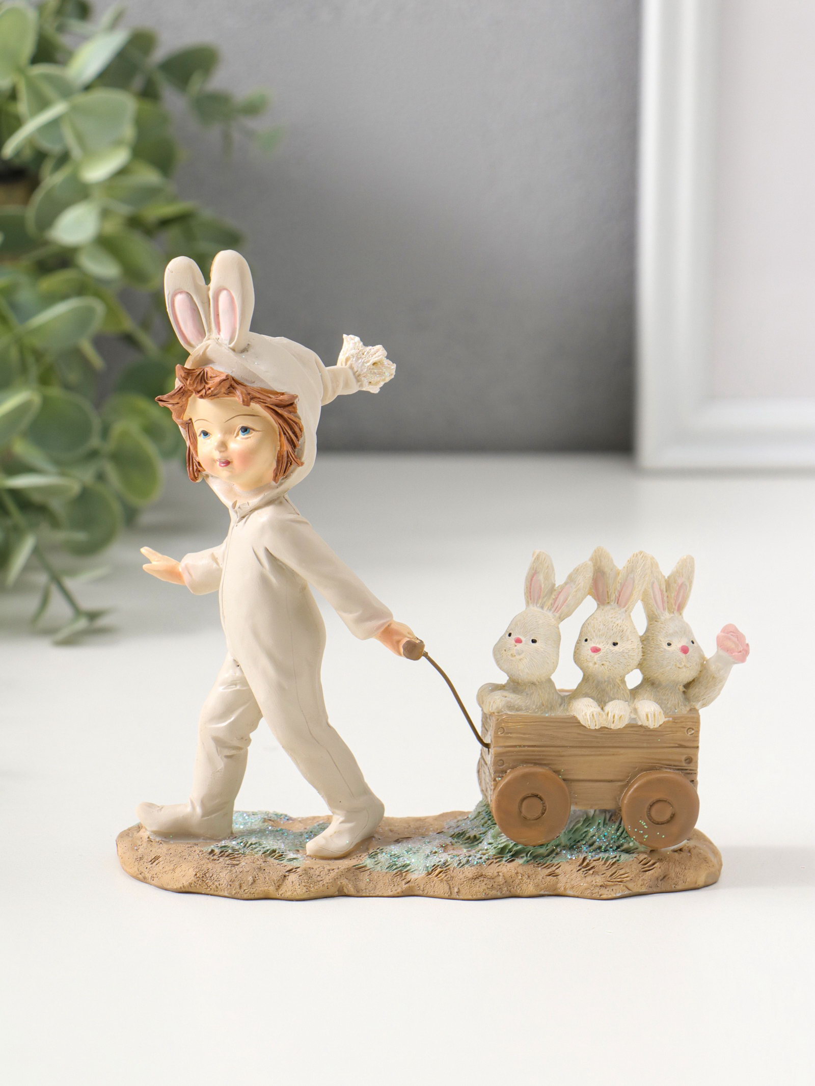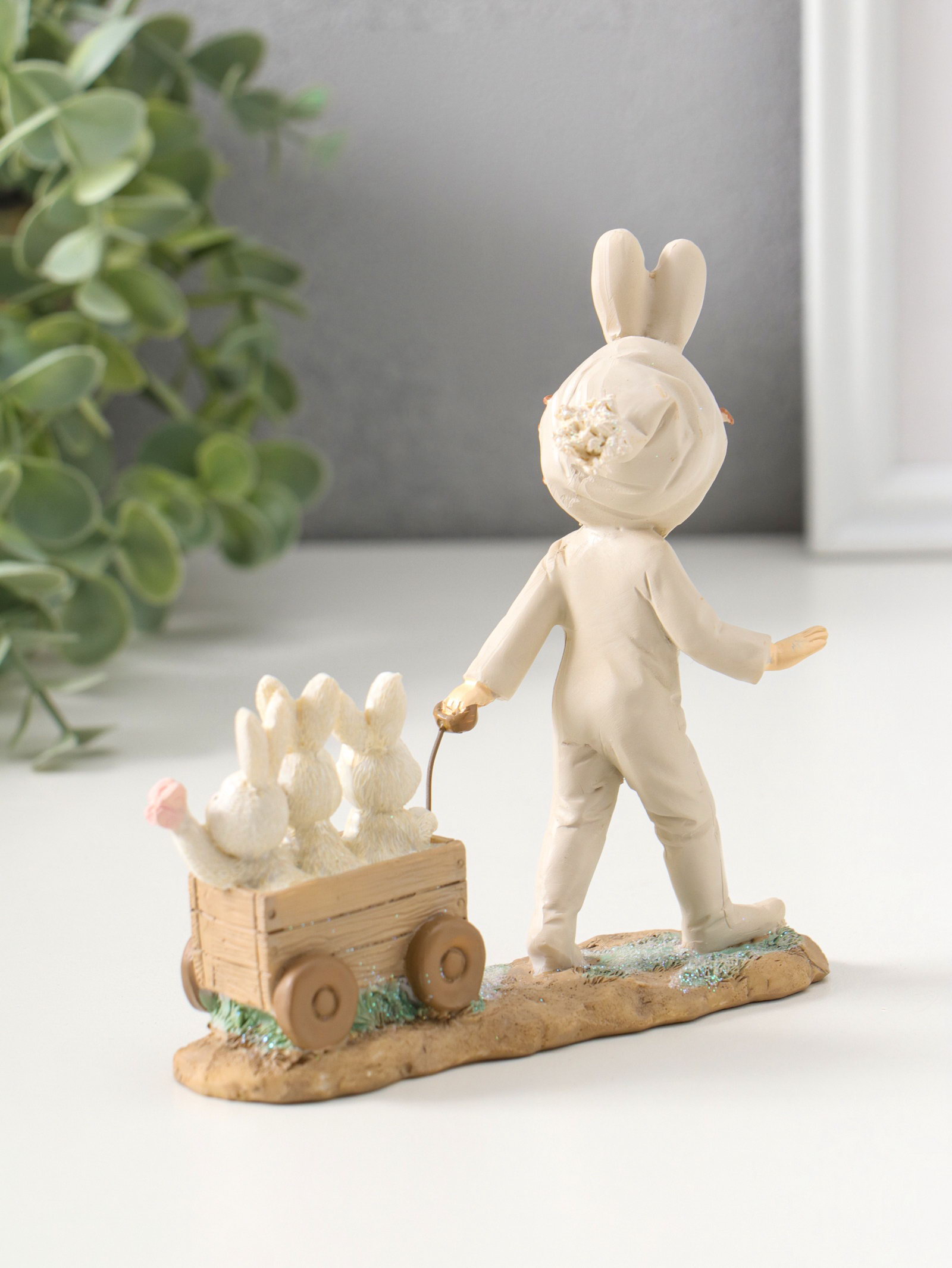 Фигурка полистоун "Девочка в комбинезоне с заячьими ушами, везет тележку с зайцами", 13.5 см, 4.5x13.5x13.5 см., Китай
