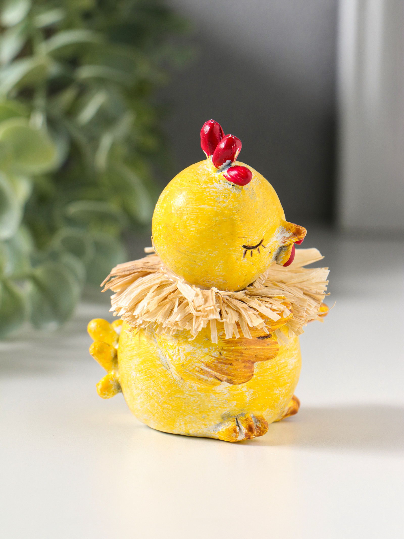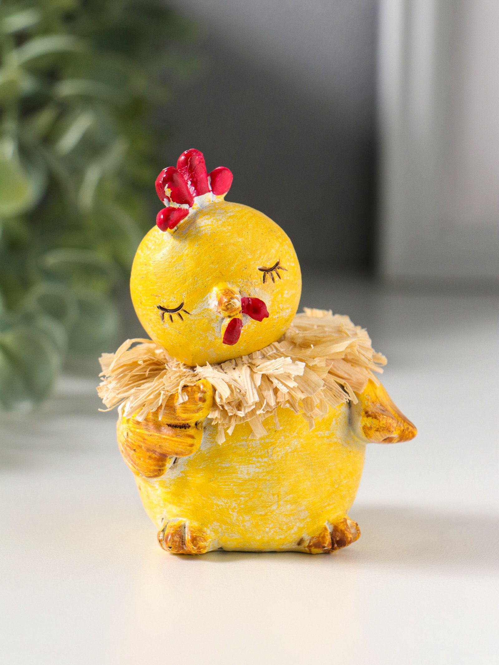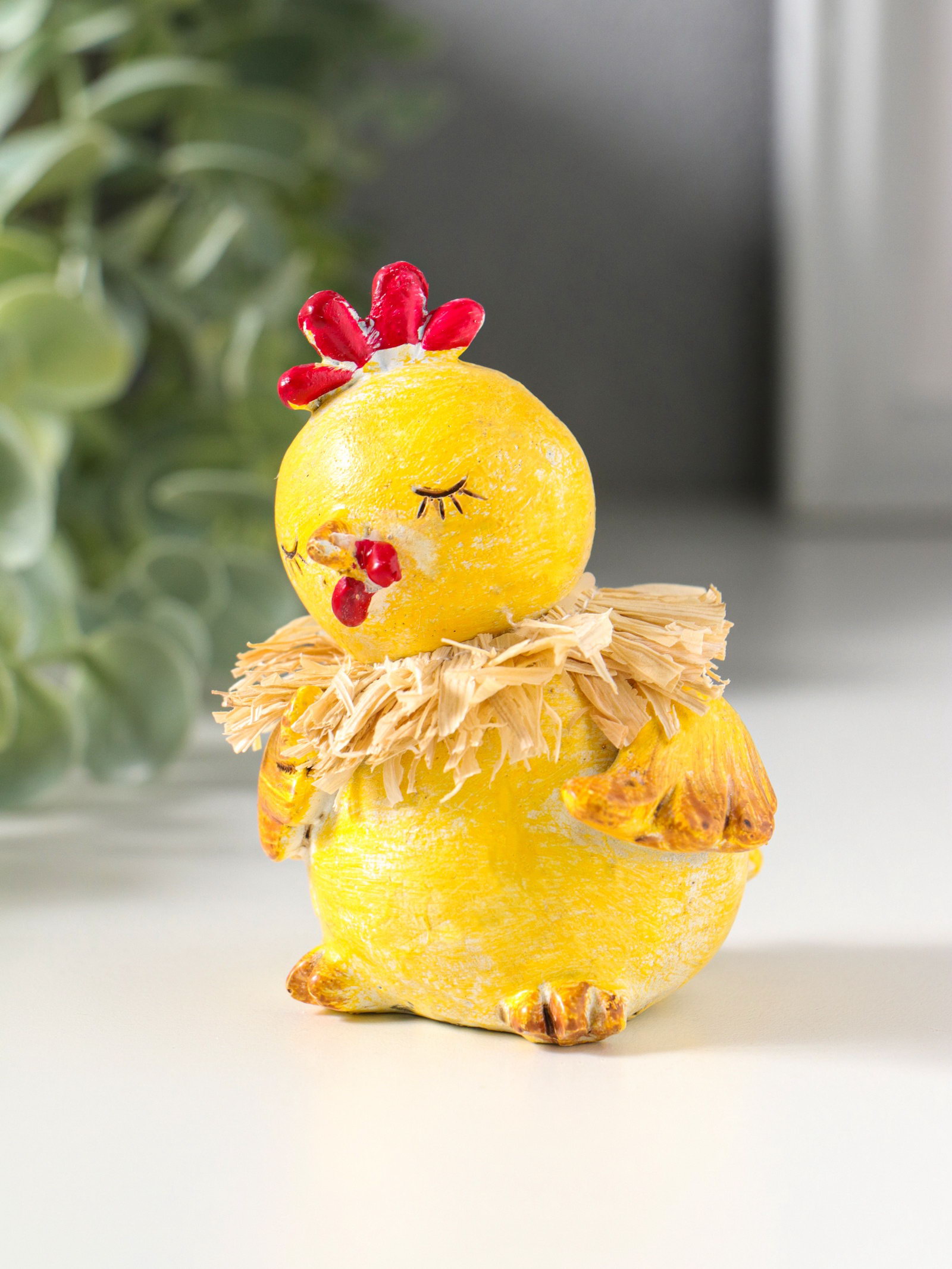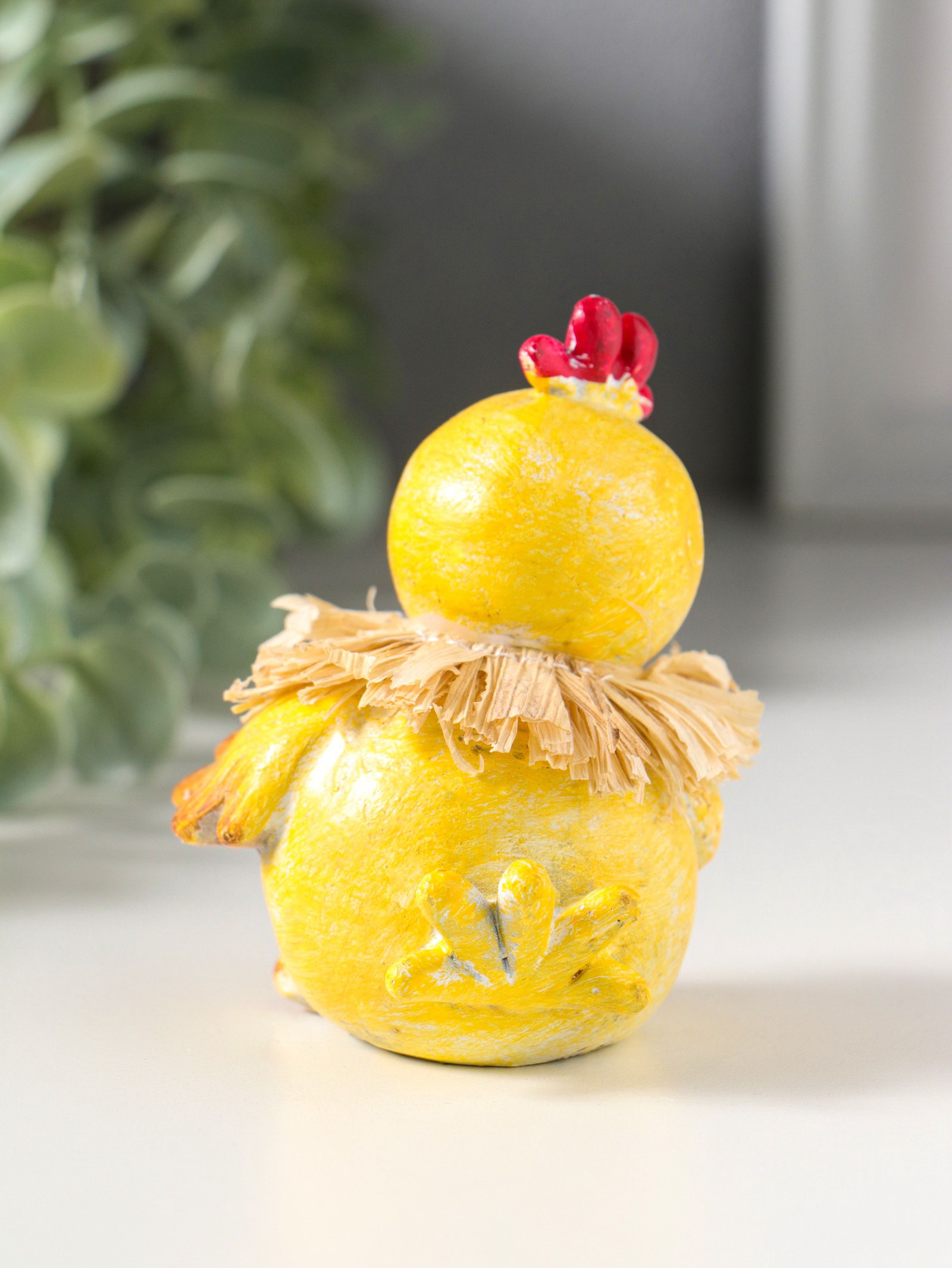 Фигурка полистоун "Жёлтый цыплёнок с соломенным венком", 7x7x8 см, 7x7x8 см., Китай