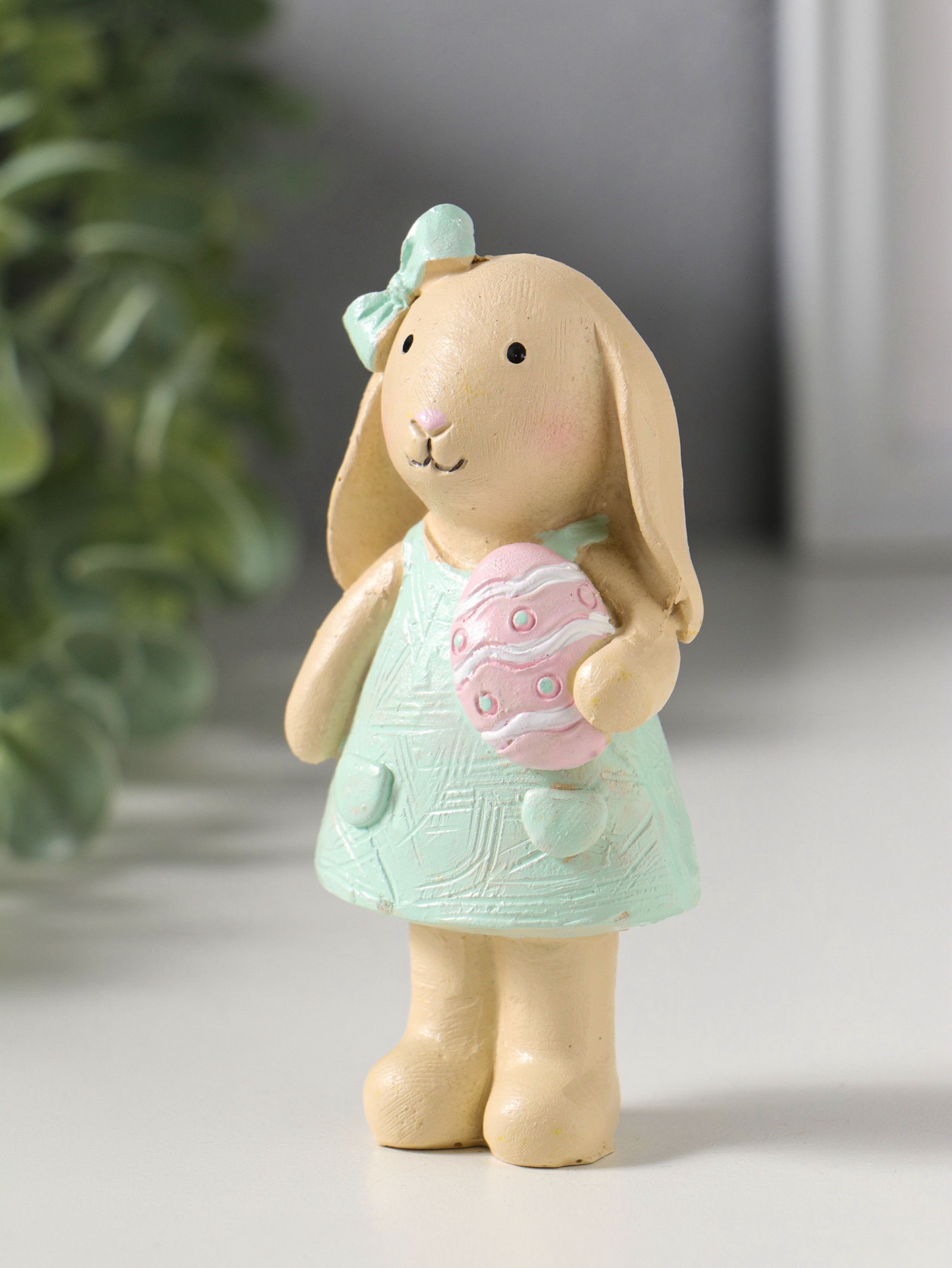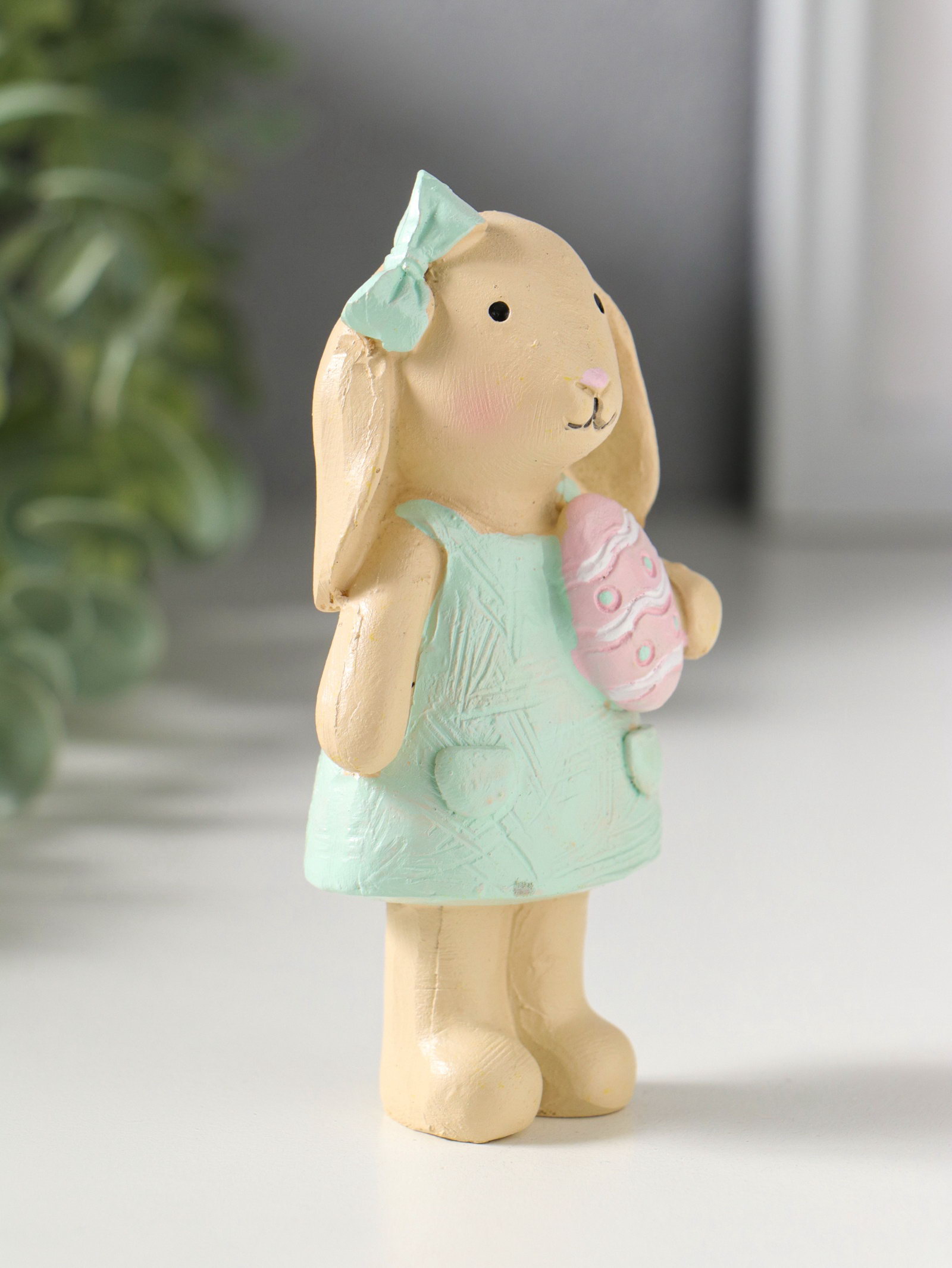 Фигурка полистоун "Зайка в платьице, с пасхальным яичком", 4.8x2.8x10 см, 2.8x4.8x10 см., Китай