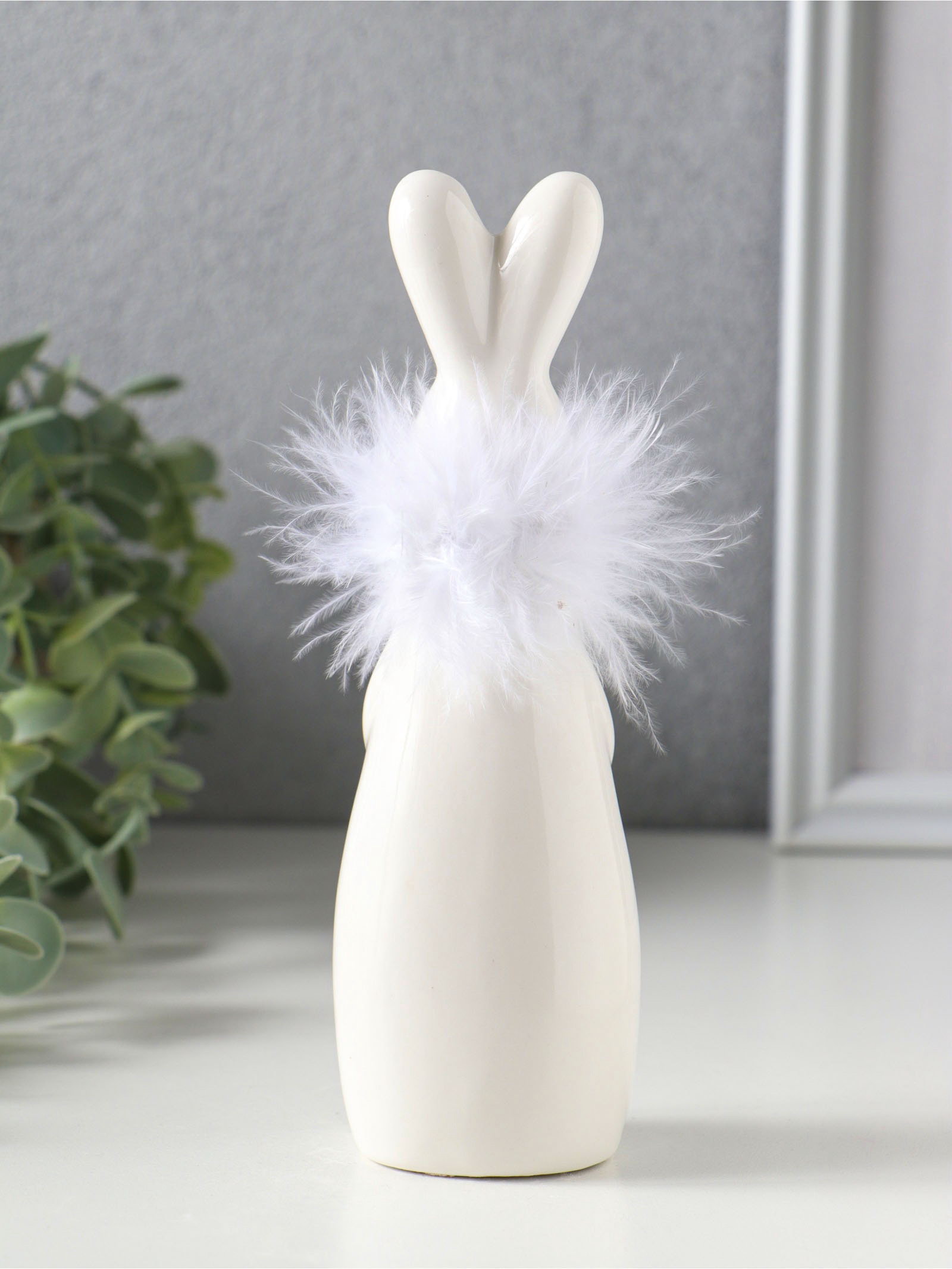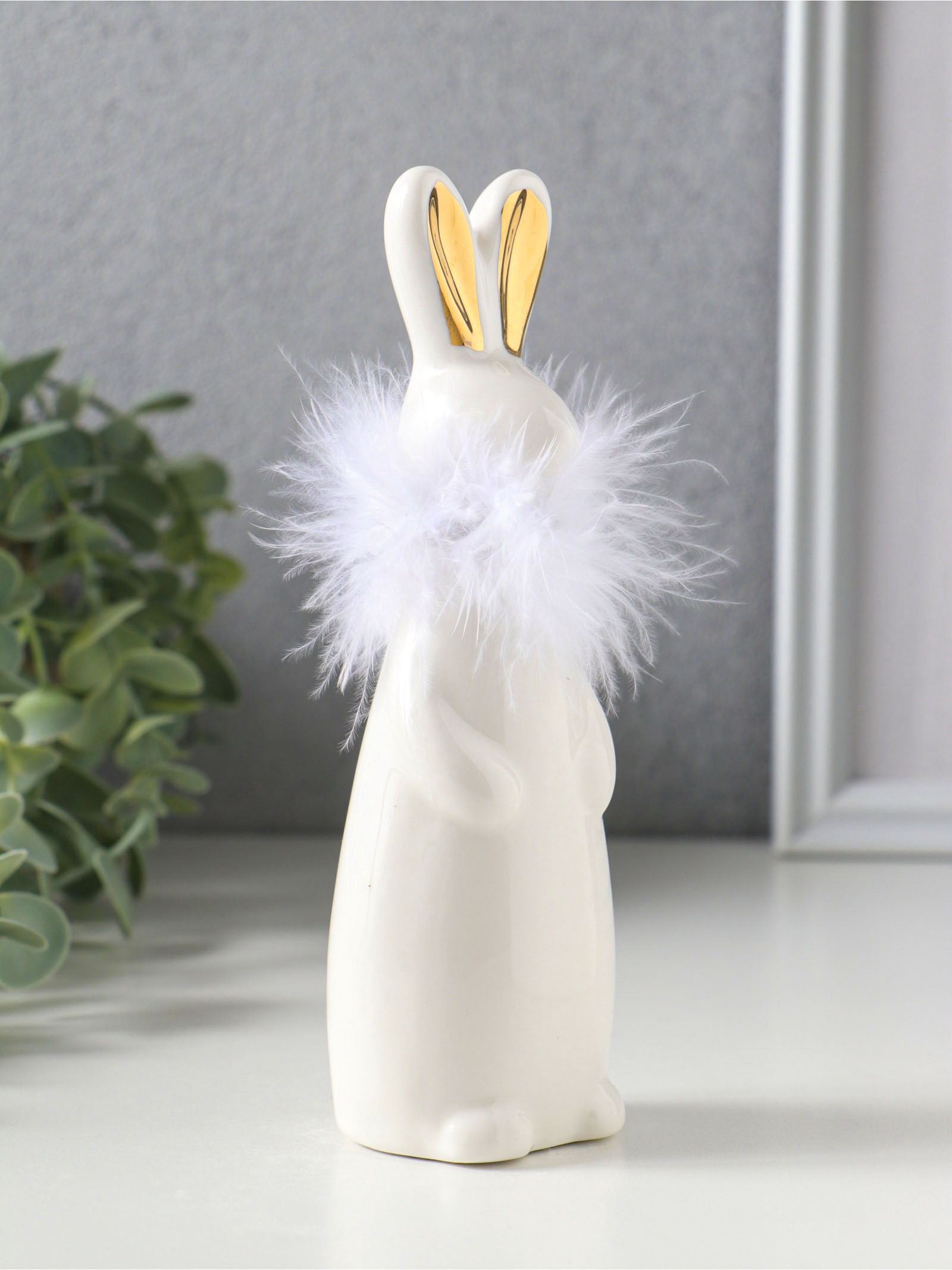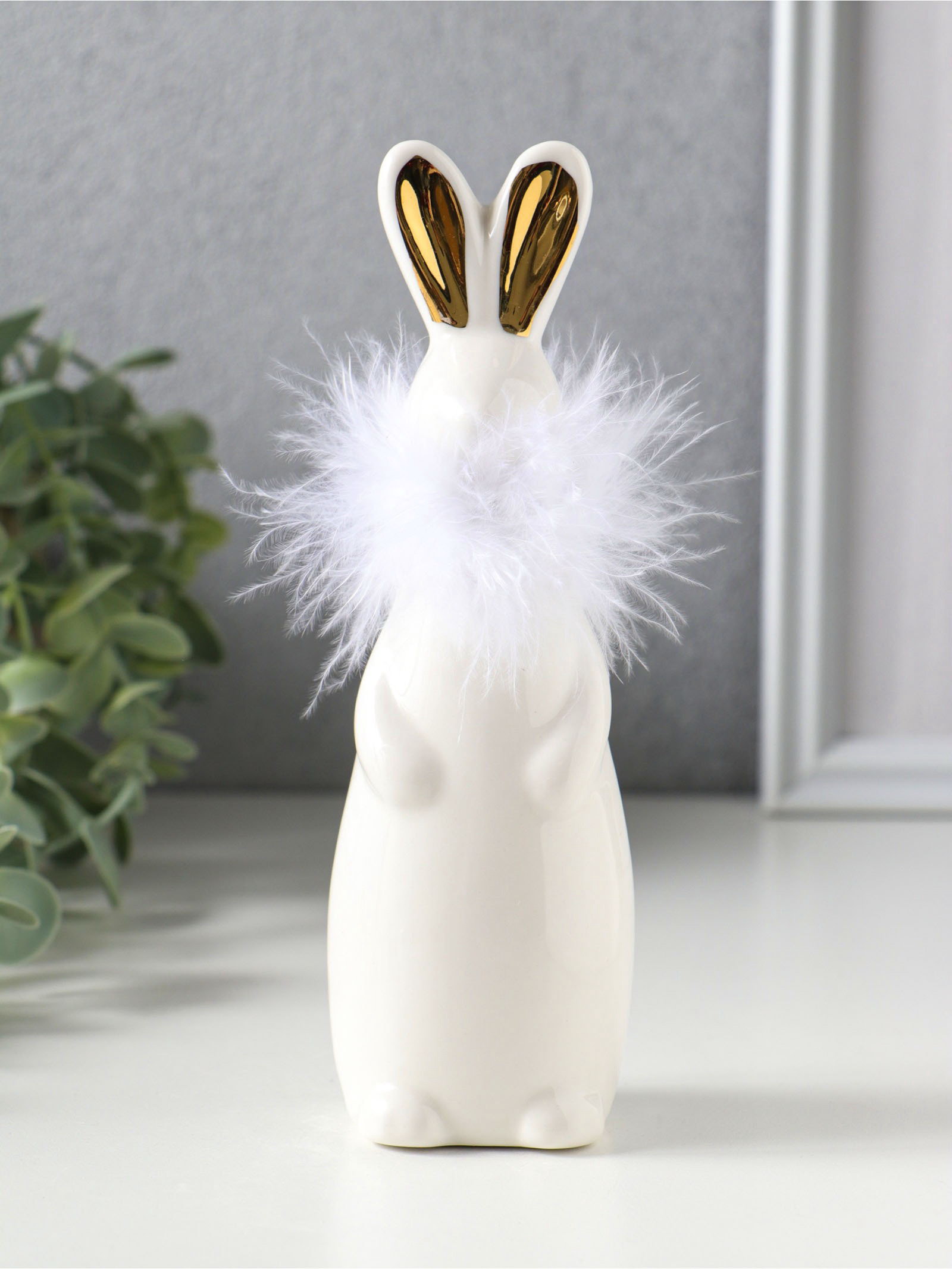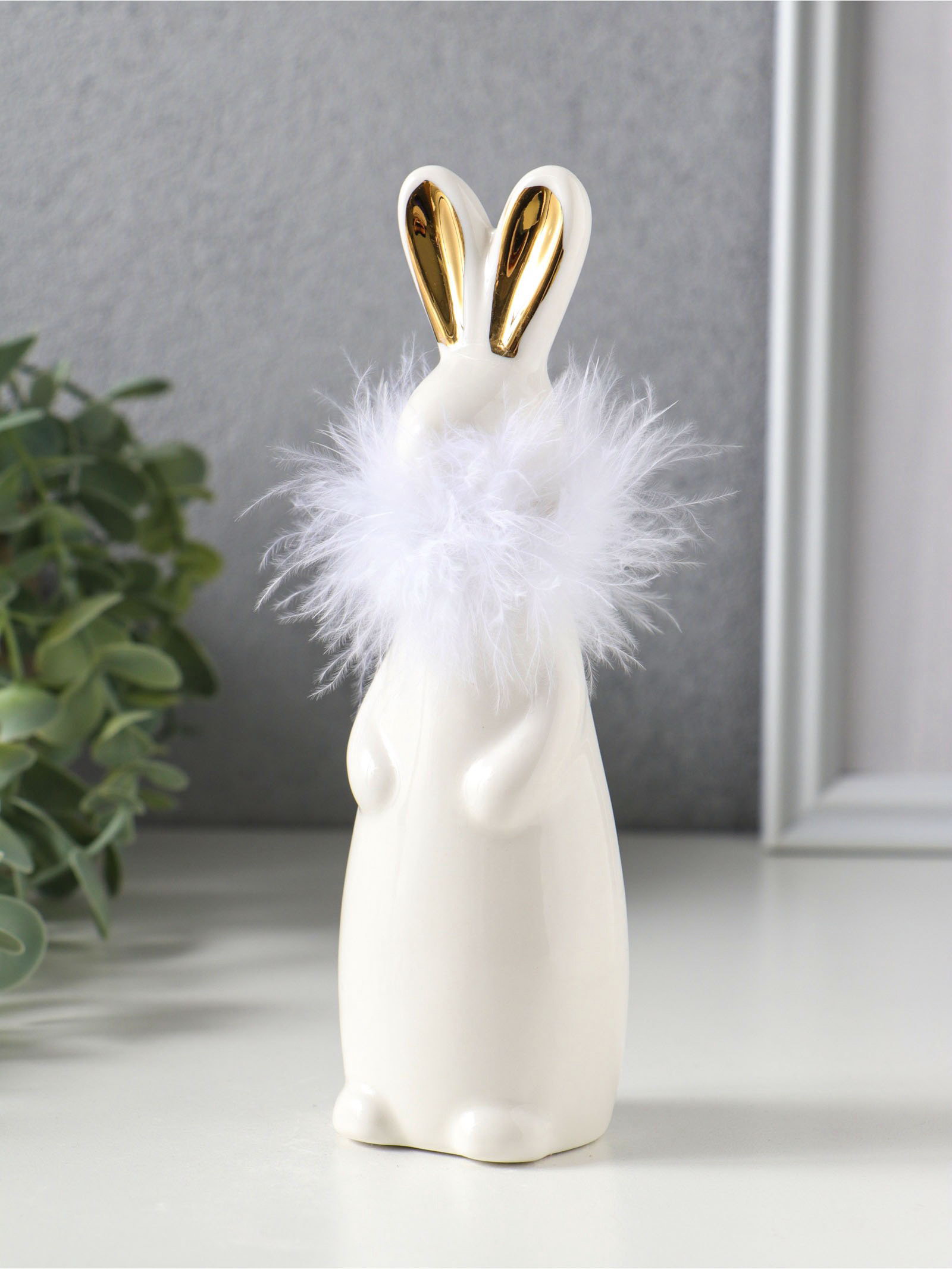 Фигурка керамика "Белый зайка с ожерельем из пуха", 5x4.5x17 см, 5x4.5x17 см., Китай