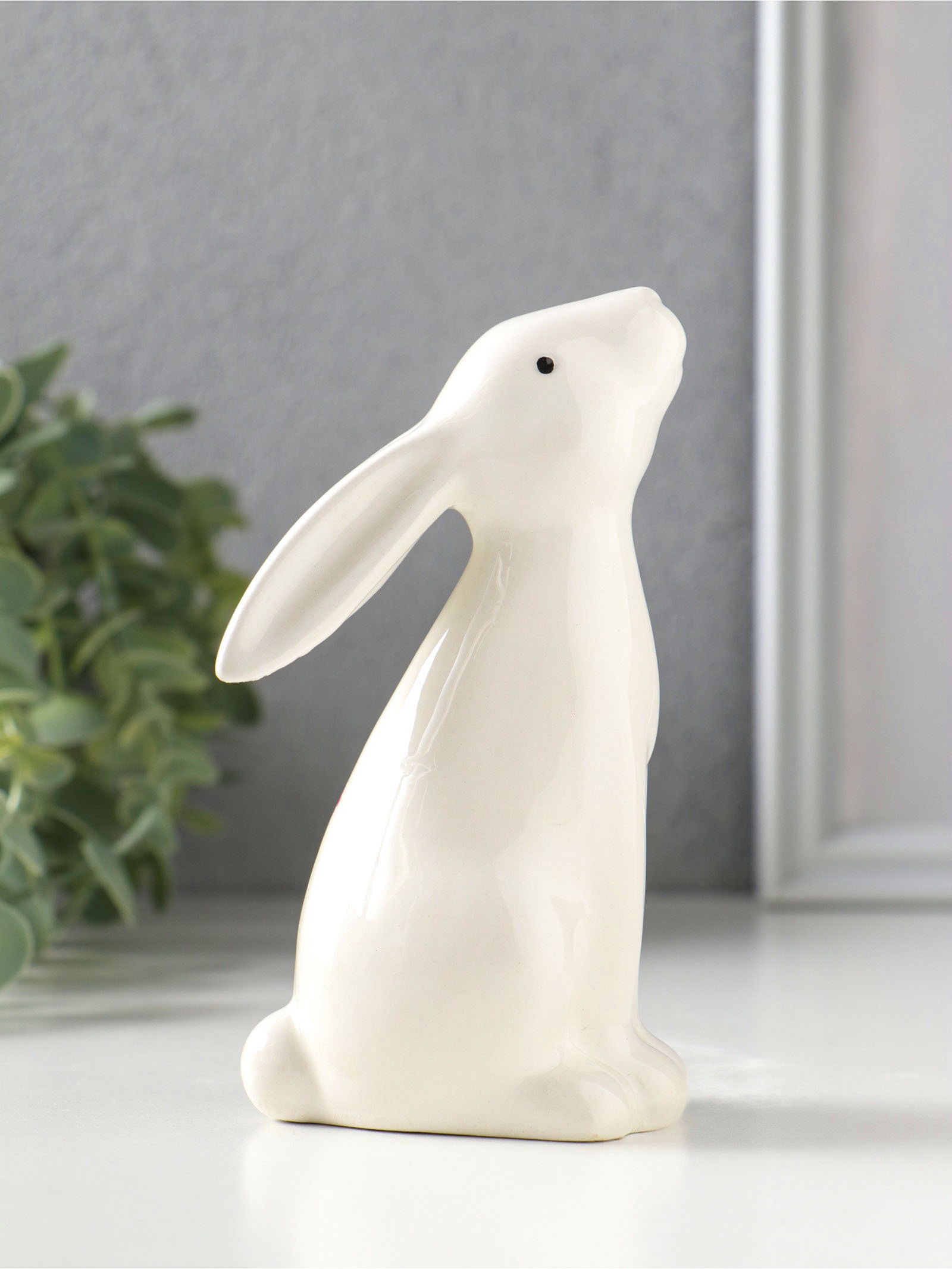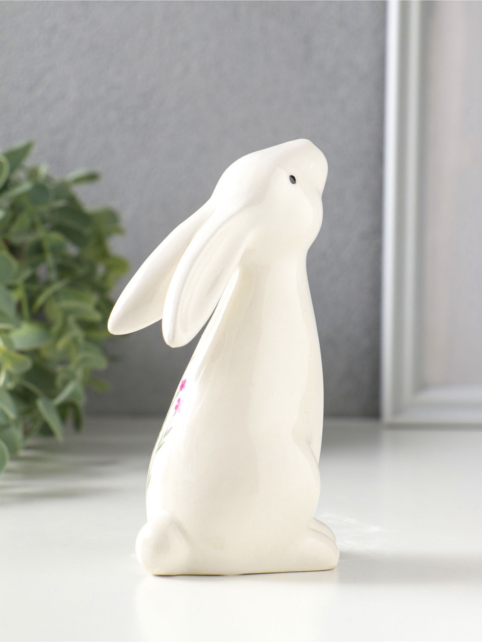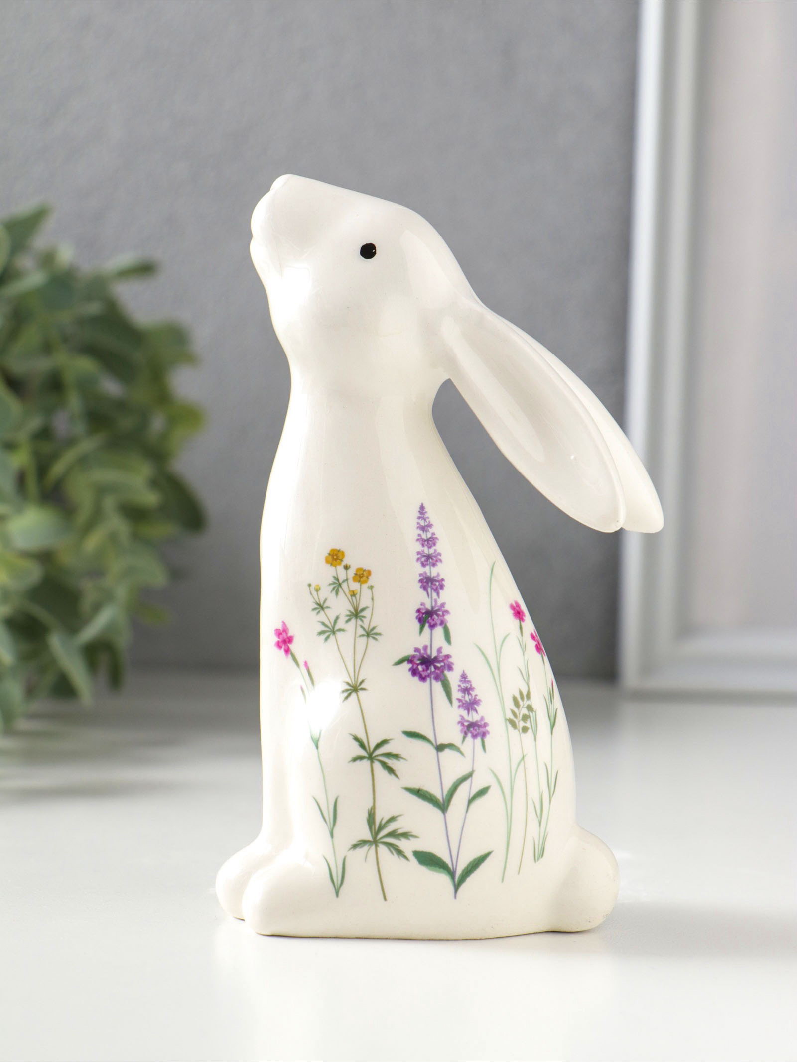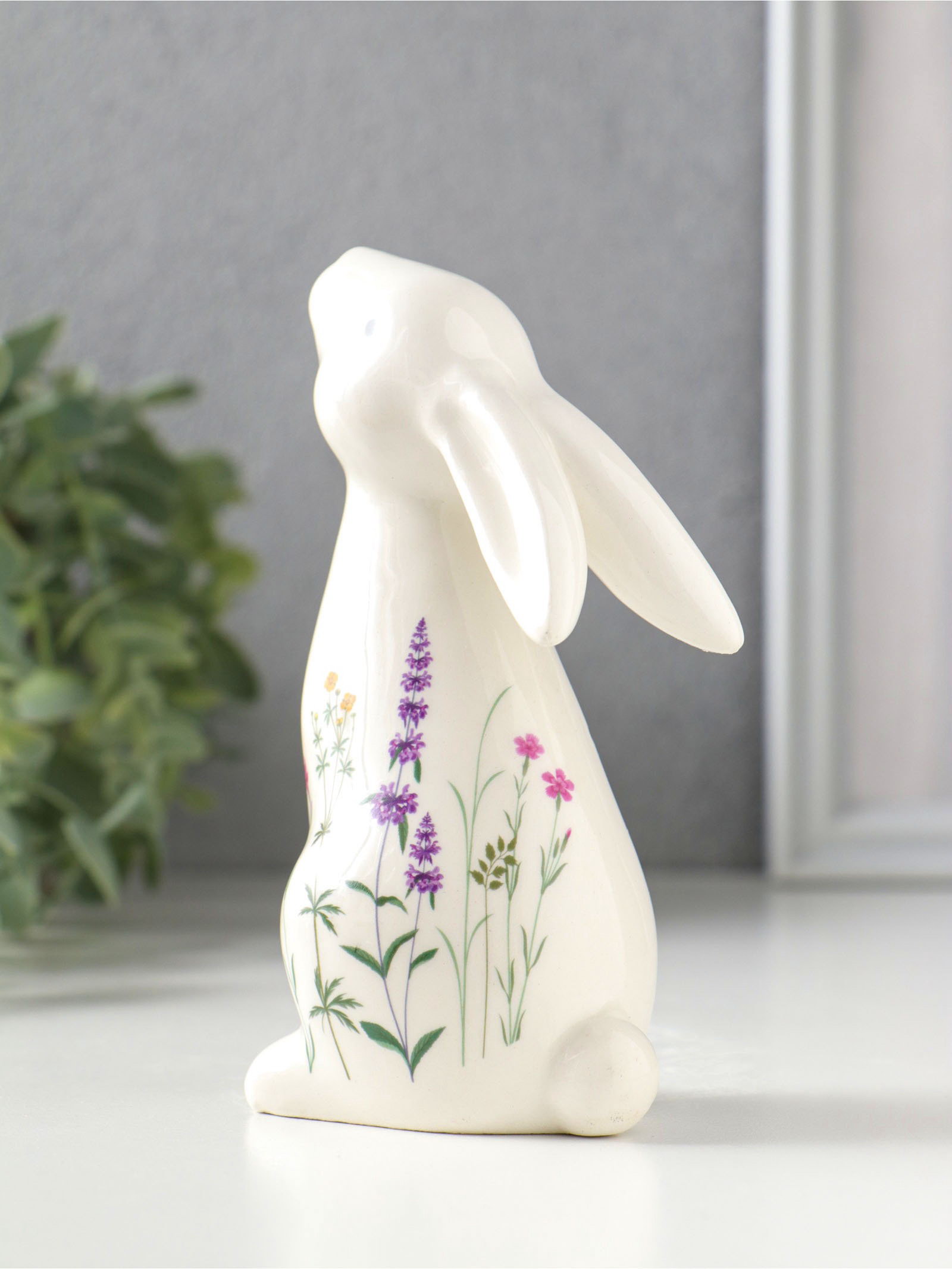 Фигурка керамика "Белый зайка - полевые цветы", 7.3x5.6x12.7 см, 7.3x5.6x12.7 см., Китай