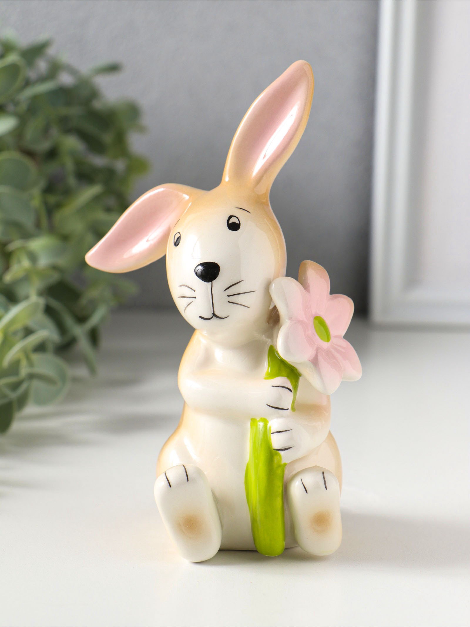 Фигурка керамика "Зайчик с розовой ромашкой", 7.9x7.3x14 см, 7.9x7.3x14 см., Китай