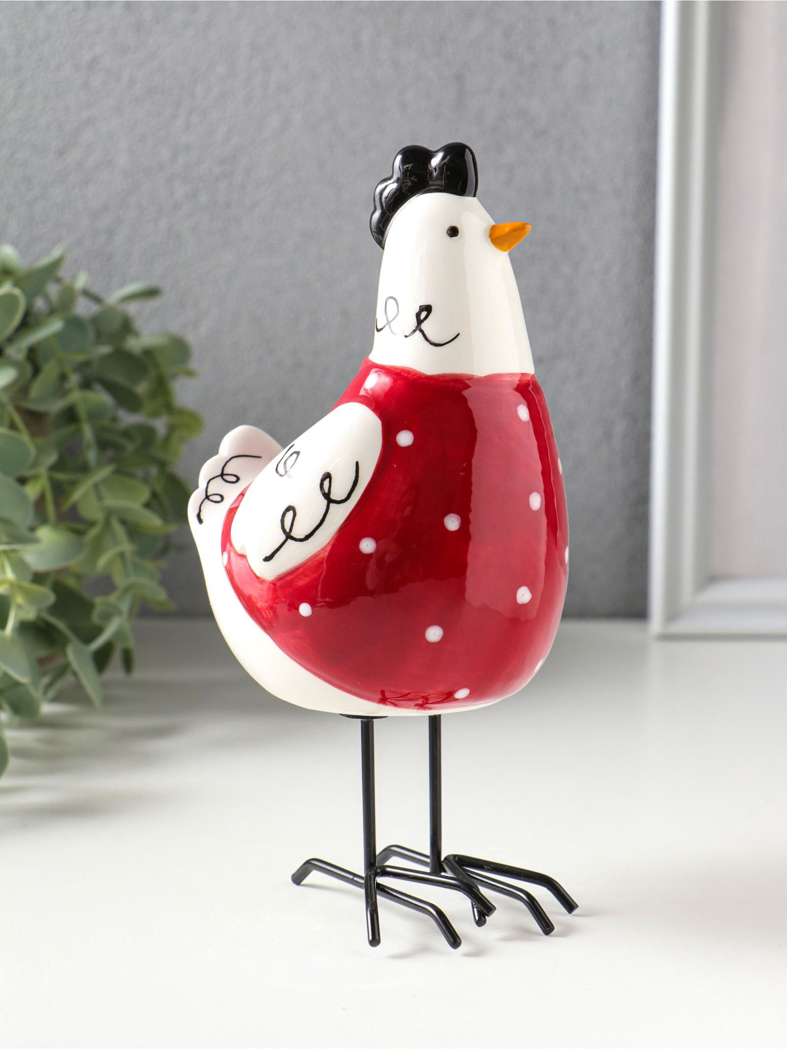 Фигурка керамика "Курочка красная в белый горошек", 9.7x8.2x17.4 см, 9.7x8.2x17.4 см., Китай