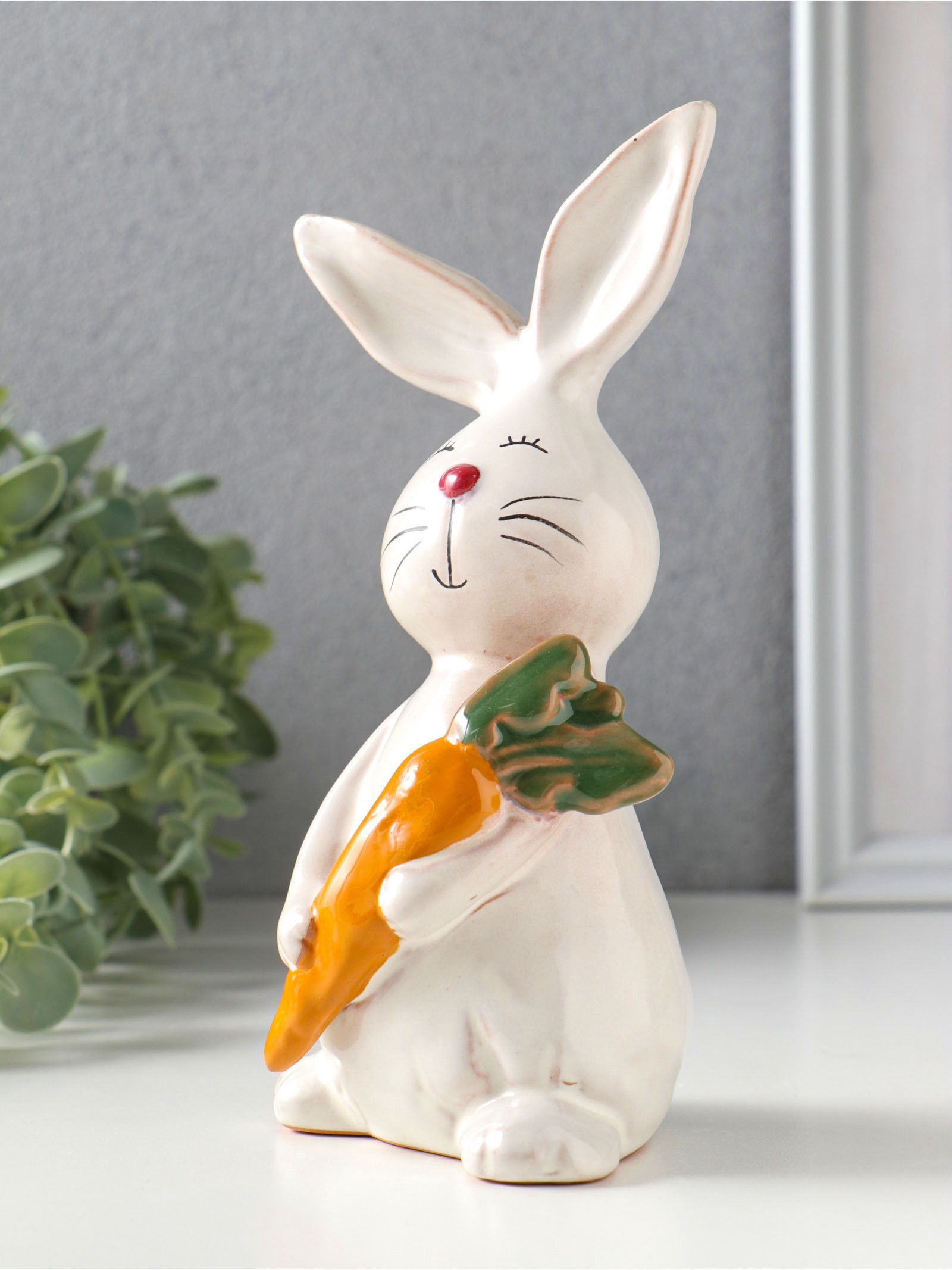 Фигурка керамика "Зайчик с оранжевой морковкой", 9.7x8.5x18.7 см, 9.7x8.5x18.7 см., Китай