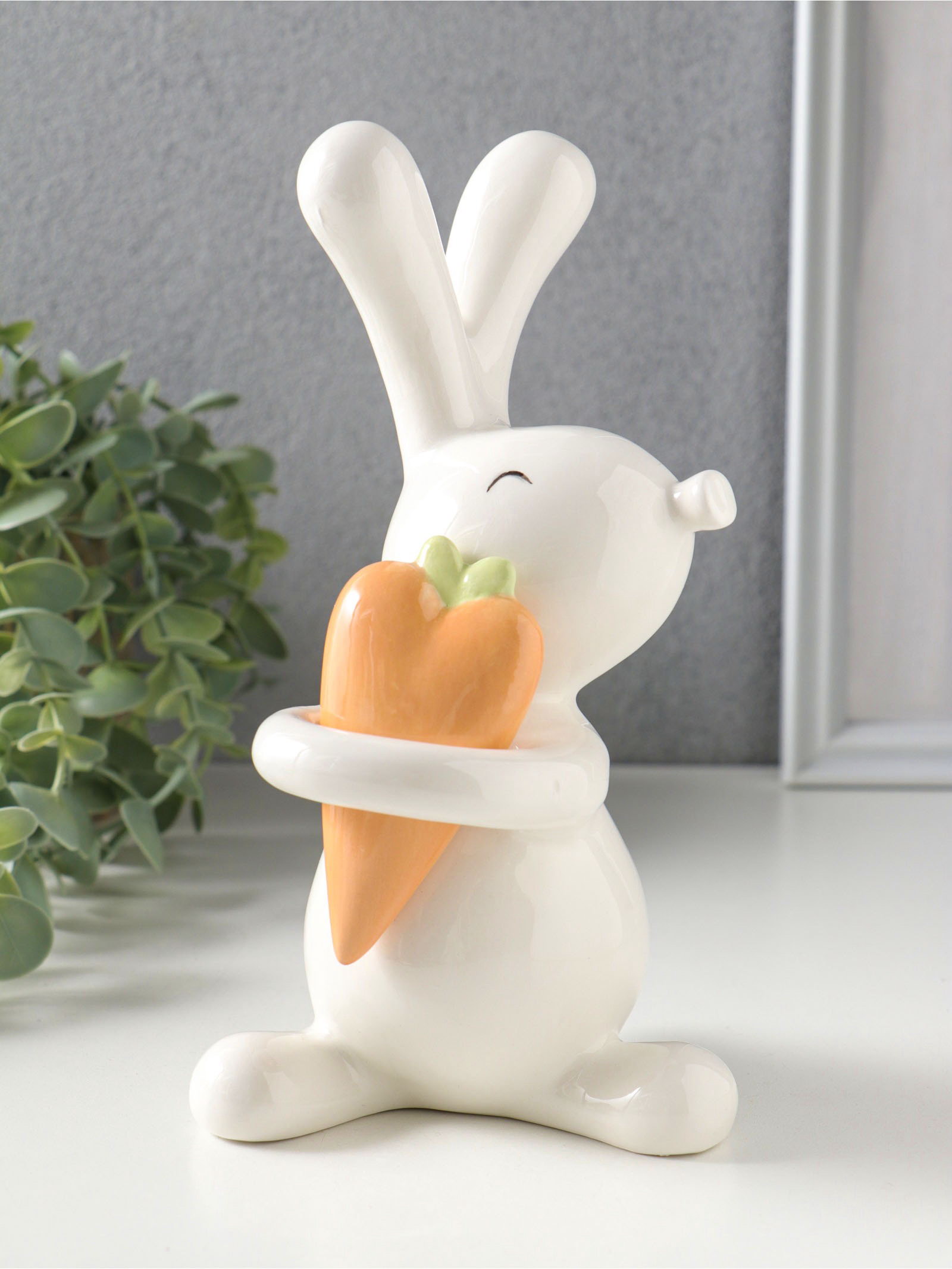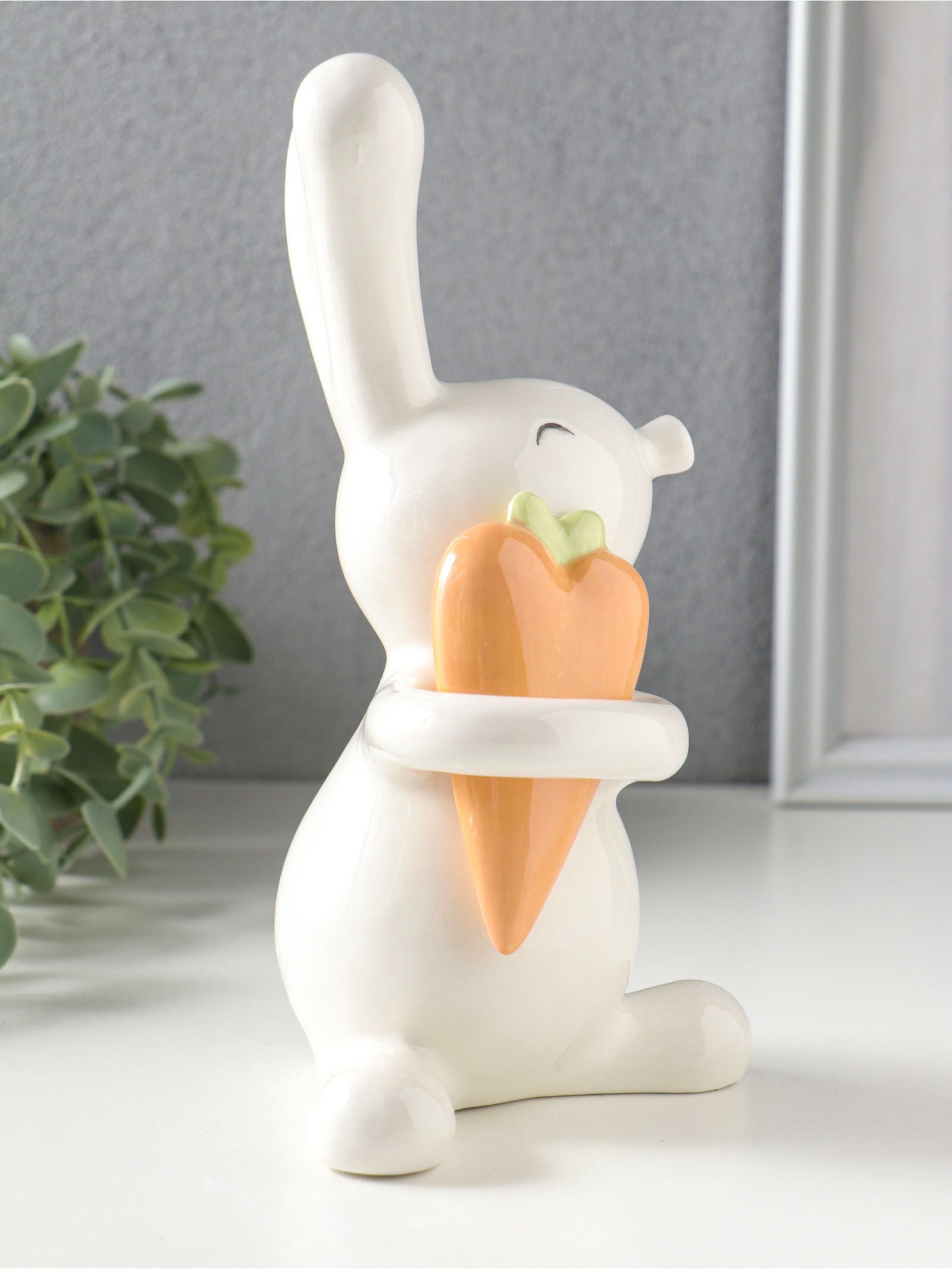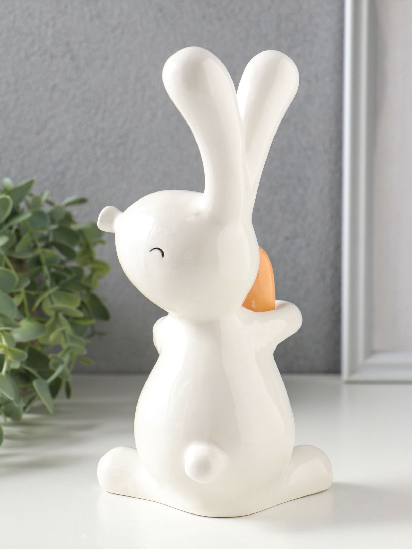Фигурка керамика "Белый зайчик с морковкой-сердцем", 10.8x9.6x19.3 см, 10.8x9.6x19.3 см., Китай