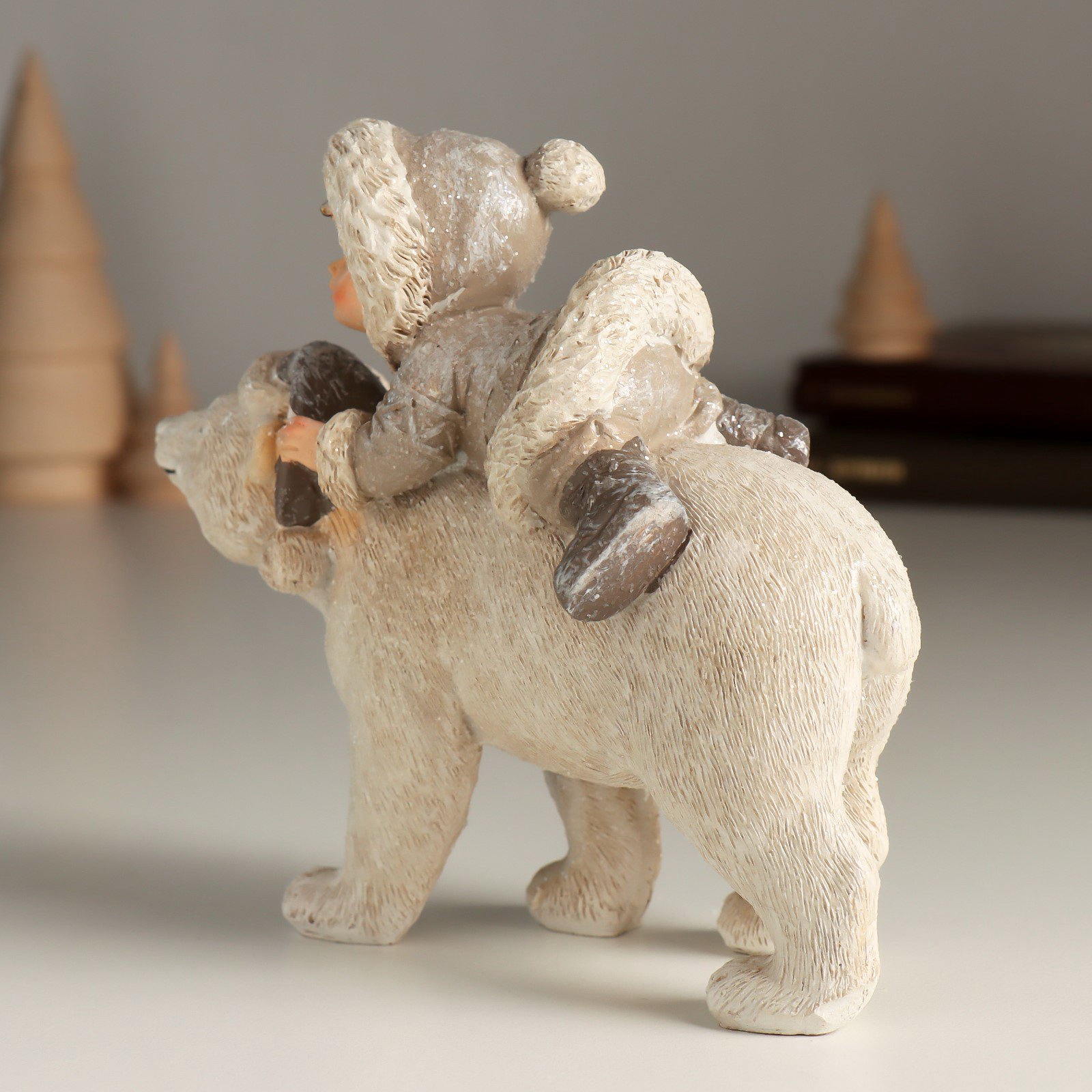 Фигурка полистоун "Ребёнок на белом мишке", 13.5x6x12.5 см, Китай
