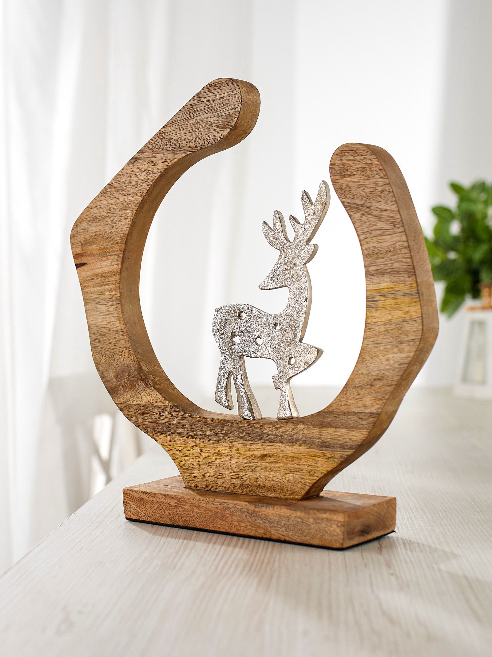 Сувенир интерьерный в деревянном кольце "Оленёнок", 33x8x34 см, 8x30x33 см., Индия