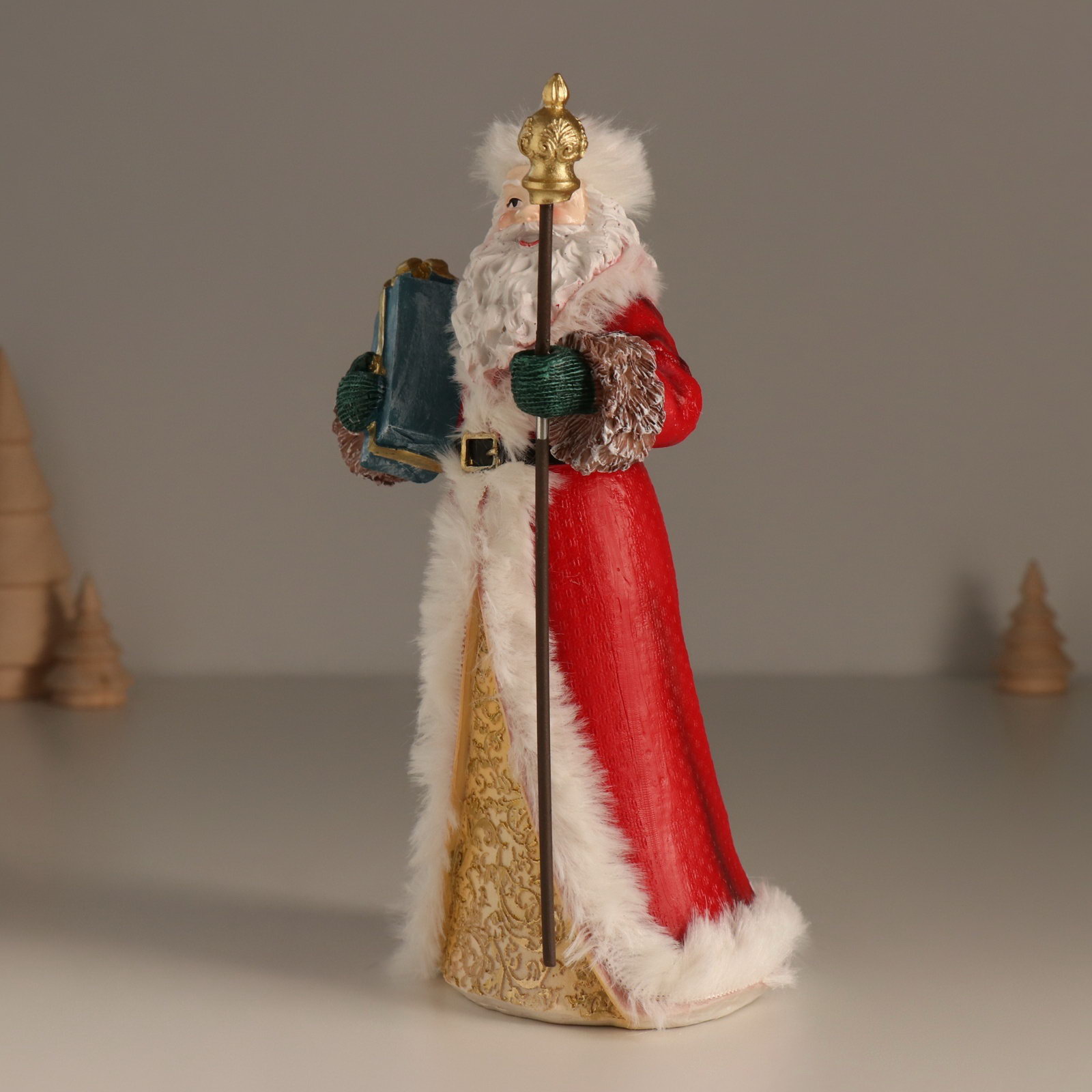 Фигурка полистоун "Дед Мороз в красной шубе, с посохом, с подарком", 11.5x8.5x20.5 см, Китай