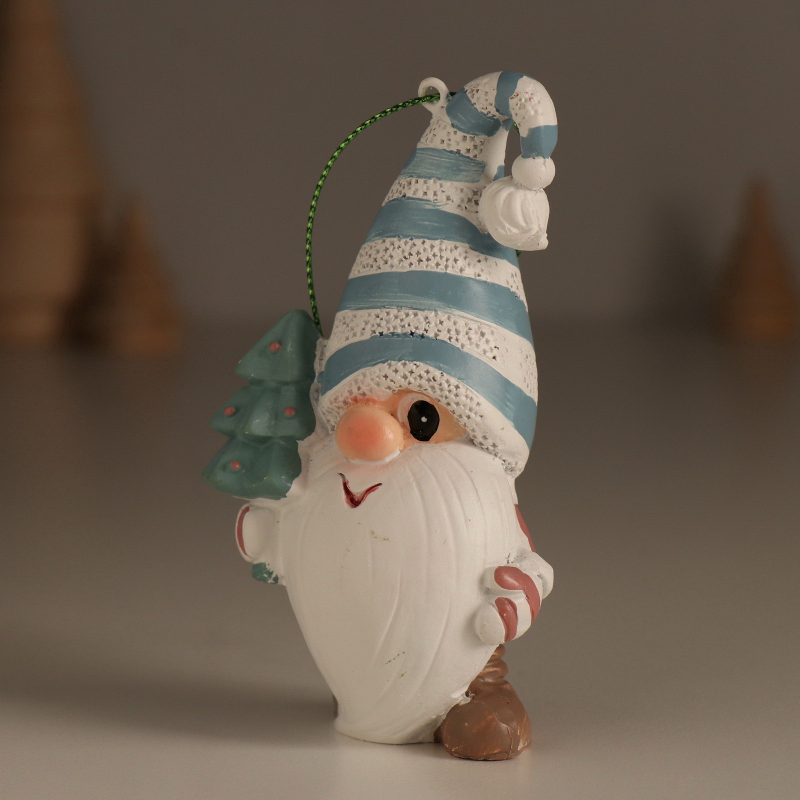 Фигурка-подвеска полистоун "Гном, в колпаке съехавшем на один глаз", ёлочная игрушка, 5.5x3.5x10.5 см, МИКС, Китай