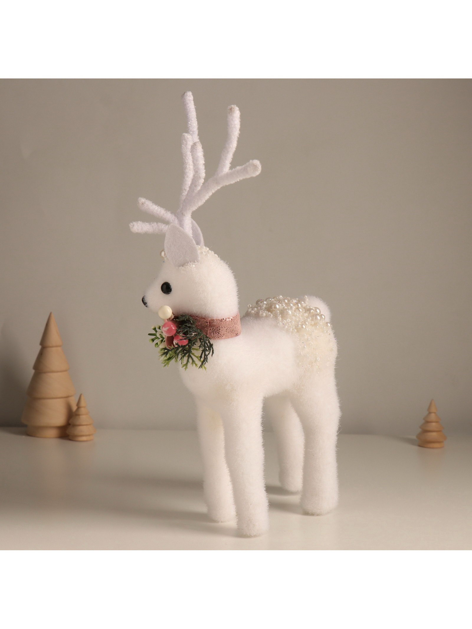 Фигурка новогодняя "Белый олень в бусинках", 29x16x8 см, 16x8x29 см., Китай