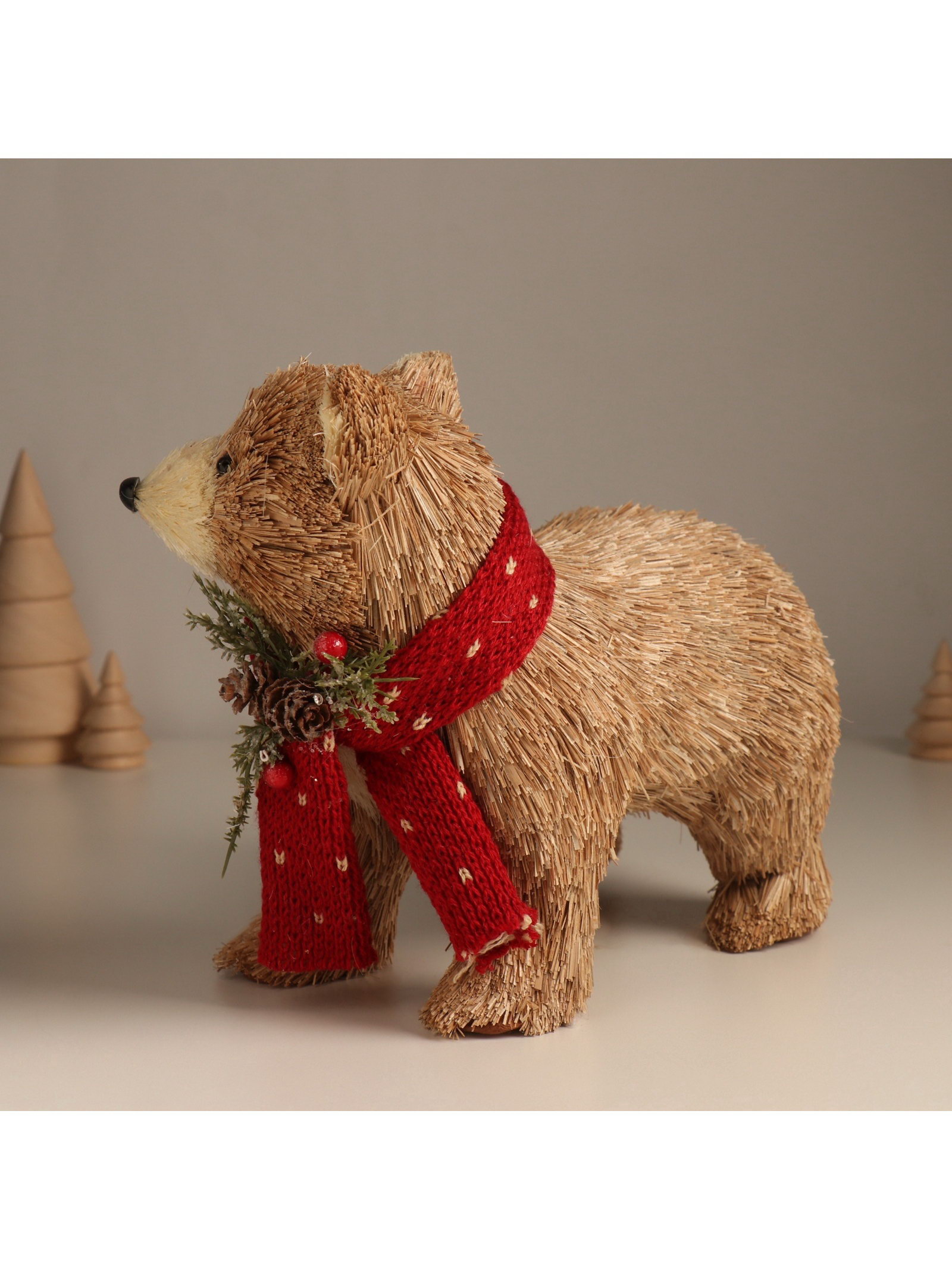 Фигурка "Медведь в вязаном шарфике с шишками и ягодками", 12x22x19 см, Китай