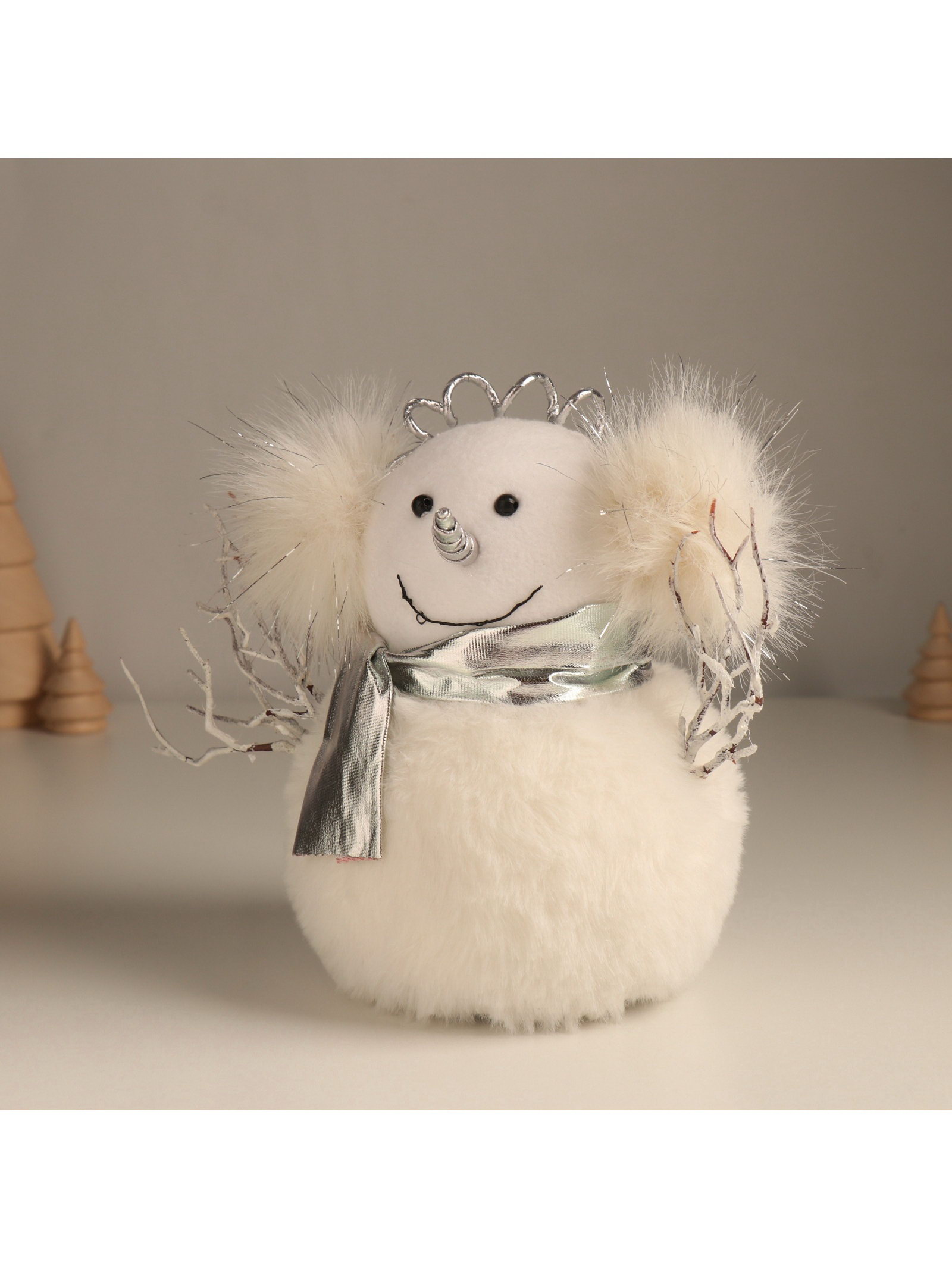 Фигурка "Снеговик в меховых наушниках", 20x12x17 см, Китай