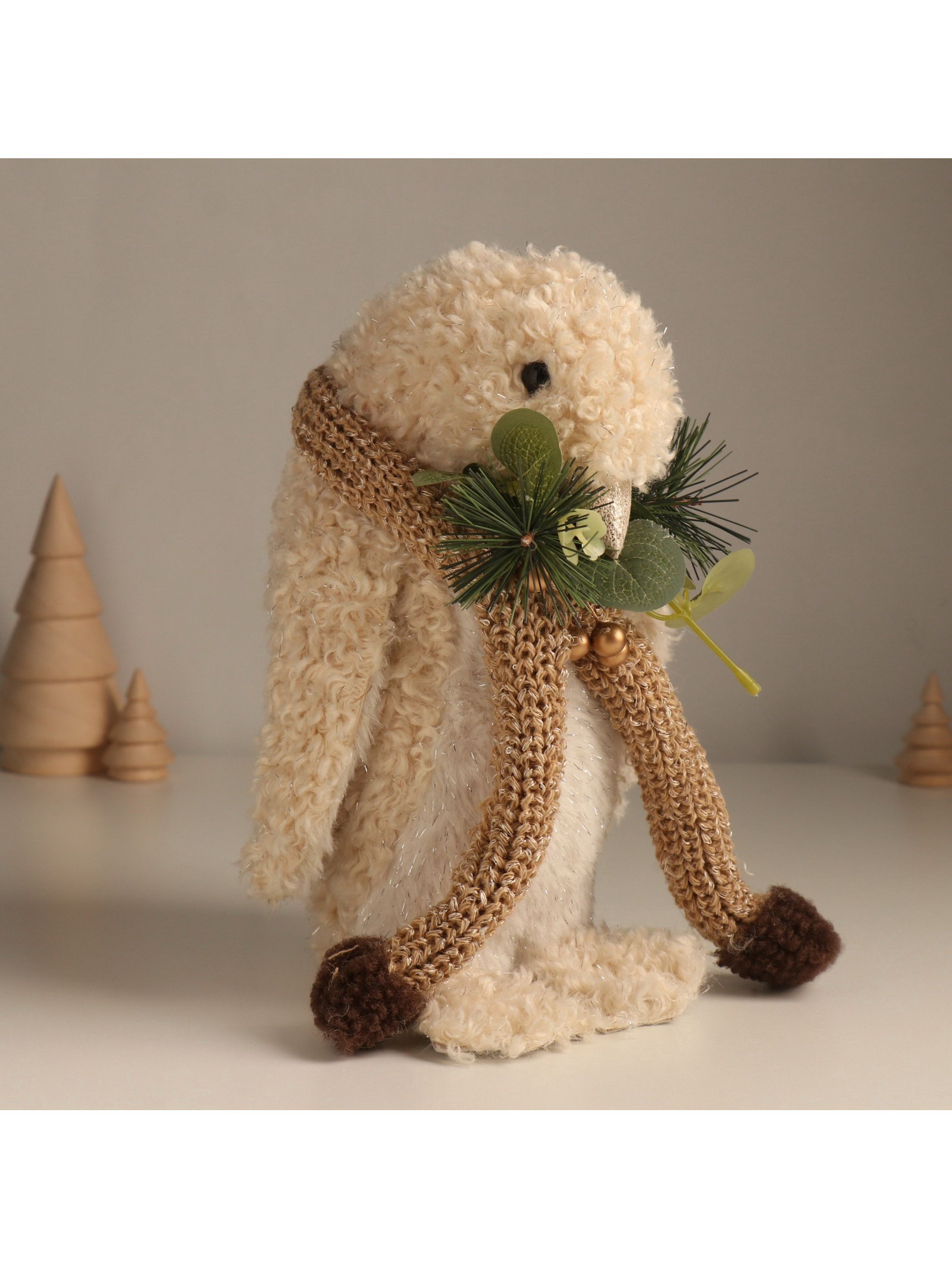 Фигурка "Кудрявый пингвин в шарфике с еловыми веточками", 13x15x23 см, Китай