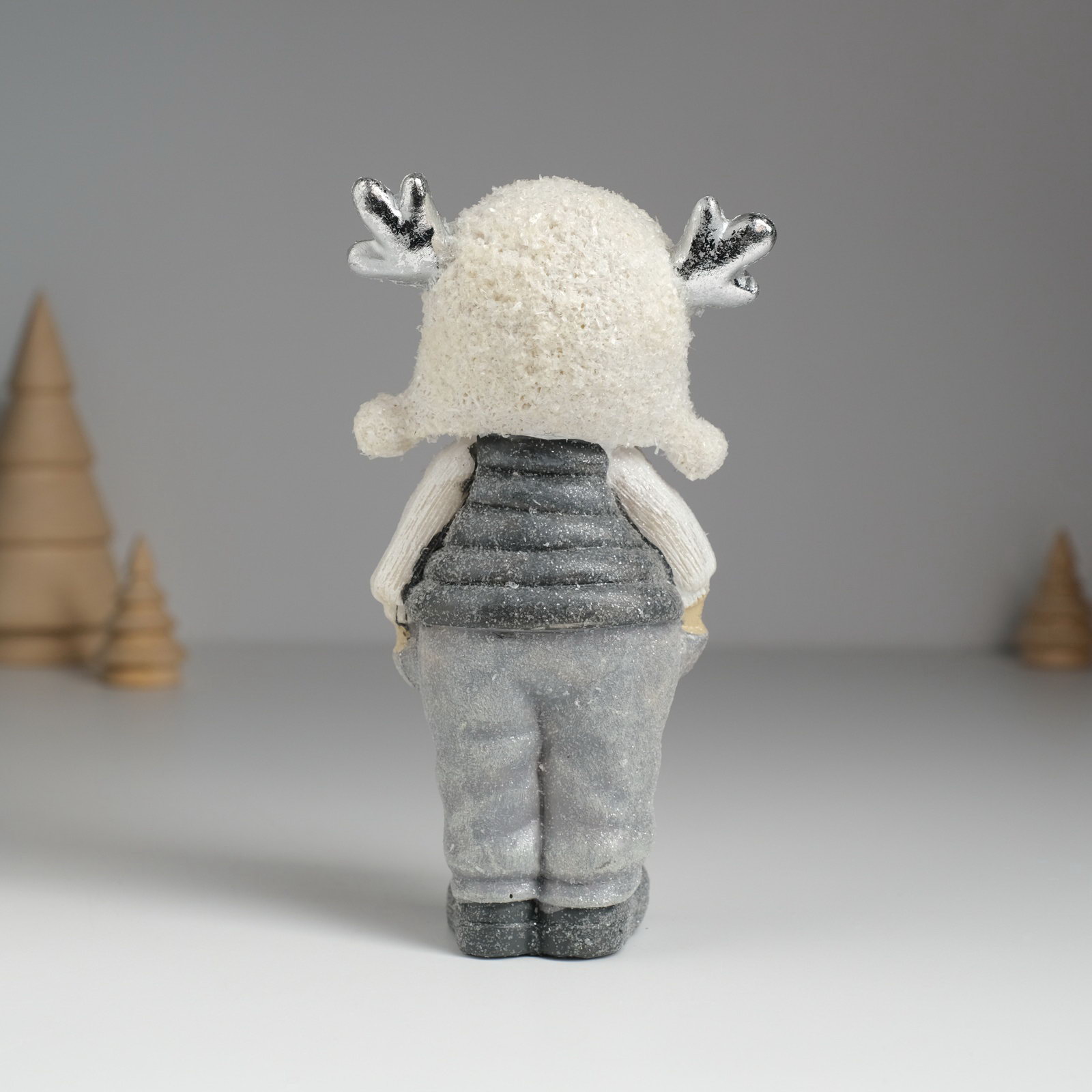 Фигурка полистоун "Малыш. Малышка в мохнатой шапке с оленьими рожками", 7x4x14 см, МИКС, Китай