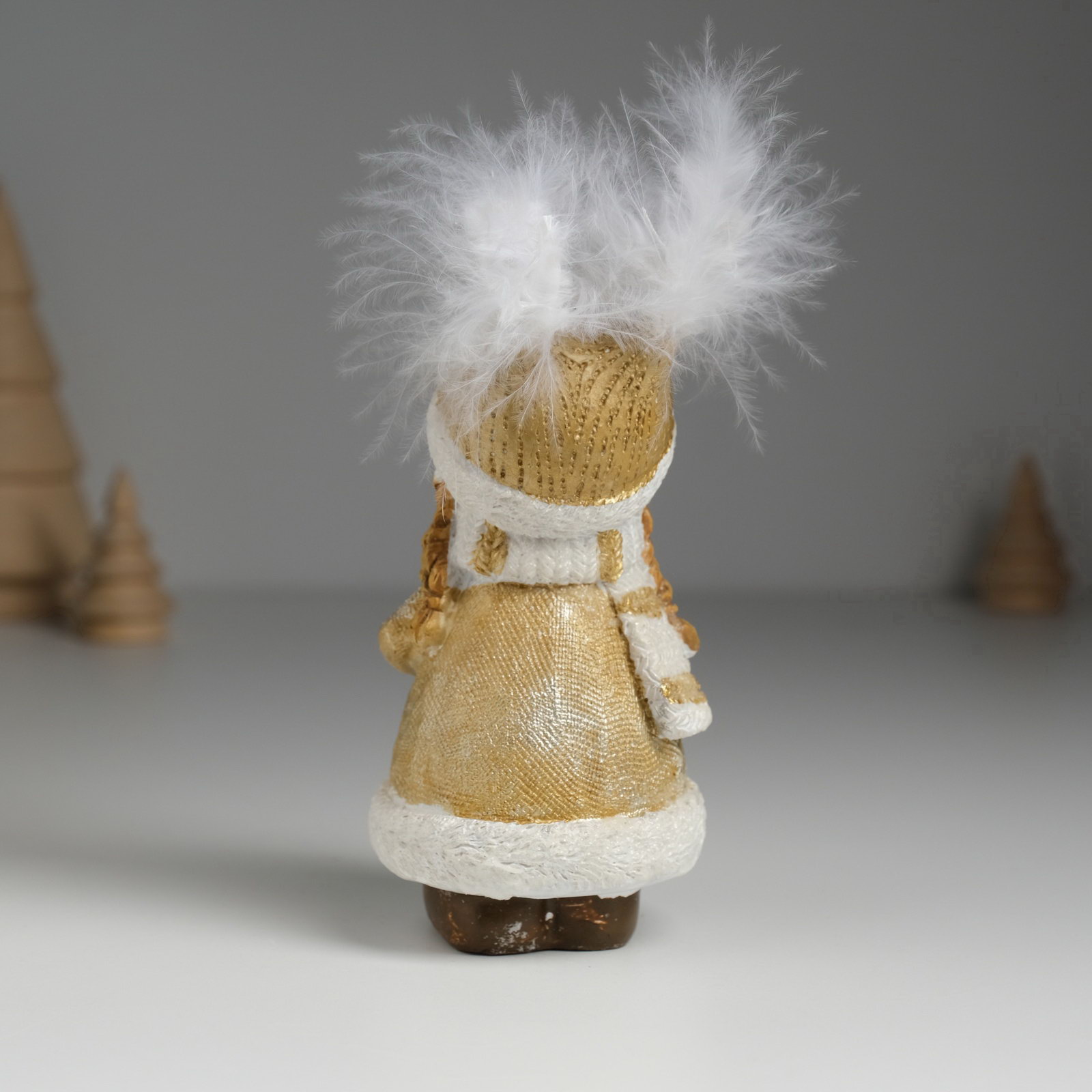 Фигурка полистоун "Девочка в шапке-сове, в золотистой шубке, с подарком", 6x5.5x11.5 см, Китай