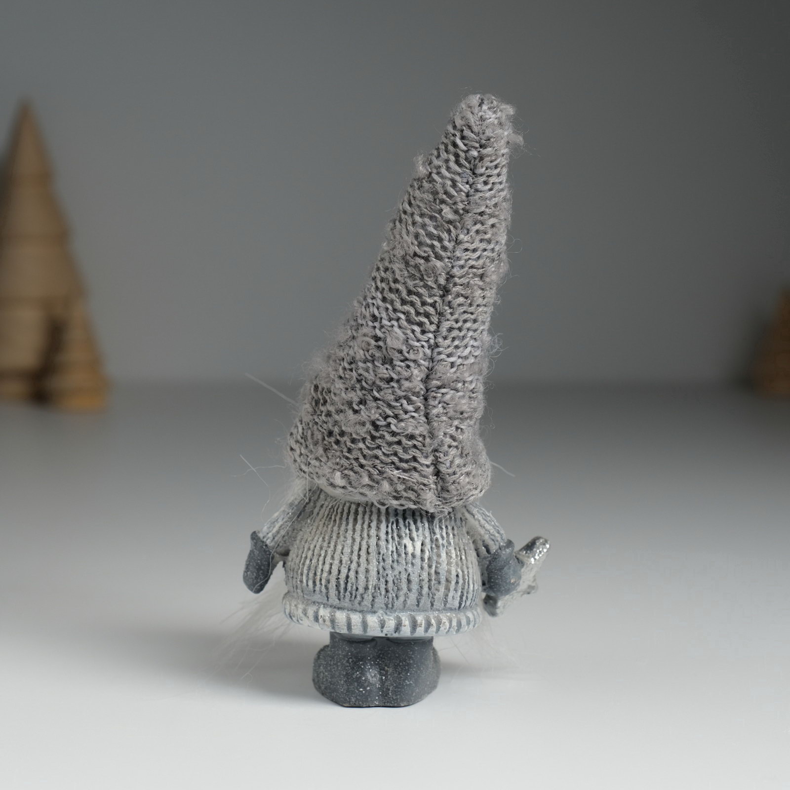 Фигурка полистоун "Дед Мороз в сером вязанном колпаке, со звездой", 5x3.5x13 см, МИКС, Китай