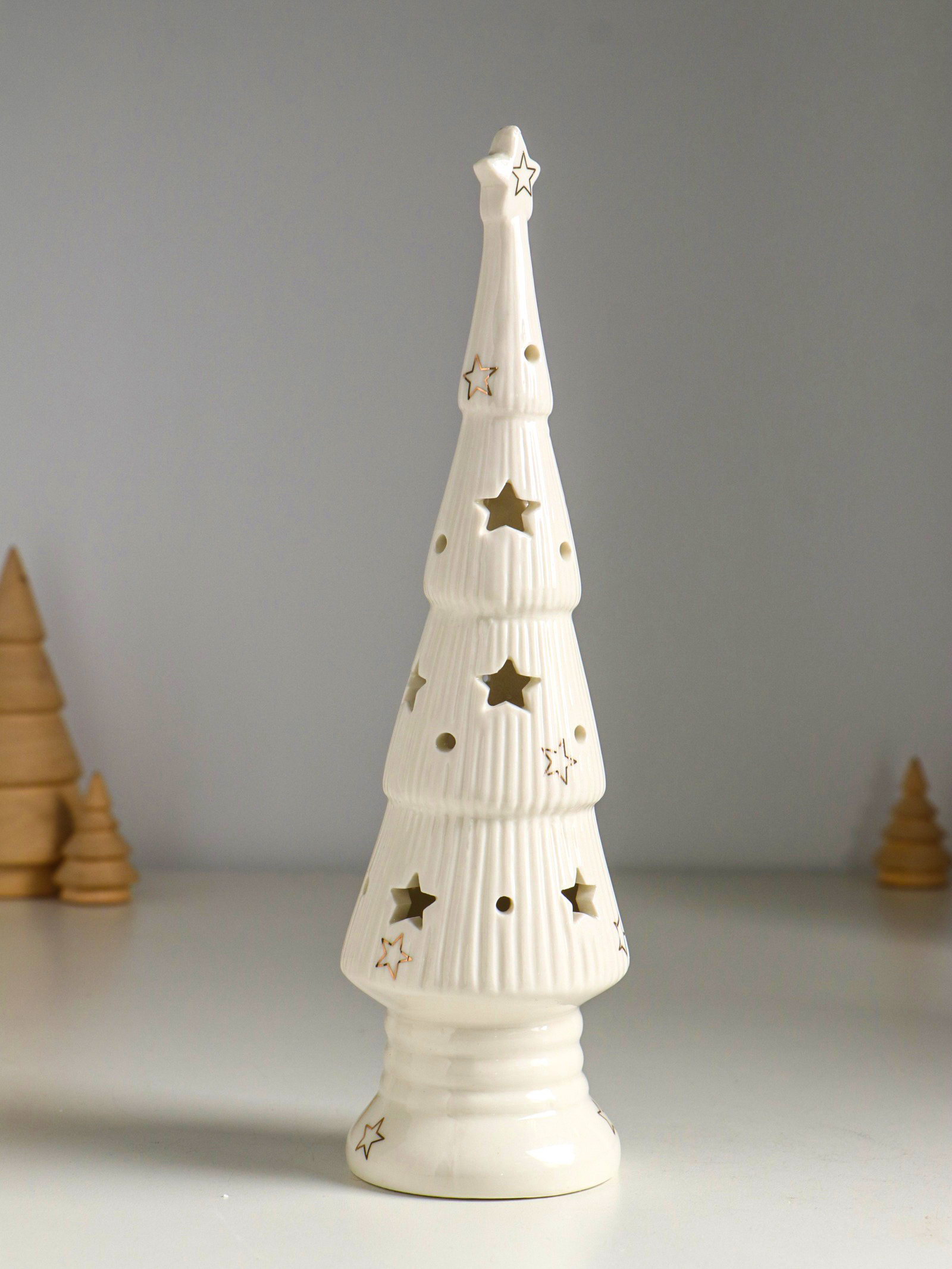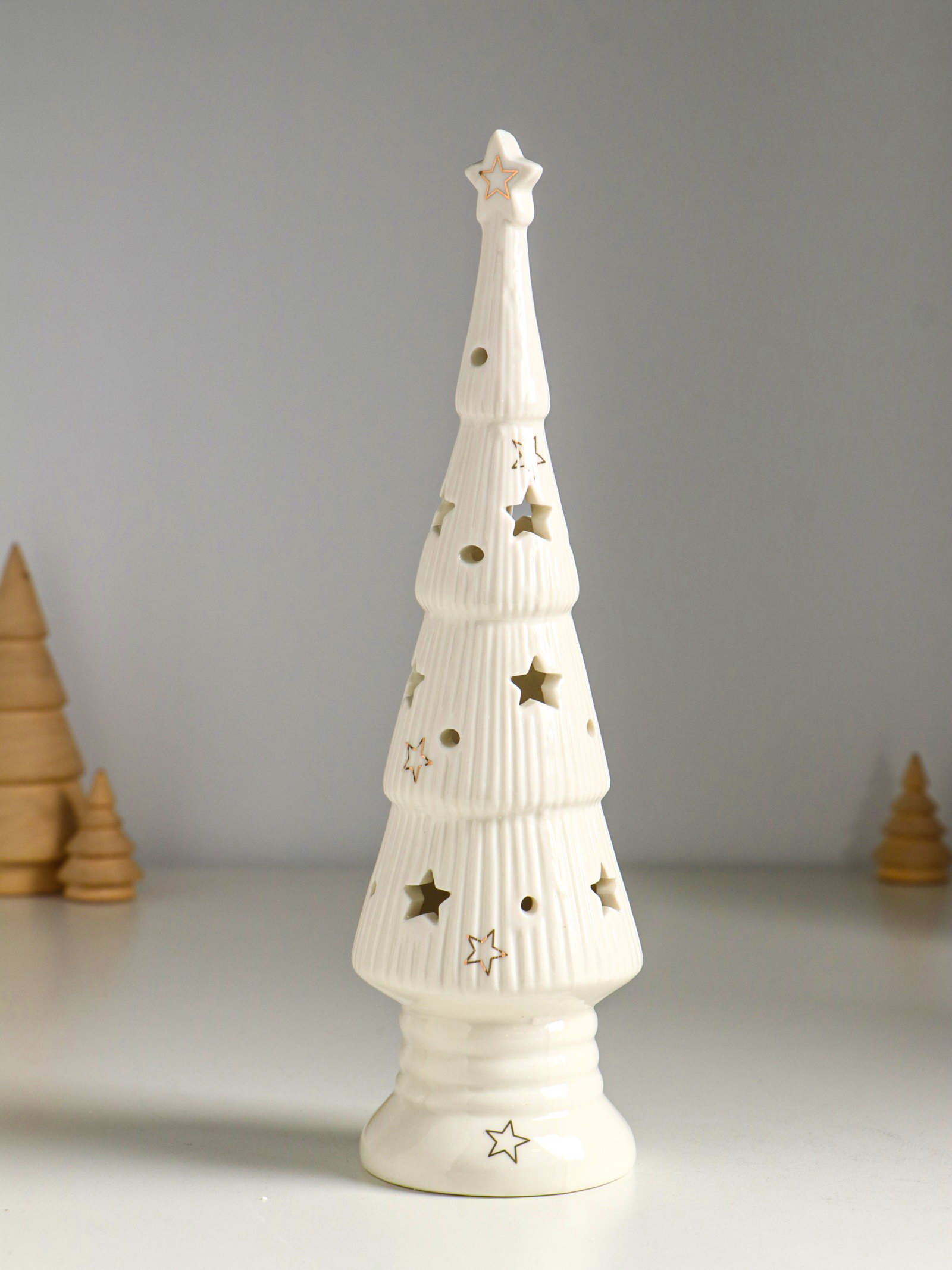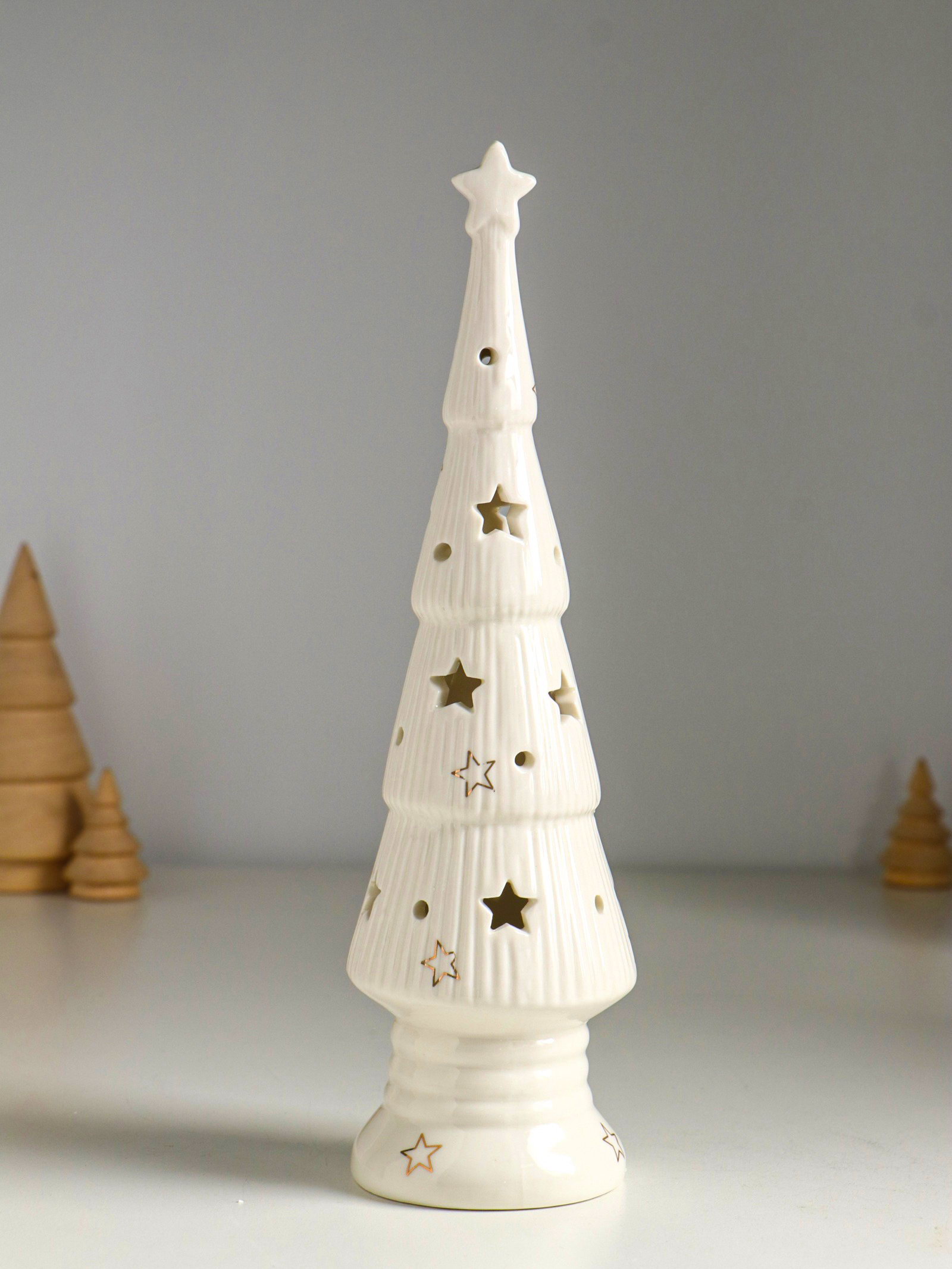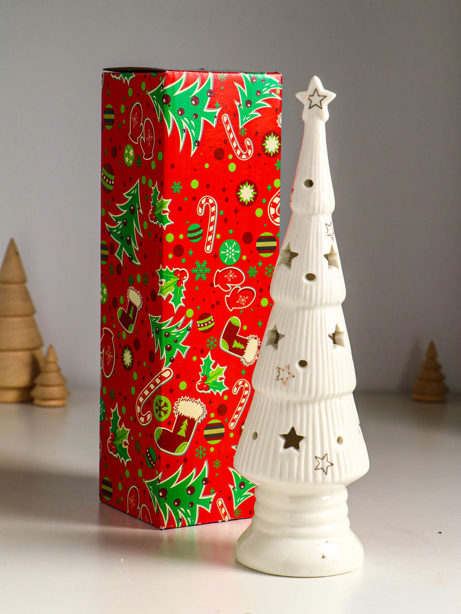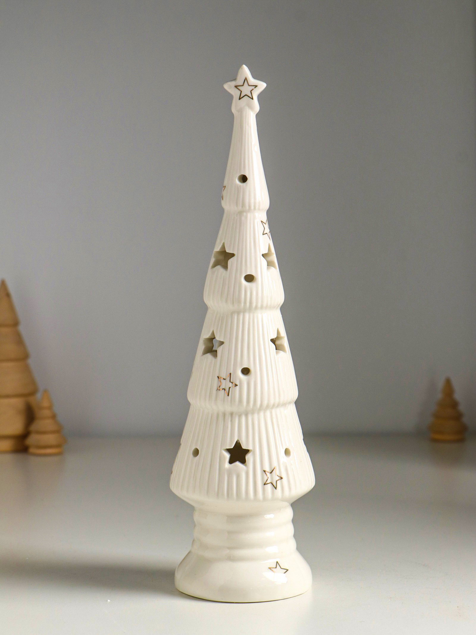 Фигурка светящаяся "Ёлочка со звёздами", керамика, белый с золотом, 7x7x24 см, 7x7x24 см., Китай