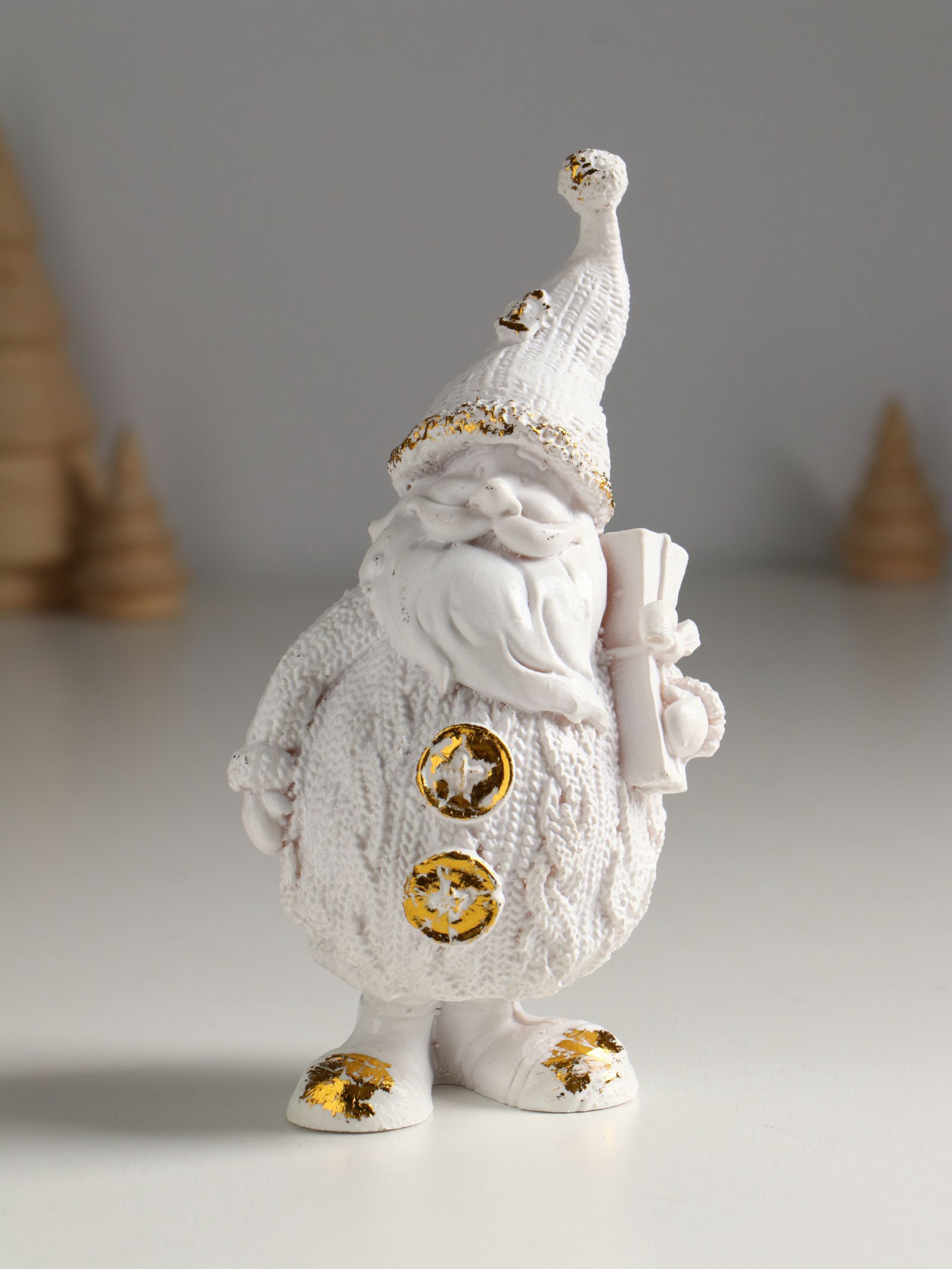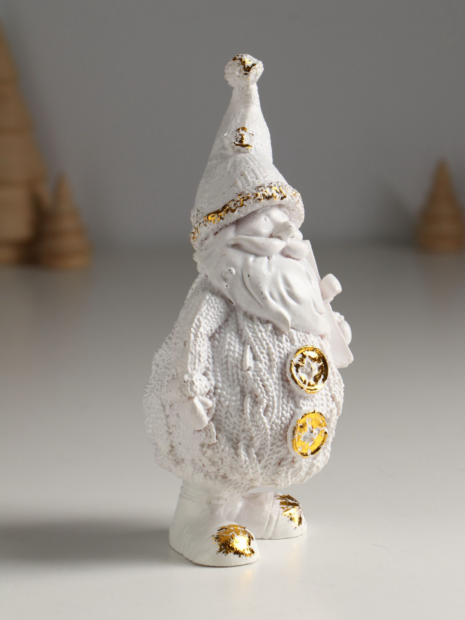 Фигурка "Дед Мороз с подарком", 16x8.5x6.5 см, белый с позолотой, Хорошие сувениры, Россия