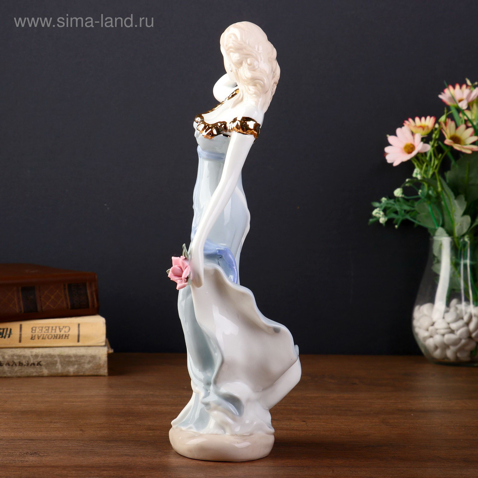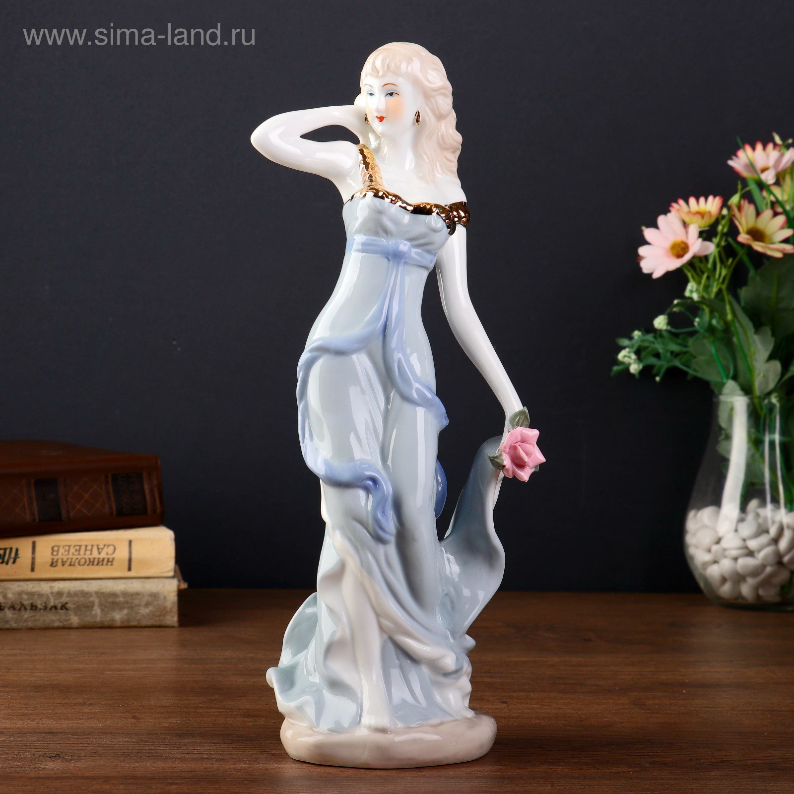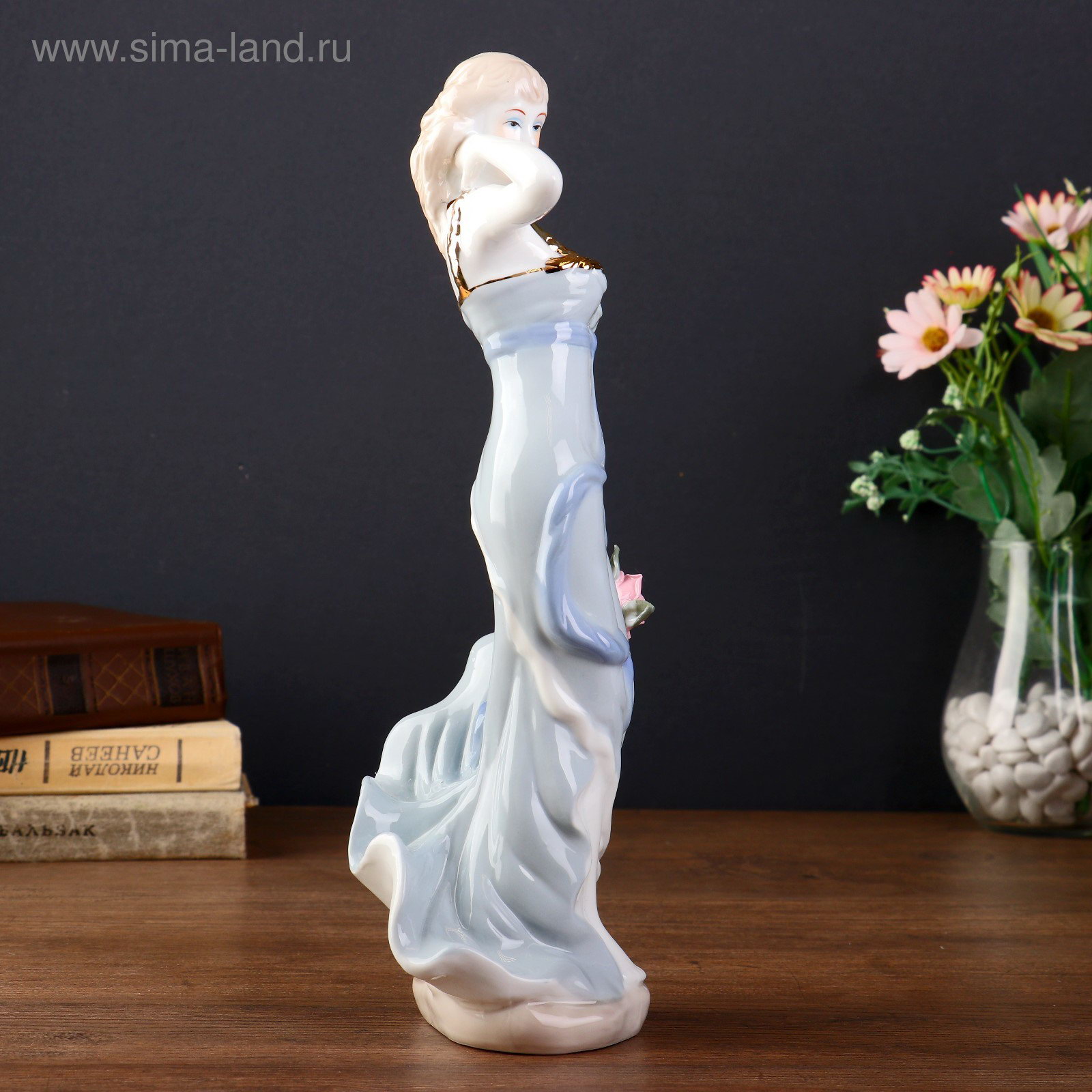 Фигурка керамика "Девушка в сером платье с розой в руке", 31x11x9.5 см, 11x31x9.5 см., Китай