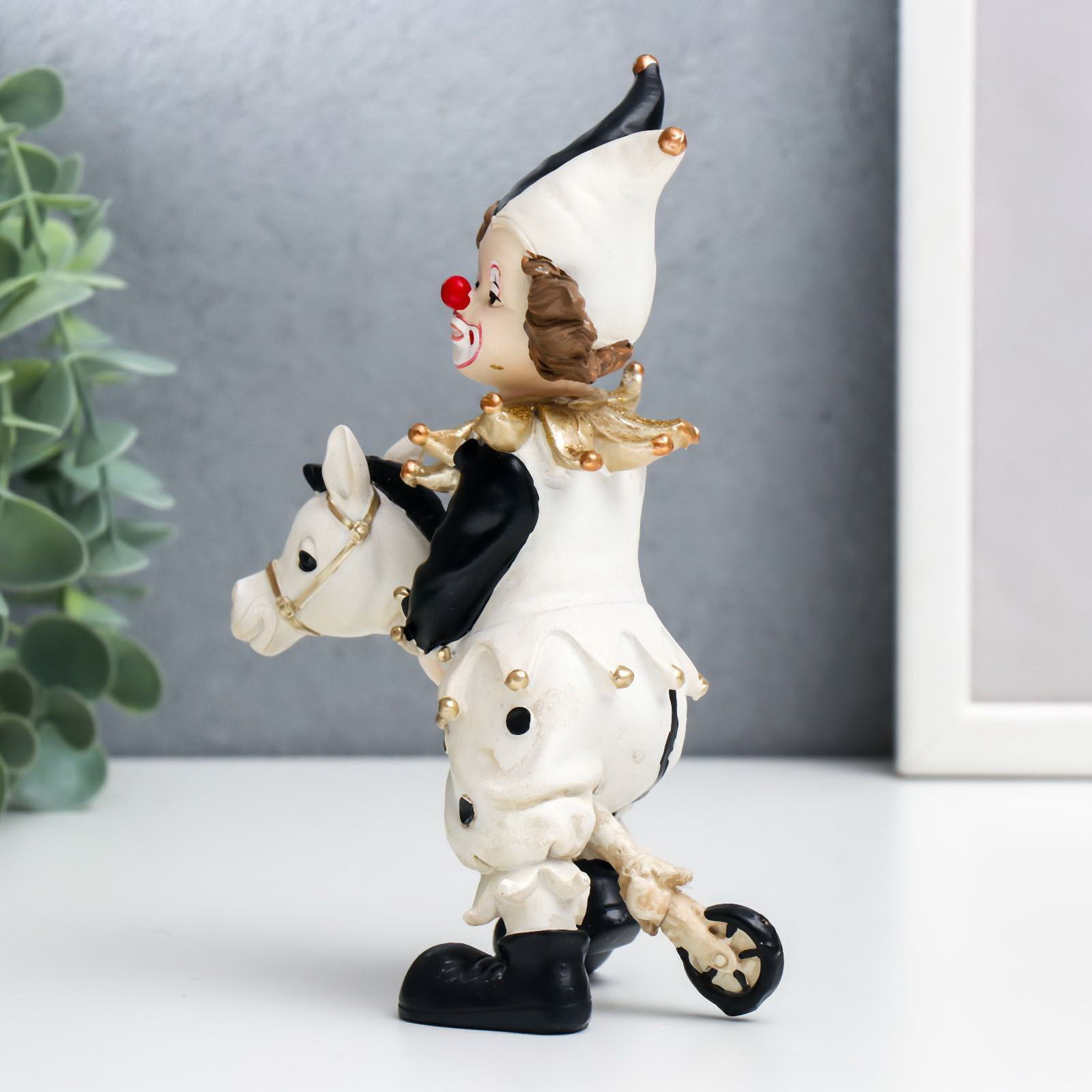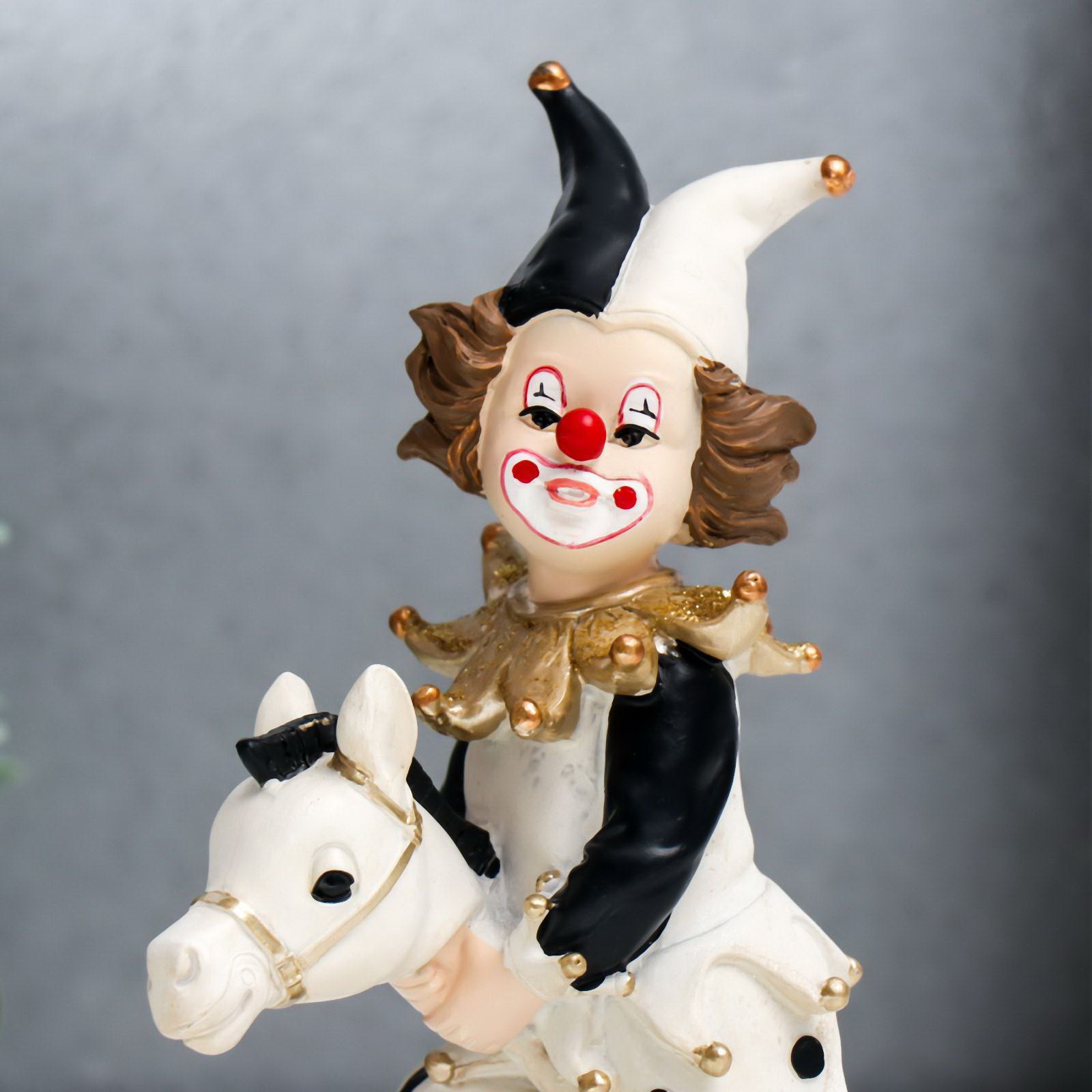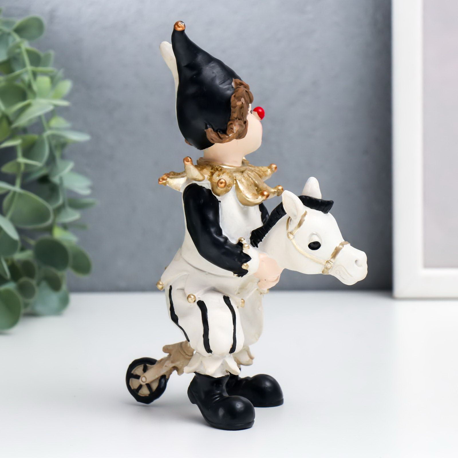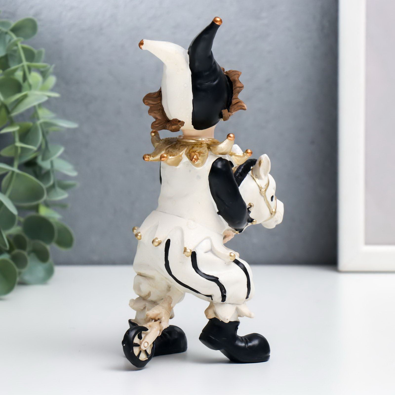 Фигурка полистоун "Скоморох с игрушкой голова лошади", чёрно-белый с золотом, 16.5x6.5x11 см, 6.5x11x16.5 см., Китай