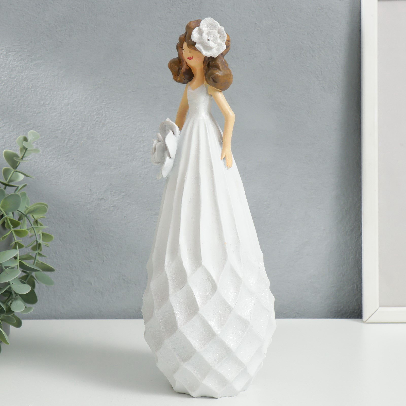 Фигурка полистоун "Малышка с цветком в волосах, в белом сарафане, с цветком", 30x11.5x11 см, 11.5x11x30 см., Китай