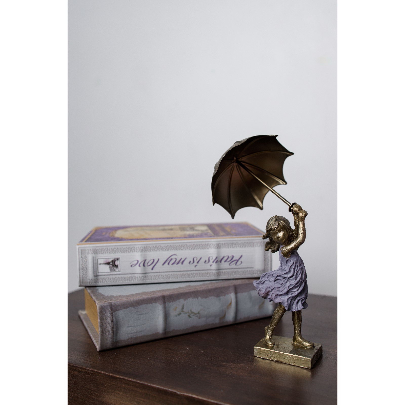 Фигурка полистоун "Девочка с зонтиком на ветру", 4.5x6.5x14 см, 4.5x6.5x14 см., Китай