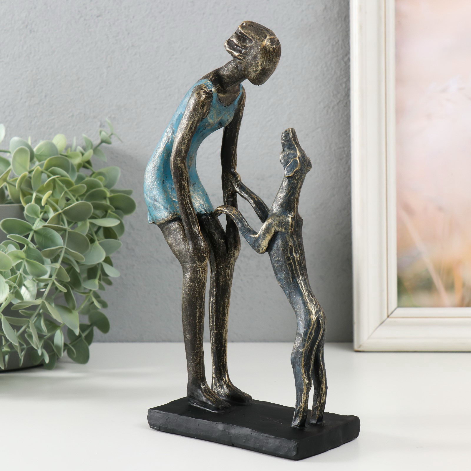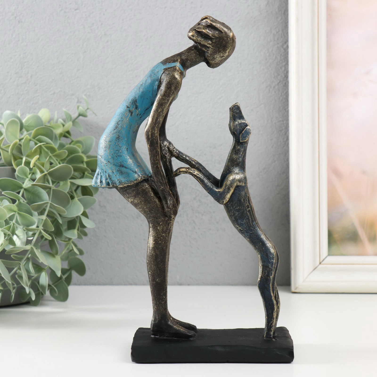Фигурка полистоун "Девушка с собакой в голубом" под металл, 13.8х5.7х23.6 см, 5.7x13.8x23.6 см., Китай