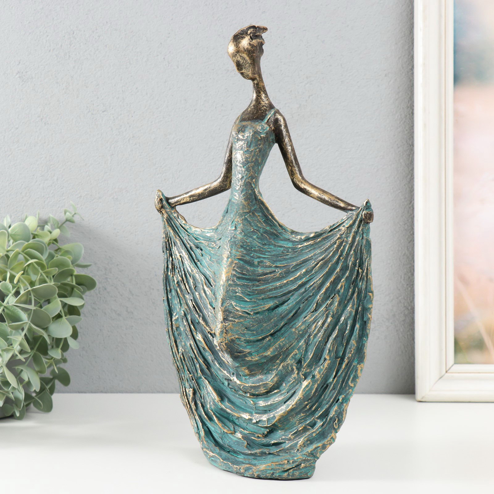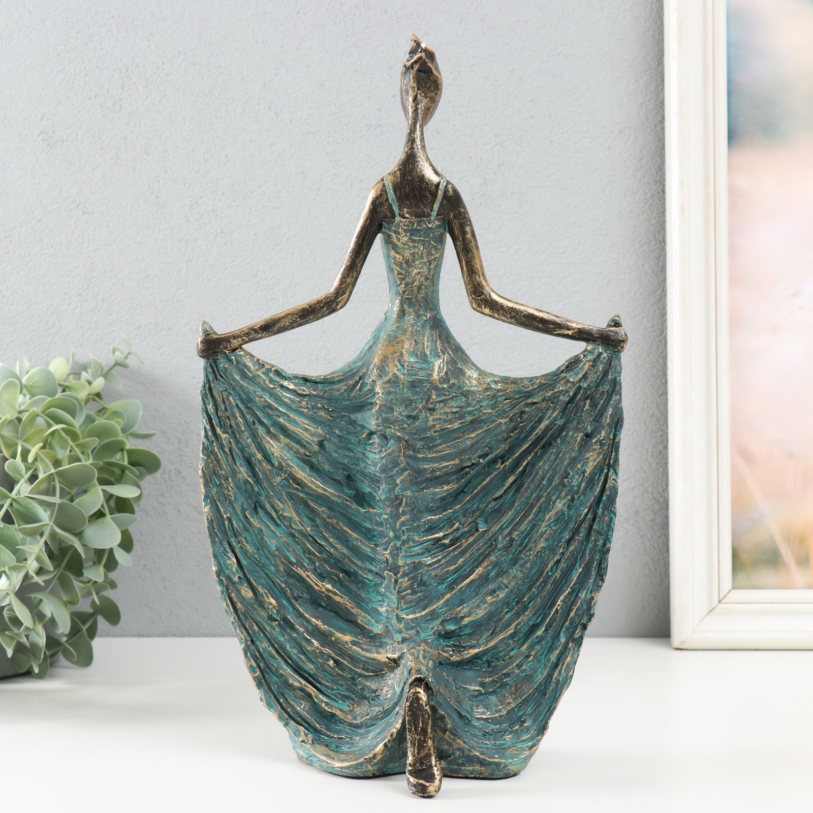 Фигурка полистоун "Танцовщица в зелёно-голубом платье. Балеро" под металл, 18.6х9.6х31.6 см, 9.6x18.6x31.6 см., Китай