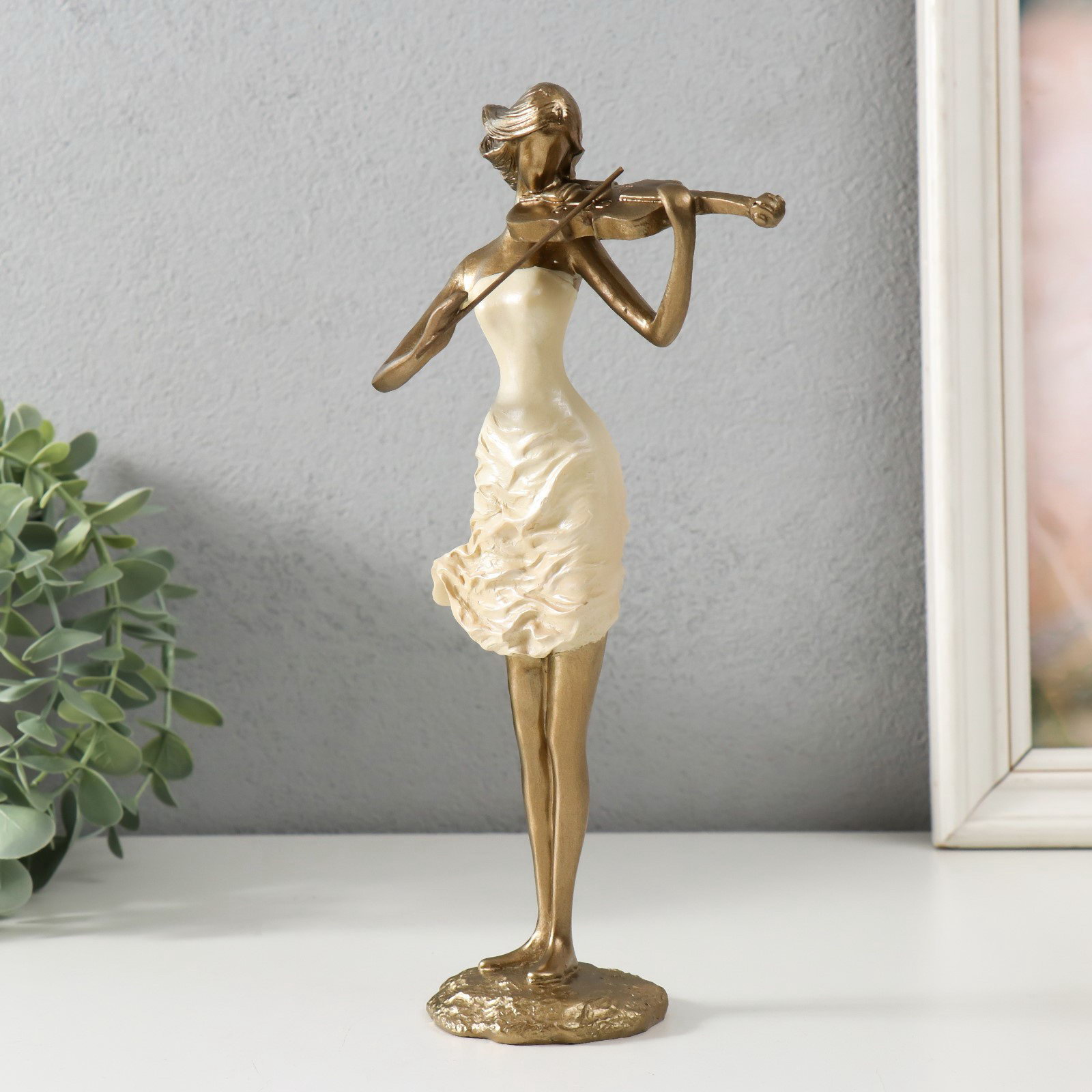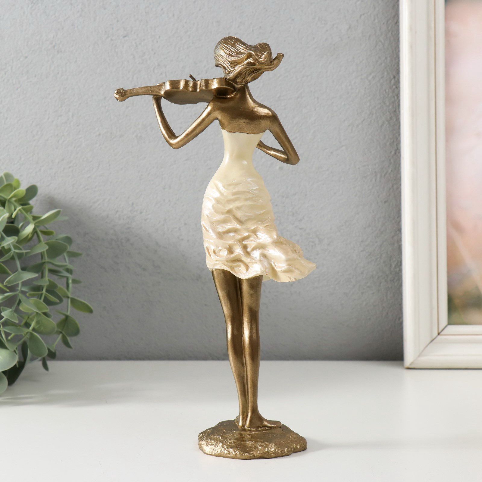 Фигурка полистоун "Скрипачка", песочная с бронзой, 13x9.5x25 см, 9.5x13x25 см., Китай